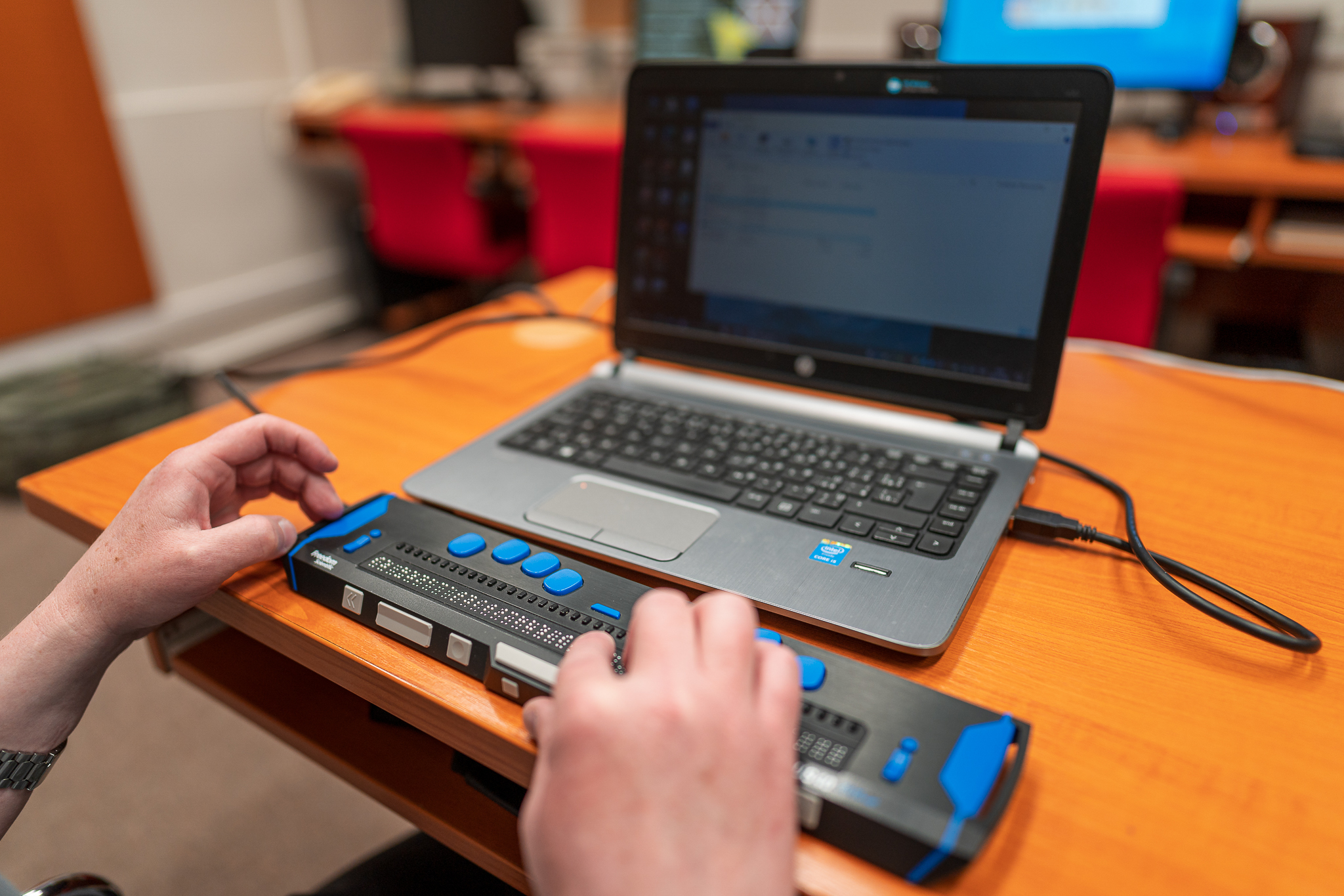 V případě potřeby budeme soutěžícím schopni nabídnout zapůjčení 40znakového braillského displeje připojeného k počítači s Windows a odečítačem JAWS nebo NVDA.