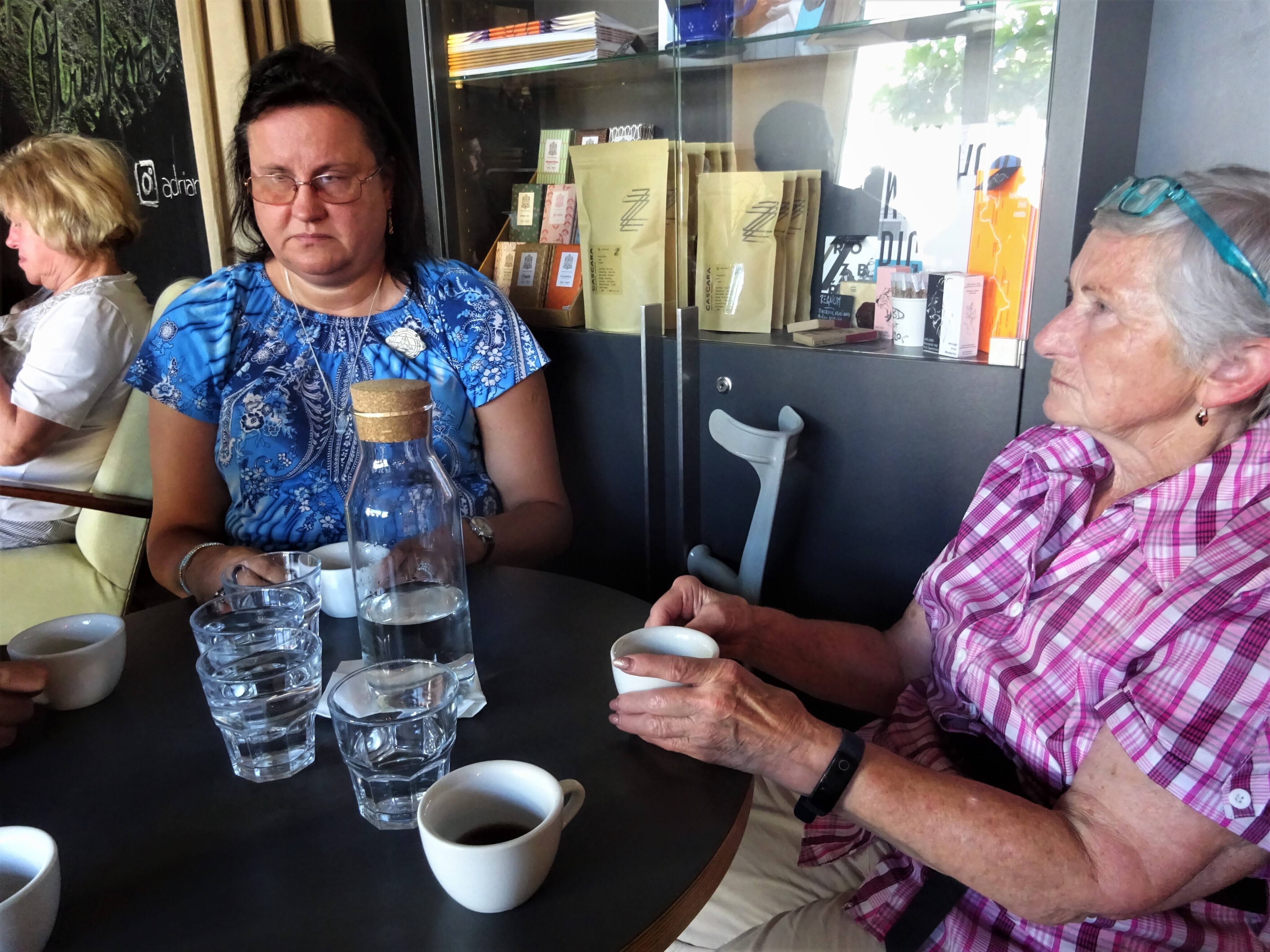 Už víme, že pokud z této pražírny chceme připravit espresso. Je třeba kávu nechat uležet alespoň 14 dní od data pražení. Ovšem pokud si chceme připravit kávu filtrovanou, ideální je spotřebovat ji co nejdříve, aby se nevytrácelo její aroma a jemnější chuť. Bylo to příjemné dopoledne, plné nového poznání, a hlavně byla beseda připravena tak, že si z ní mnoho odnášeli i nevidomí.