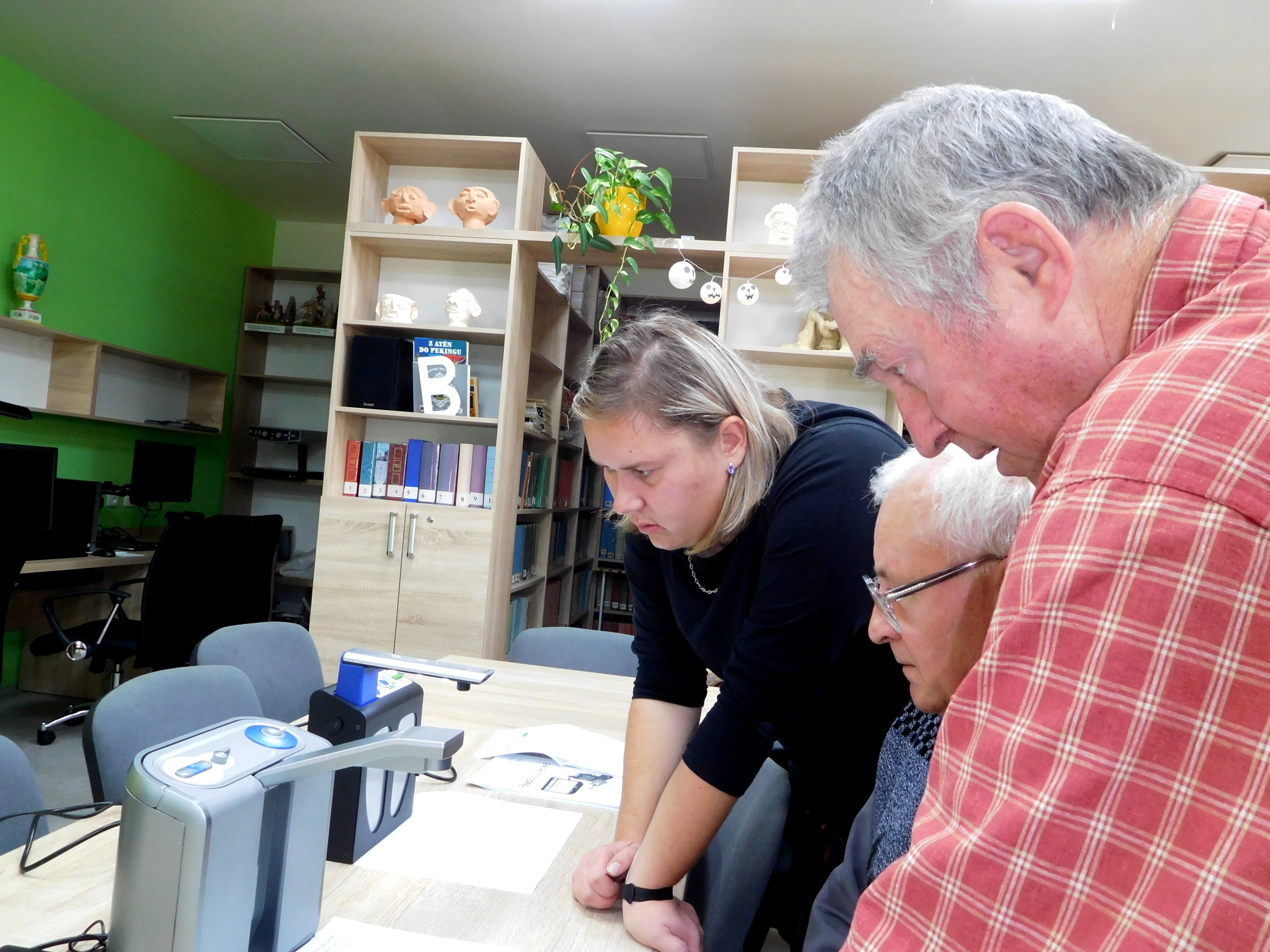 Někteří z našich členů se s těmito čtečkami už měli možnost seznámit, nekteří je už i doma používají, ale pro jiné to byla novinka, se kterou se nejenom seznámili, ale si ji i vyzkoušeli. Má mnoho využití, je to velký pomocník. A proč by ne, když jenom stačí pod kameru čtečky vložit tištěnou předlohu, stisknout tlačítko a za pár okamžiků Vám hlas předčítá text z předloženého textu. A že to není vše, že jsou i jiné funkce jsme si ověřili všichni přítomní. Hlavní je, že víme kam se v případě potřebnosti obrátit.