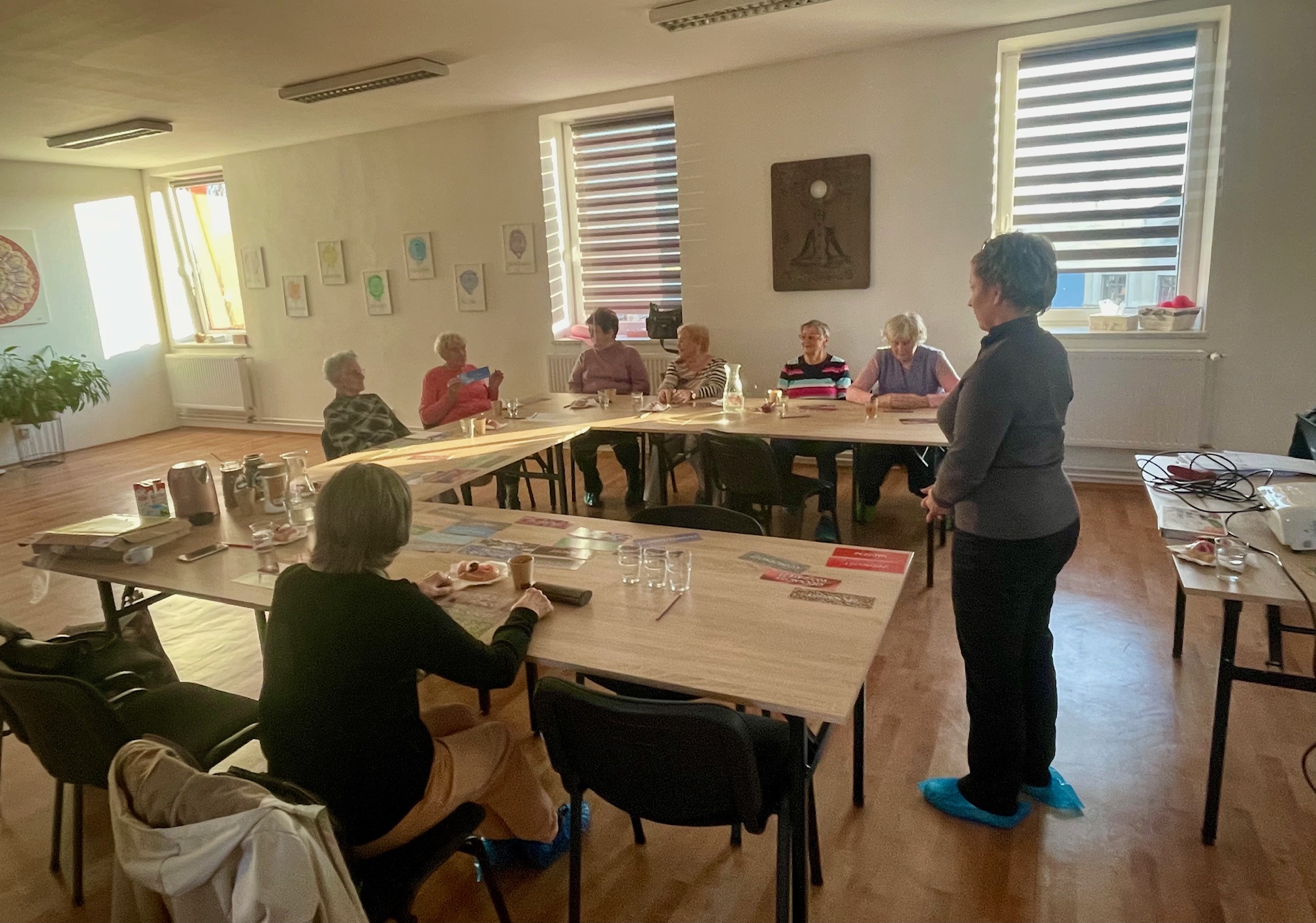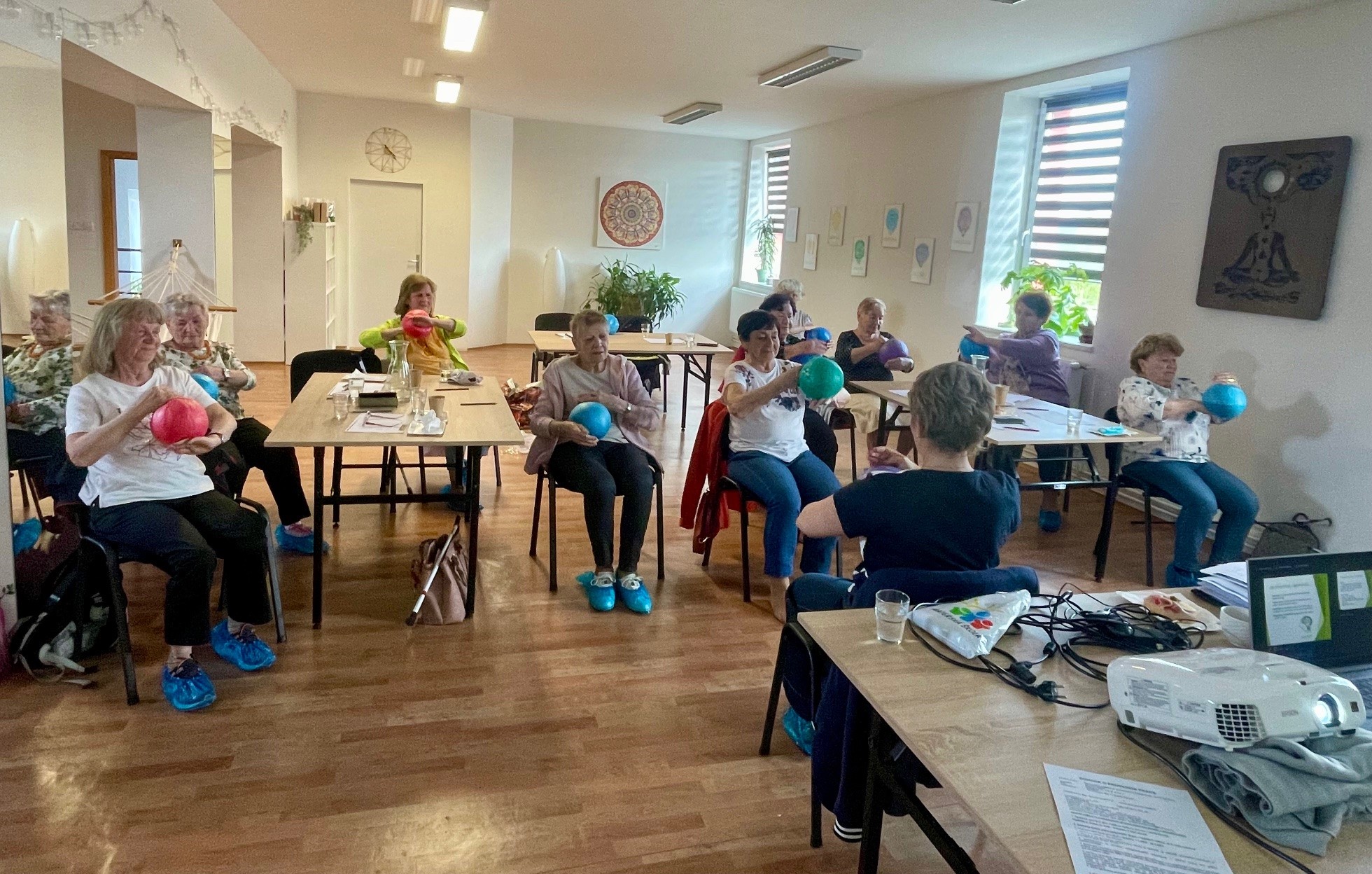 Dne 6.11.2025 se konala poslední zdravotní přednáška ve Studiu jógy a relaxace Bruntál na téma „Pohybem proti demenci“ pod vedením Renaty Rychlíkové. Přednáška byla velmi zajímavá byla proložena praktickými úkoly na rychlost, dlouhodobou pamět a také na doplnění českých přísloví. Představila přítomným nové hmatový hry, u kterých se všichni pobavili a zárověń procvičili jemnou motoriku a pamět. Všechny připravené pracovní listy byli pečlivě vyplněné, ten kdo nestihl úkol vypracovat si je odnesl domů. Po praktické části přišel čas na cvičení. Jednoduché cvičení na židlích s overbolem všichni zvládli a byli nadšené jak sami říkají "bylo to příjemné odpoledne proložené cvičením a hraním , které se nám všem moc líbilo už se těšíme na další ".