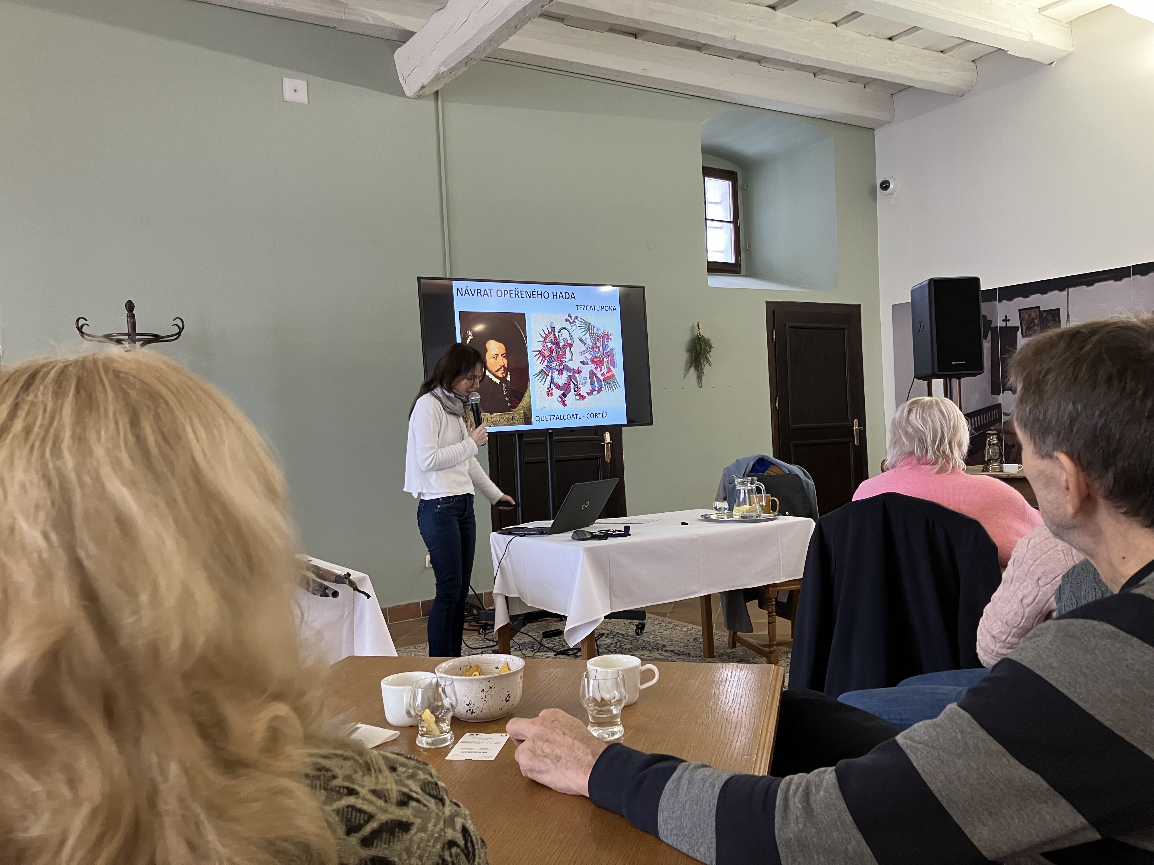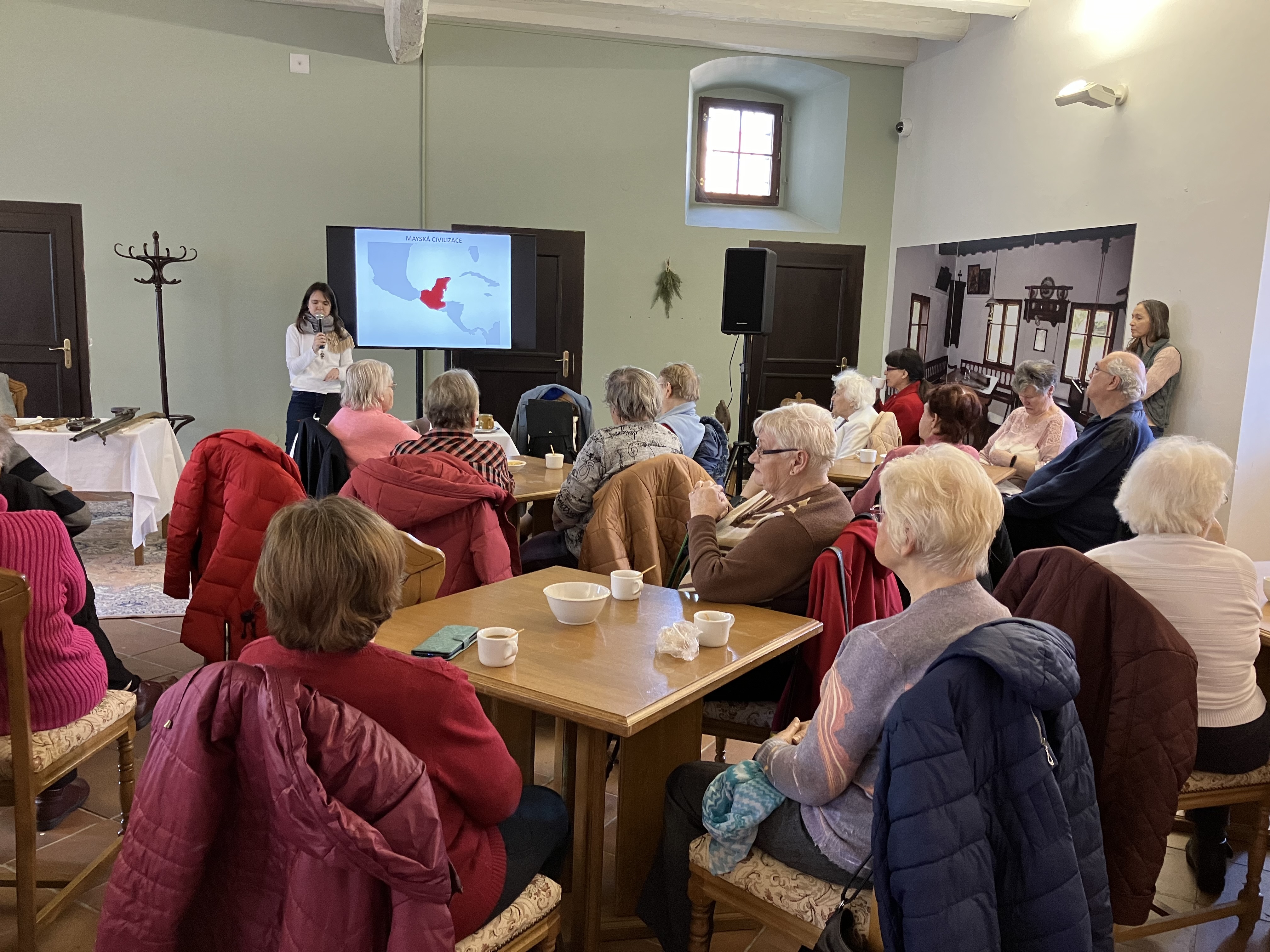 Dne 15. 2. jsme s uživateli zajeli do Muzea na zámek Žerotínů do Nového Jičína, kde jsme se připojili k odbočce z NJ - domluvena přednáška "Mayský kalendář" s haptickými ukázkami mayskáých předmětů z archeologických vykopávek a zbraní španělských dobyvatelů.