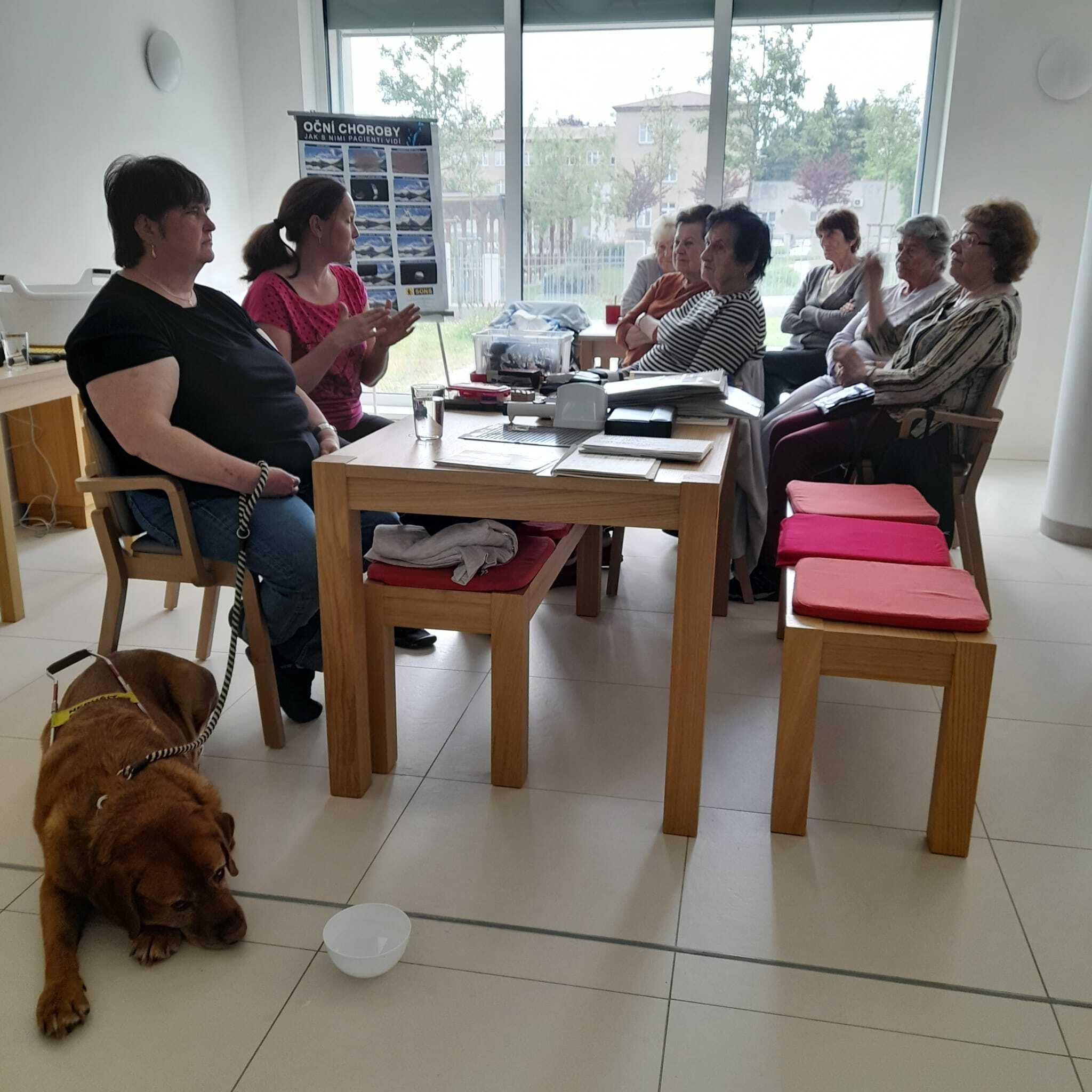 První část přednášky přiblížila široké spektrum podpory, kterou táborská pobočka poskytuje – od pomoci s orientací, přes kulturní a společenské aktivity, až po poradenství. Cílem bylo ukázat, jak může být organizace oporou a průvodcem v různých životních situacích. Druhá část byla věnována životu s vodícím psem. Naše hostka Petra Šulcová z Českých Budějovic nás poutavě seznámila s tím, jak vodící pes pomáhá svému nevidomému majiteli, jak probíhá výcvik a jaká je jejich vzájemná spolupráce. Tento osobní pohled přinesl mnoho zajímavých informací a otvíral diskusi o důležitosti těchto služeb. Akce byla přínosná nejen pro účastníky, kteří získali nové poznatky, ale i pro nás, protože jsme mohli představit naši organizaci širší veřejnosti a navázat nové kontakty.