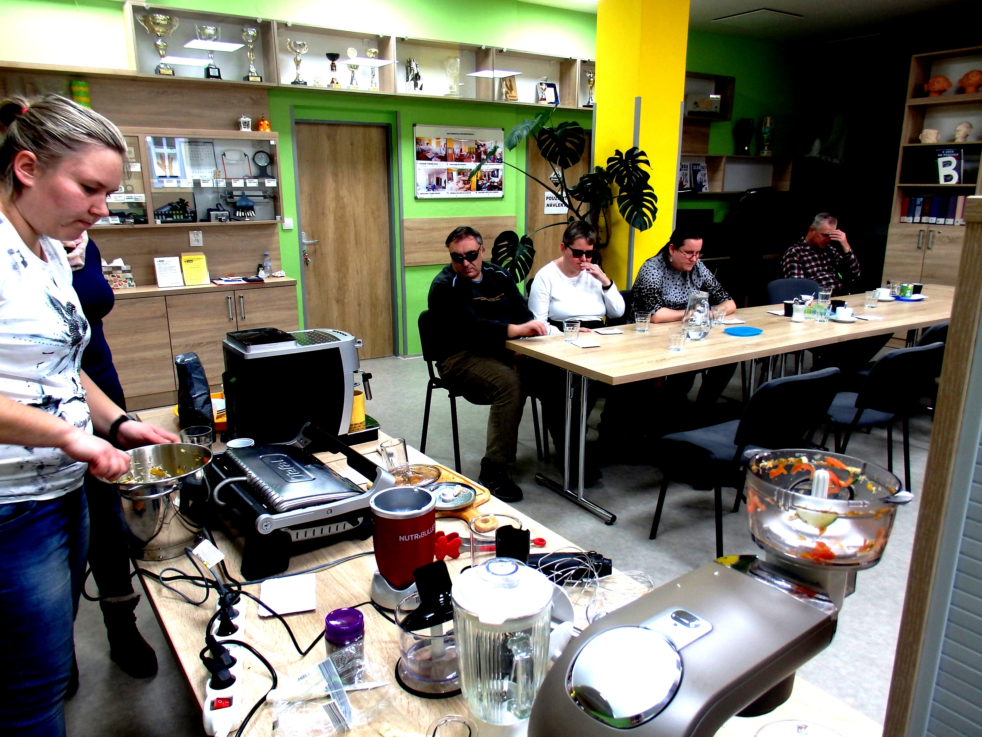 Ještě nám chybí spousta drobných udělátek, ale to nebrání, abychom ve spolupráci s instruktory Tyfloservisu začali rozbíhat kurzy sebeobsluhy přípravy stravováním na kterých naši členové získají jenem nové dovednosti, ale i nové zkušenosti s obsluhou těchto nových pomocníků a kdoví, třeba některých z nich najde své místo i u nich v domácnosti.