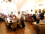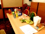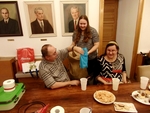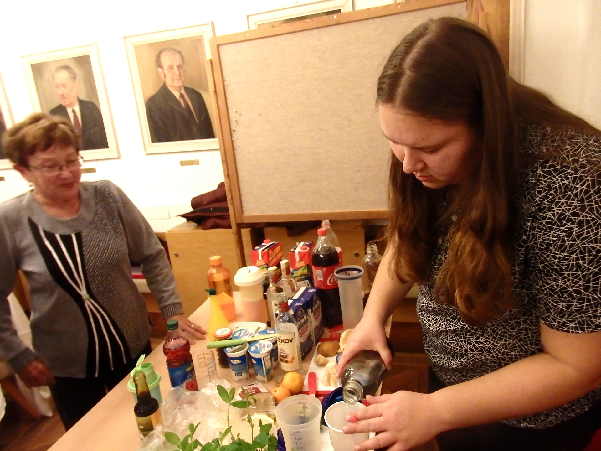 Druhou novinkou byl připravený samoobslužný bar na přípravu míchaných nápojů, kdy jsme museli trochu zainprovizovat a nedostatek nádobí nahradit zakoupením plastových produktů. Jenže ... místo připravené sebeoslužné výuky skoro každý využil služby přítomné barmanky-Anetky. Ale což, jsou svátky, takže vše odpuštěno a trochu lenosti dovoleno :-). A o který nápoj byl největší zájem? Kupodivu ty nealkoholické ležely ladem a z alkoholických vyhrálo mojito. Po společném přípitku následovalo to tajemné překvapení. Každý si z jutového pytle vylovil zabalený dárek, který mu osudem náležel a pak záleželo na každém, zda si uchová překvapení pod svůj stromeček, anebo zvědavosti podlehne a hned rozbalí.