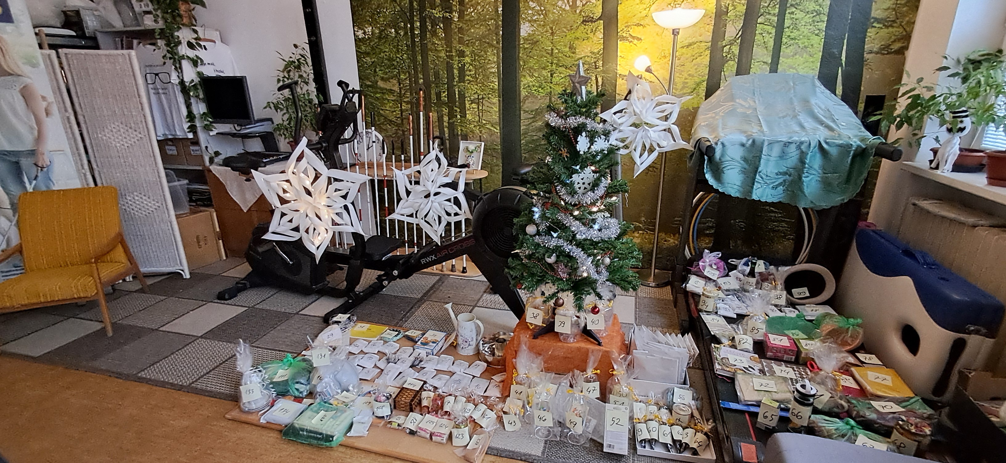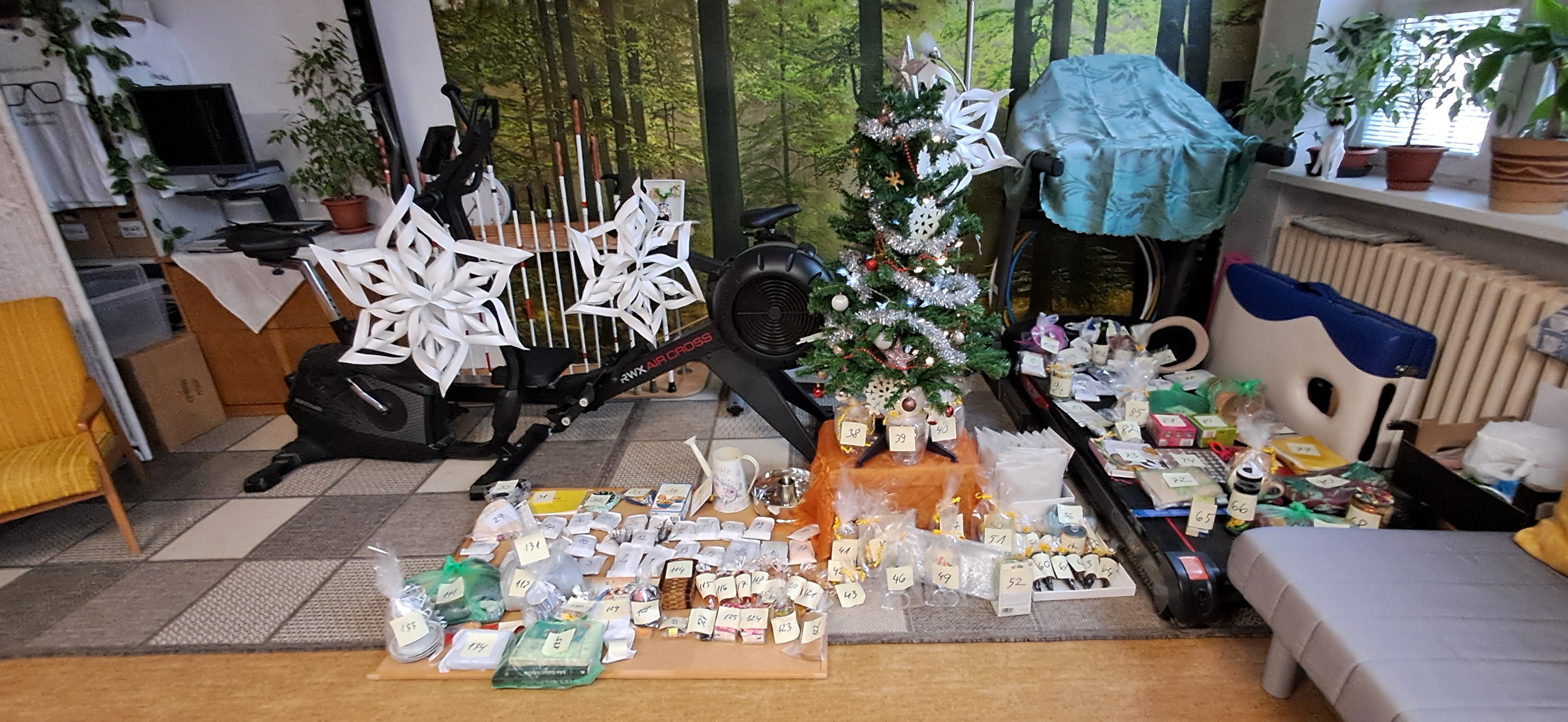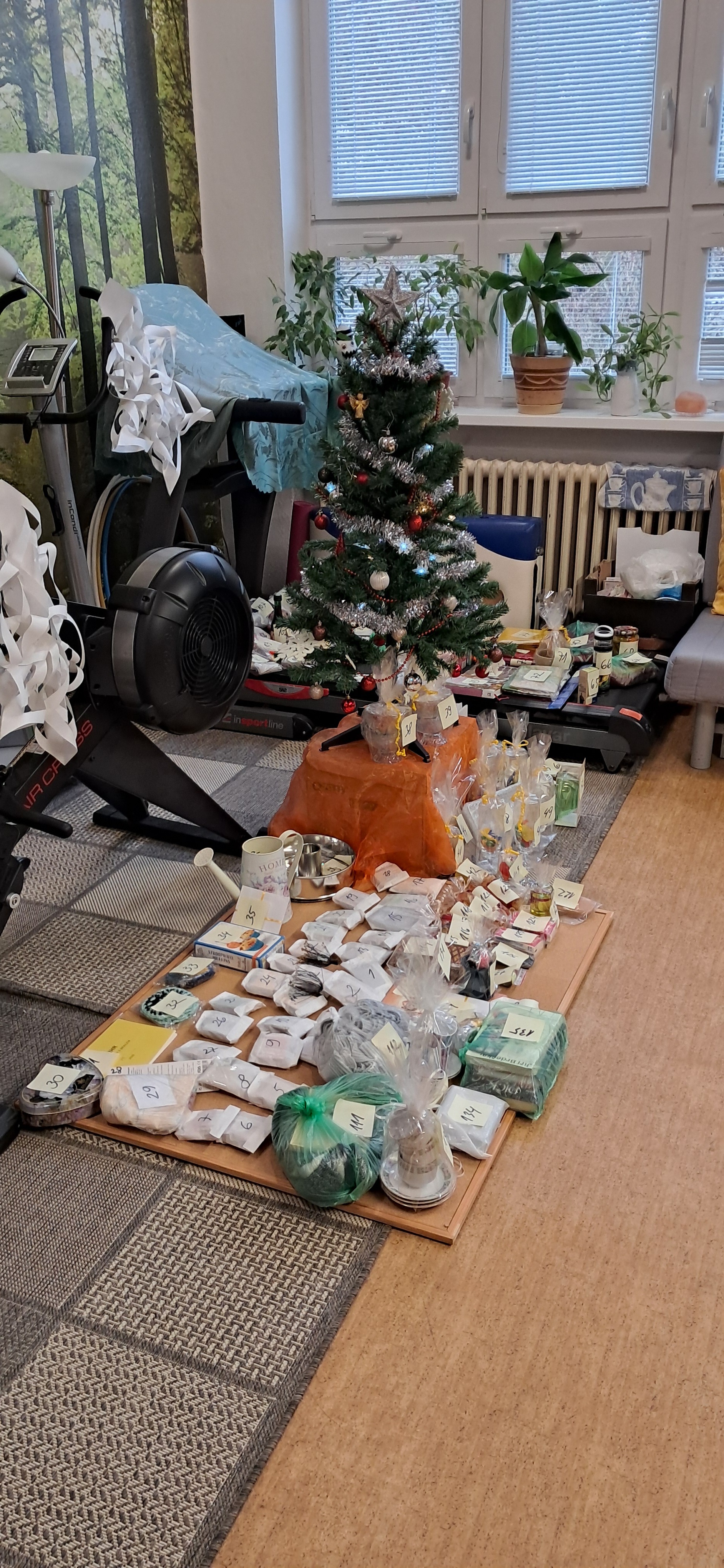 Malé i velké nezbytnosti ozdobily prostor pod naším stromkem. Kolegyně ho zdobila poslepu a moc se povedl. Příprava a balení šli sami, na nic jsme nezapomněli a za hojné účasti návštěvníků zmizelo občerstvení, zbytky cukroví se při odchodu rozdaly. A i přes sto balíčků našlo nové majitele. Někdy i ty staré, ale s tím se musí počítat. Získaná věc vám tím říká, že jste ji neměli chtít dát pryč. Ke mně se vrátil reflexní přívěsek s ještěrkou, bavlněný nákrčník a hromada sladkostí.