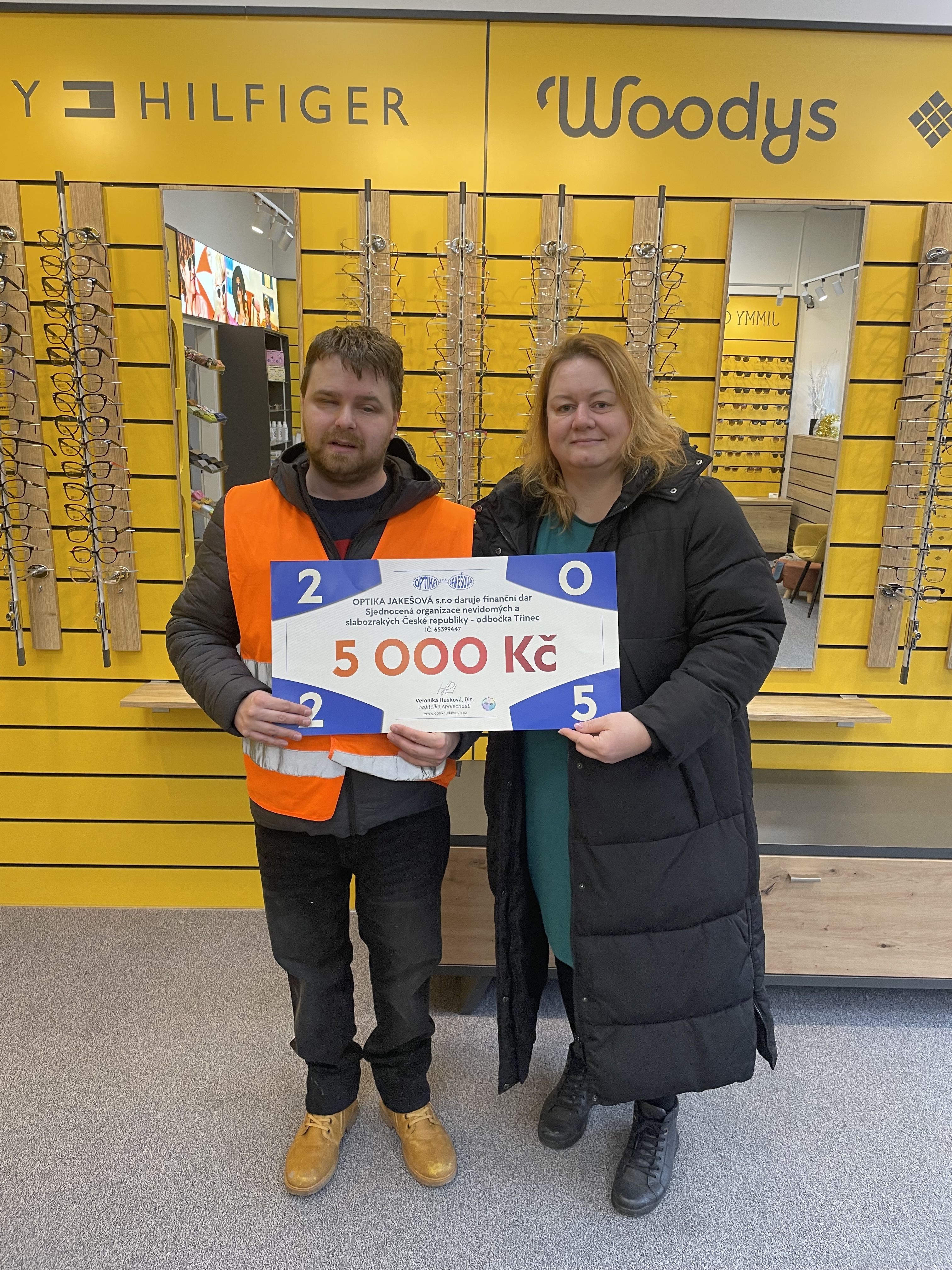 Dne 26. 1. 2026 jsme byli v optice Jakešová, s.r.o. převzít poukaz finančního daru v hodnotě 5000 kč. Tímto moc děkujeme oční optice Jakešová, s.r.o. za každoroční podporu naší pobočky SONS Třinec! :)