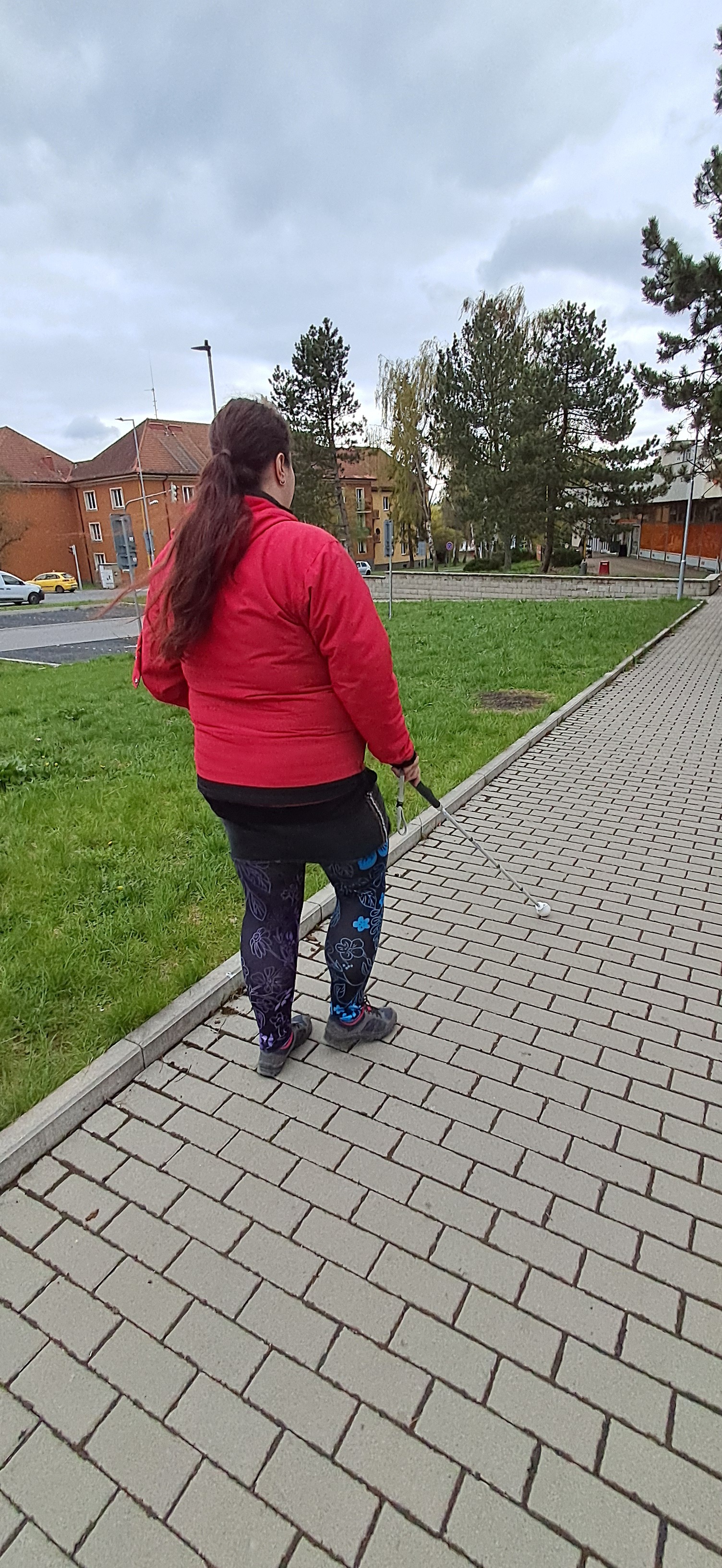 Samotná hůl má elektroniku pouze v rukojeti, tělo hole je pak klasika tak jak hole známe. Další zvláštností je pak koncovka. Hůl je dodávána v základě s velkou rotační koncovkou. Pokud na tuto koncovku nejste zvyklí, tak jako já, zpočátku jde opravdu o zvláštní styl chůze a orientace. Ale rychle si zvyknete. Výhodou je že pokud by se s tělem hole něco stalo, není problém rukojeť s elektronikou vyšroubovat a nasadit na jiné tělo hole. Lze vyměnit i samostatně koncovku. Rotační koncovka však má svůj význam hůl je o něco těžší než obyčejná, a proto je lepší hůl nezvedat ale odlehčit zápěstí tím, že s ní jezdíme po zemi. Hůl má mikrofon umístěný na samotné špičce hole, která směřuje k člověku. Zpočátku jsem se bála že nebude dobře slyšet, ale kvalita reproduktoru je vysoká a hlas navigace je slyšet velmi dobře. Hůl si čerpá pokyny z telefonu a umělým hlasem Vám instrukce předříkává v reálném čase. A i zde je přesnost vysoká zdá se že s tolerancí maximálně 1 metru se navigace opravdu strefuje. Dále je možné projitou trasu uložit a příště se stejnou cestou nechat navigovat.