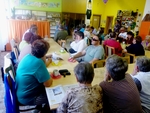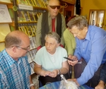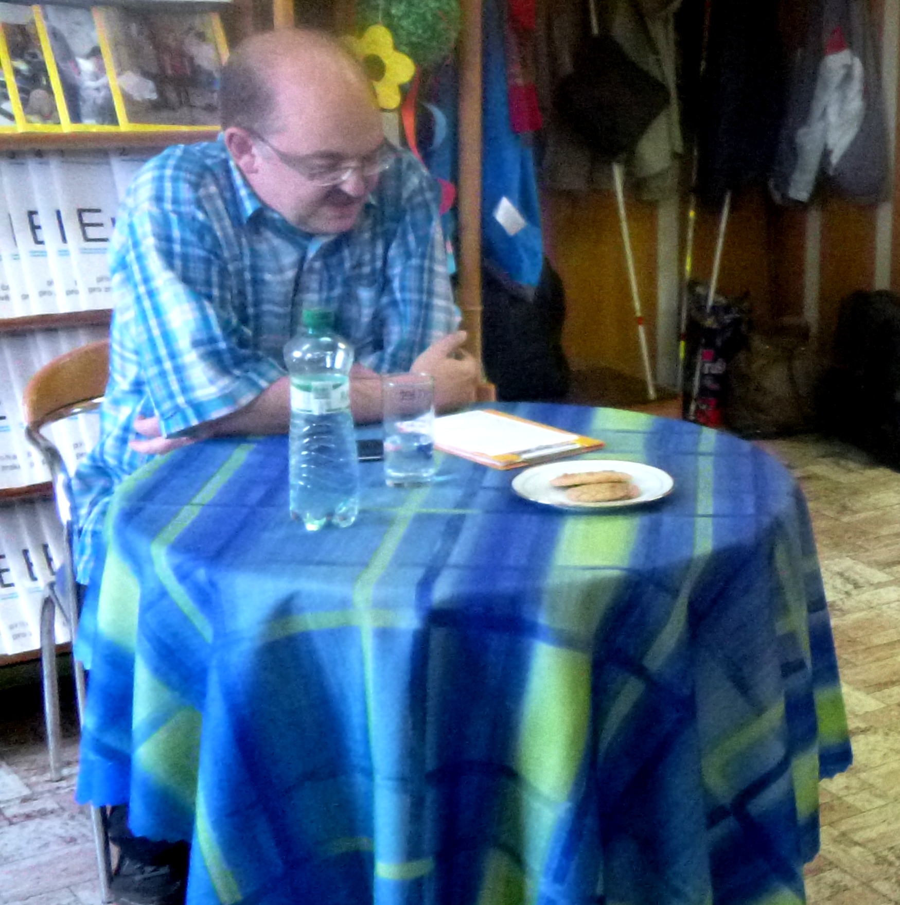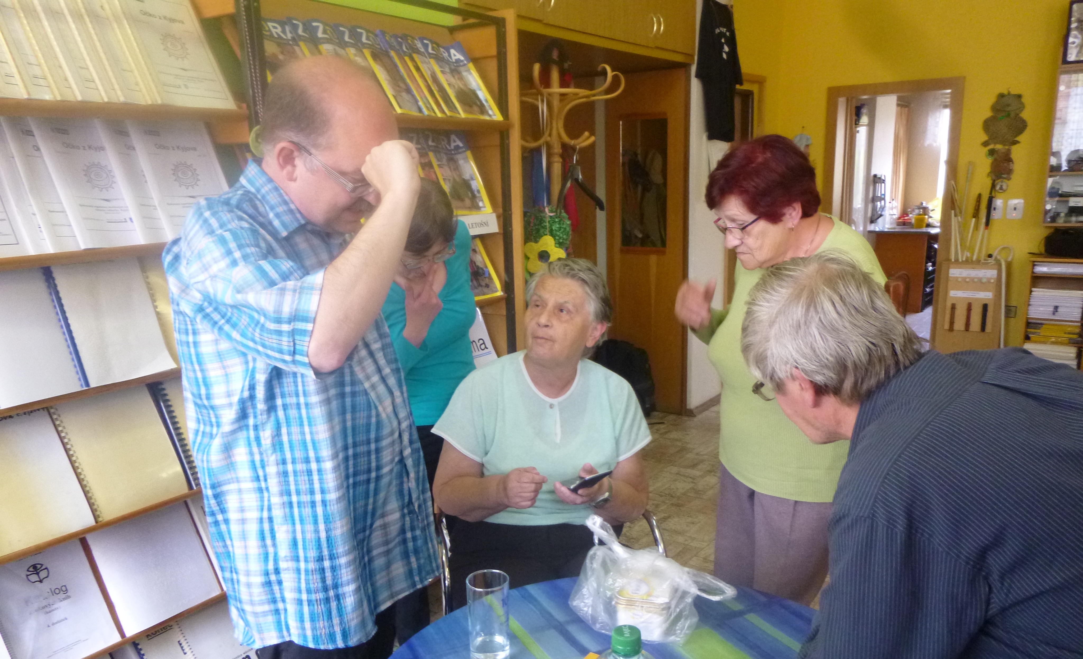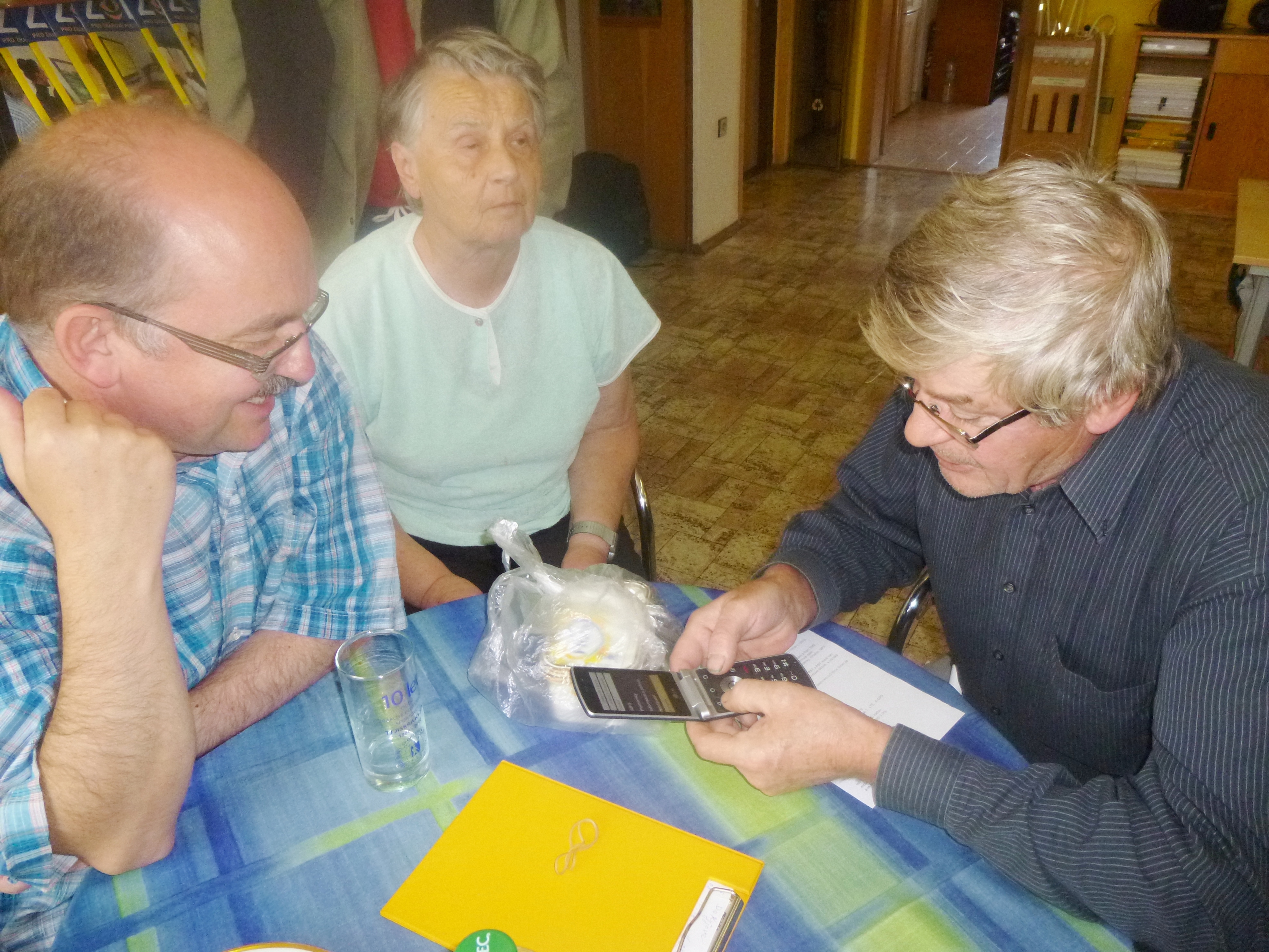 Pan Sáček nám představil mobilní telefon LG Wine Smart, který je tzv. véčkový. Kromě dotykového displeje obsahuje i hmatnou hardwarovou klávesnici. Tento telefon není nijak zvlášť výkonný a proto je určen především nenáročným nevidomým uživatelům, kteří chtějí používat klávesové ovládání. Aplikace RST zpřístupňuje nevidomému plně volání, psaní a čtení SMS, kontakty, nastavení a informace o stavu telefonu, a zahrnuje další užitečné funkce jako je například GPS navigace.