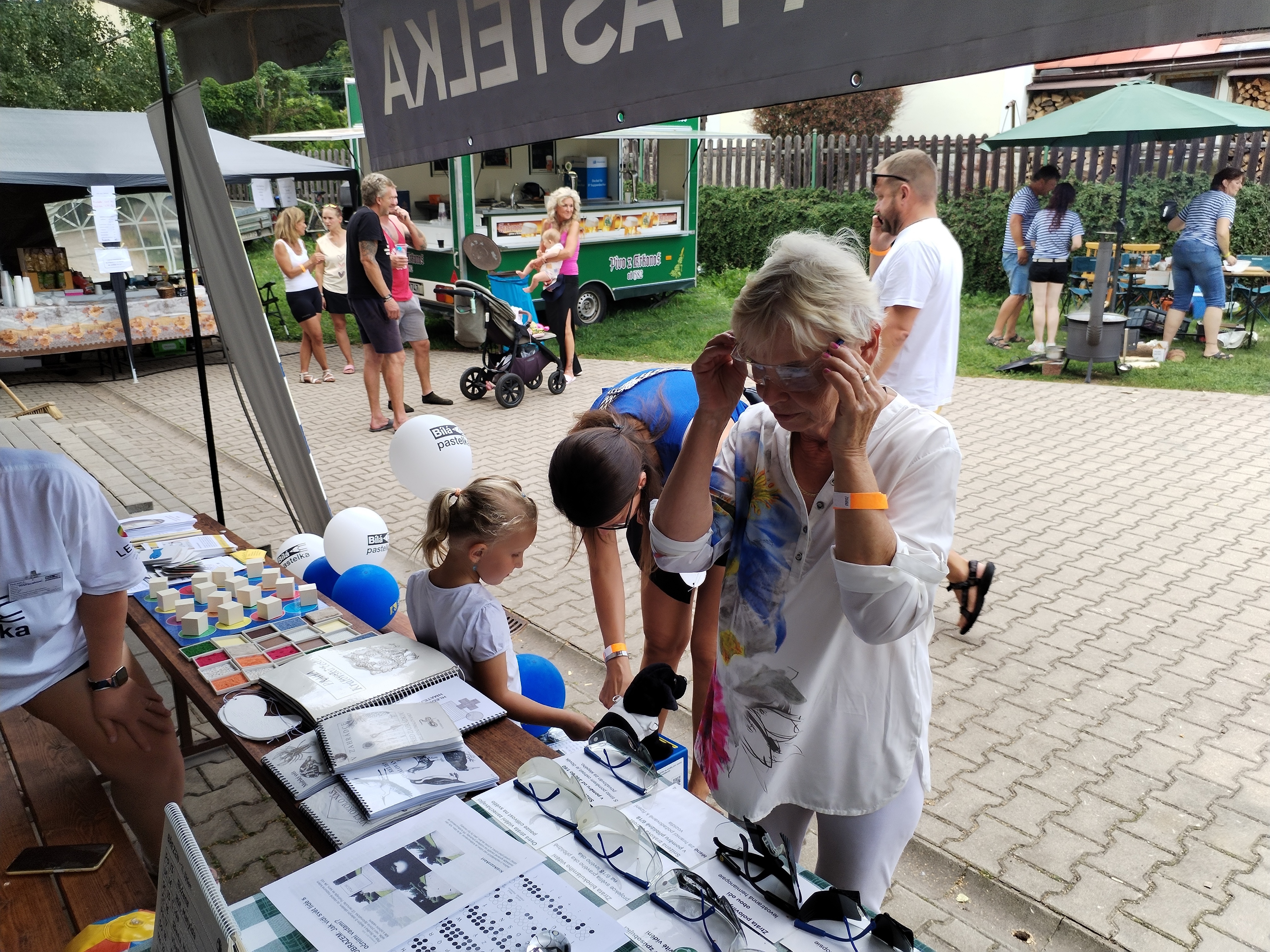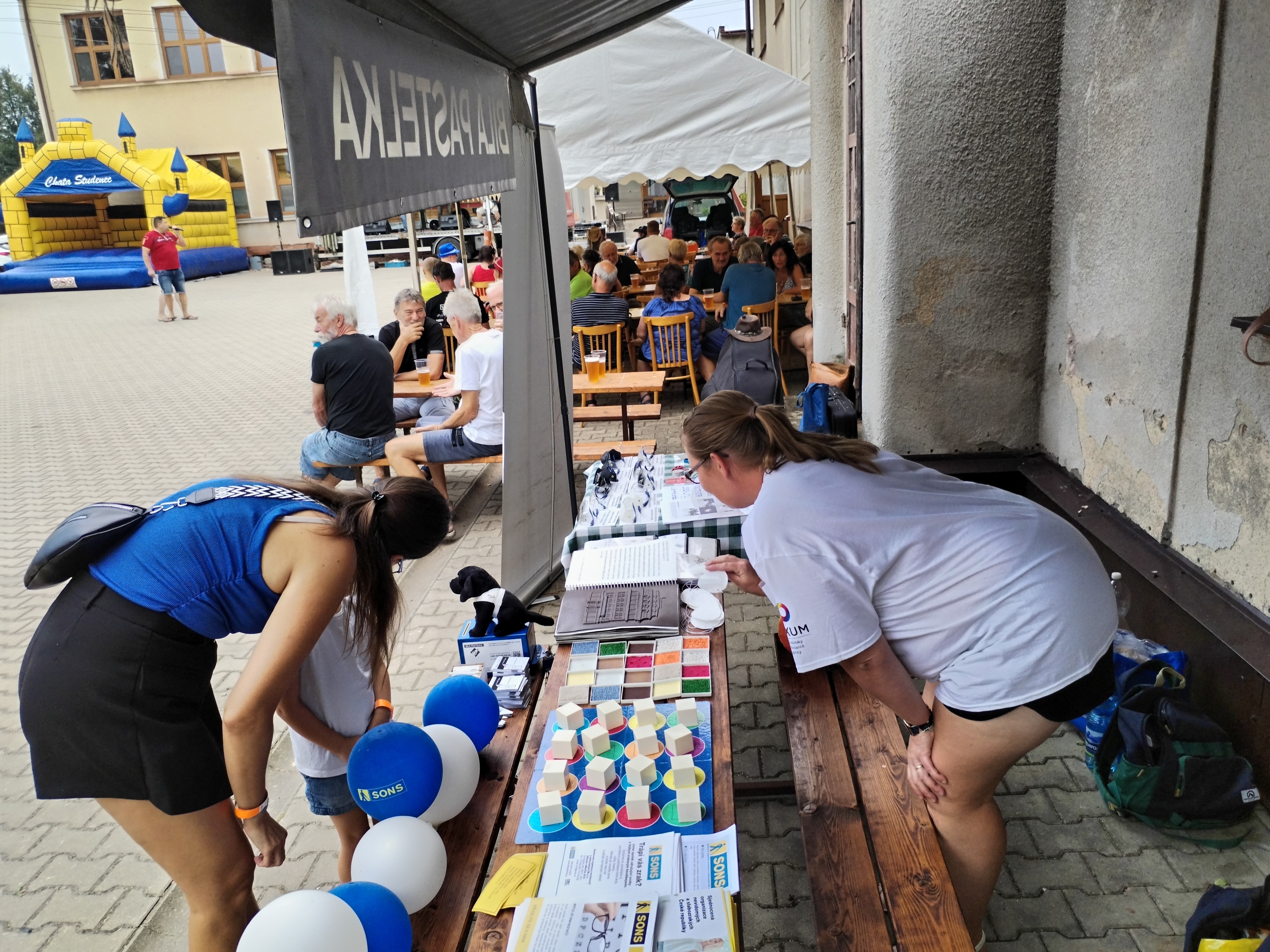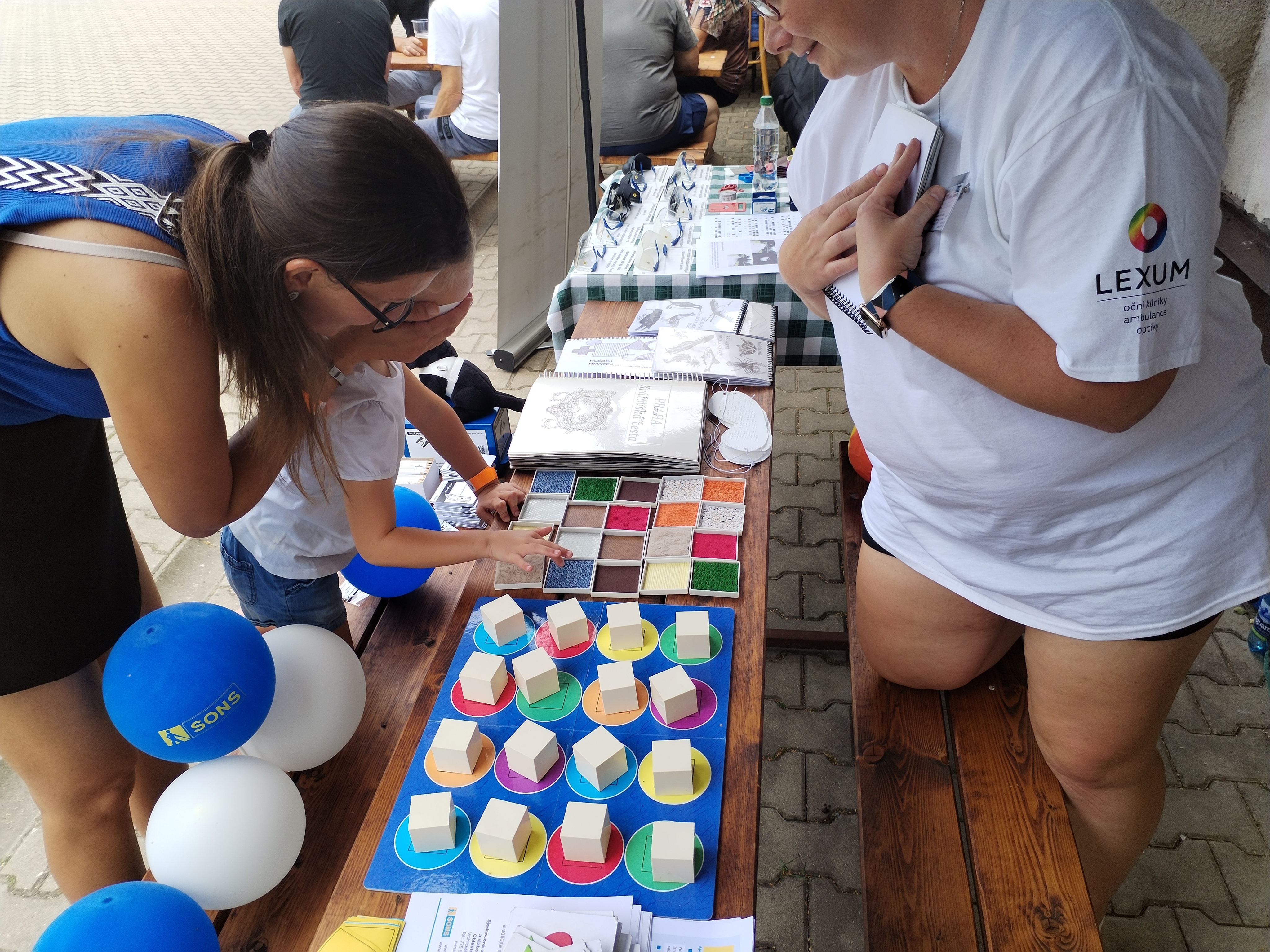 Pro návštěvníky jsme měli připravený plný stůl pomůcek pro nevidomé a slabozraké – přes lupy, měrku, kolortestr po ukázku Braillova písma. Nechyběly ani brýle evokující zrakové vady. Zejména pro děti oblíbené a velmi atraktivní hry – zvukové a hmatové pexeso. Toto si s radostí vyzkoušeli i dospěláci. S klapkami na očích to opravdu není snadné 😊. Děti se k nám opakovaně vracely a hmatového pexesa se nemohly nabažit. Odměnou jim byl samozřejmě balónek. Všechny děti byly velmi šikovné a bystré.