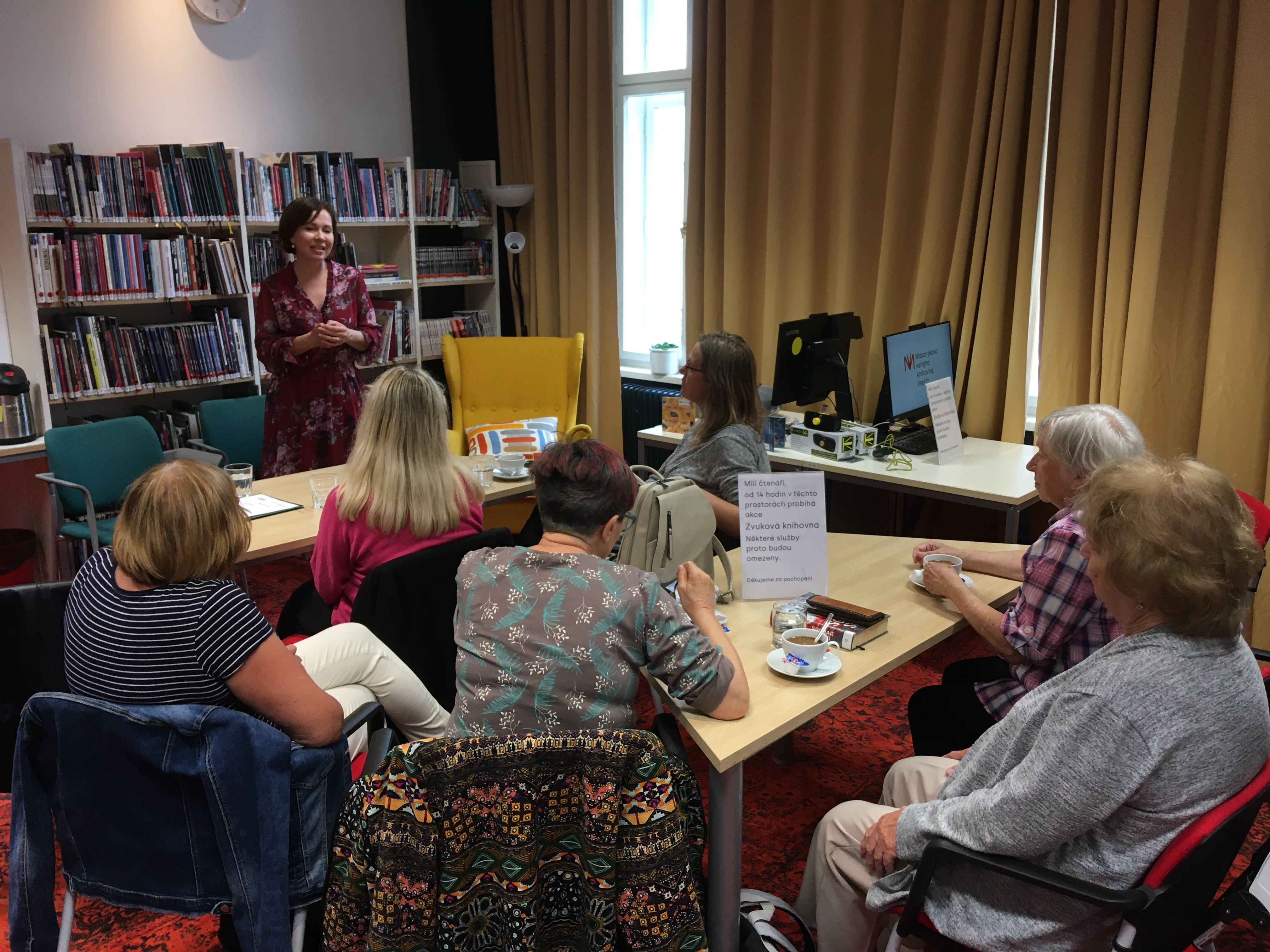 Po tříměsíční odmlce jsme opět zavítali s uživateli služby do zvukové knihovny ve Vsetíně. Nejprve jsme společně prošli náhradní prostory knihovny, která je v současné době přestěhována do Lidového domu z důvodu rekonstrukce. Poté jsme se zaposlouchali do novinek audio knih, které si pro nás Masarykova veřejná knihovna Vsetín připravila spolu s pěkným povídáním. Na závěr jsme se s uživateli seznámili s jednoduchým čtecím zařízením, které přehrává zvukové knihy nahrané na flash disku. Setkání bylo přínosné a příjemné zároveň. Těšíme se na další společné aktivity.