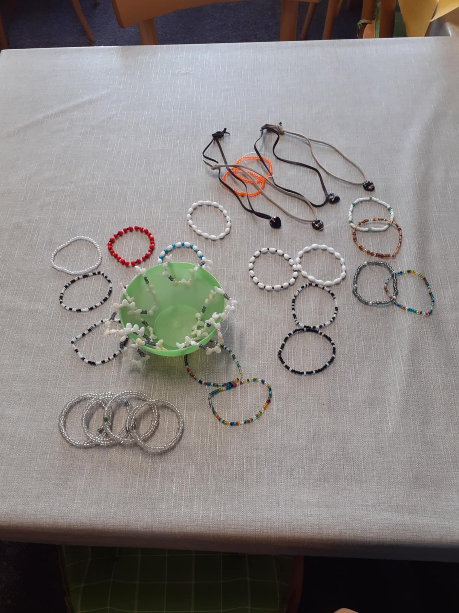 V říjnovém výtvarném kroužku jsme vyráběli náramky, které společně s jinými výrobky vytvořené uživateli vystavíme u stánku ve sbírkové dny Bílé pastelky ve dnech 13. - 15. října. SONS Přerov bude mít umístěný stánek u obchodního centra Galerie, před lékárnou Dr.Max. Ve sbírkové dny se budeme snažit prodat co nejvíce pastelek a podpořit speciální služby pro nevidomé a slabozraké.