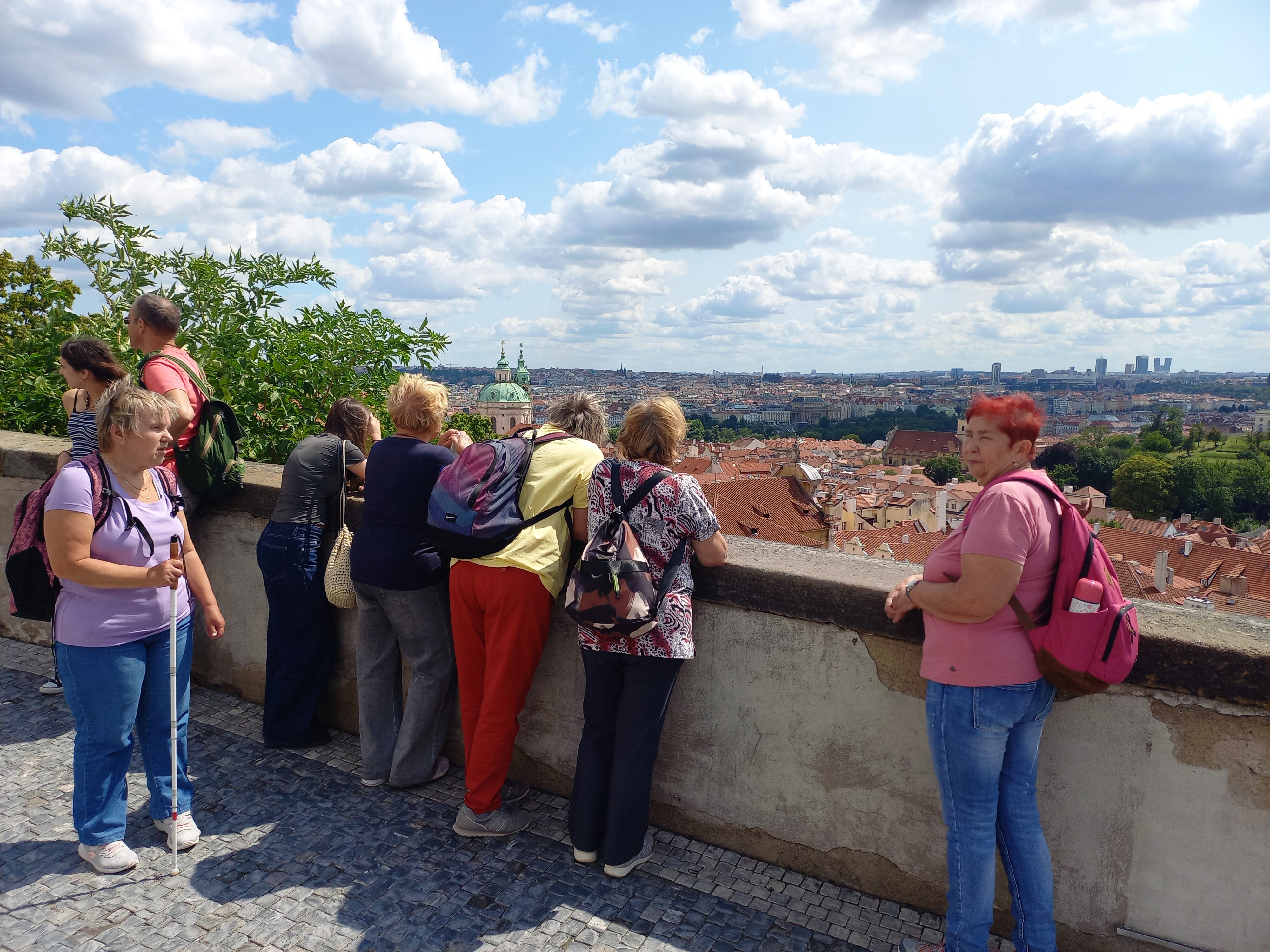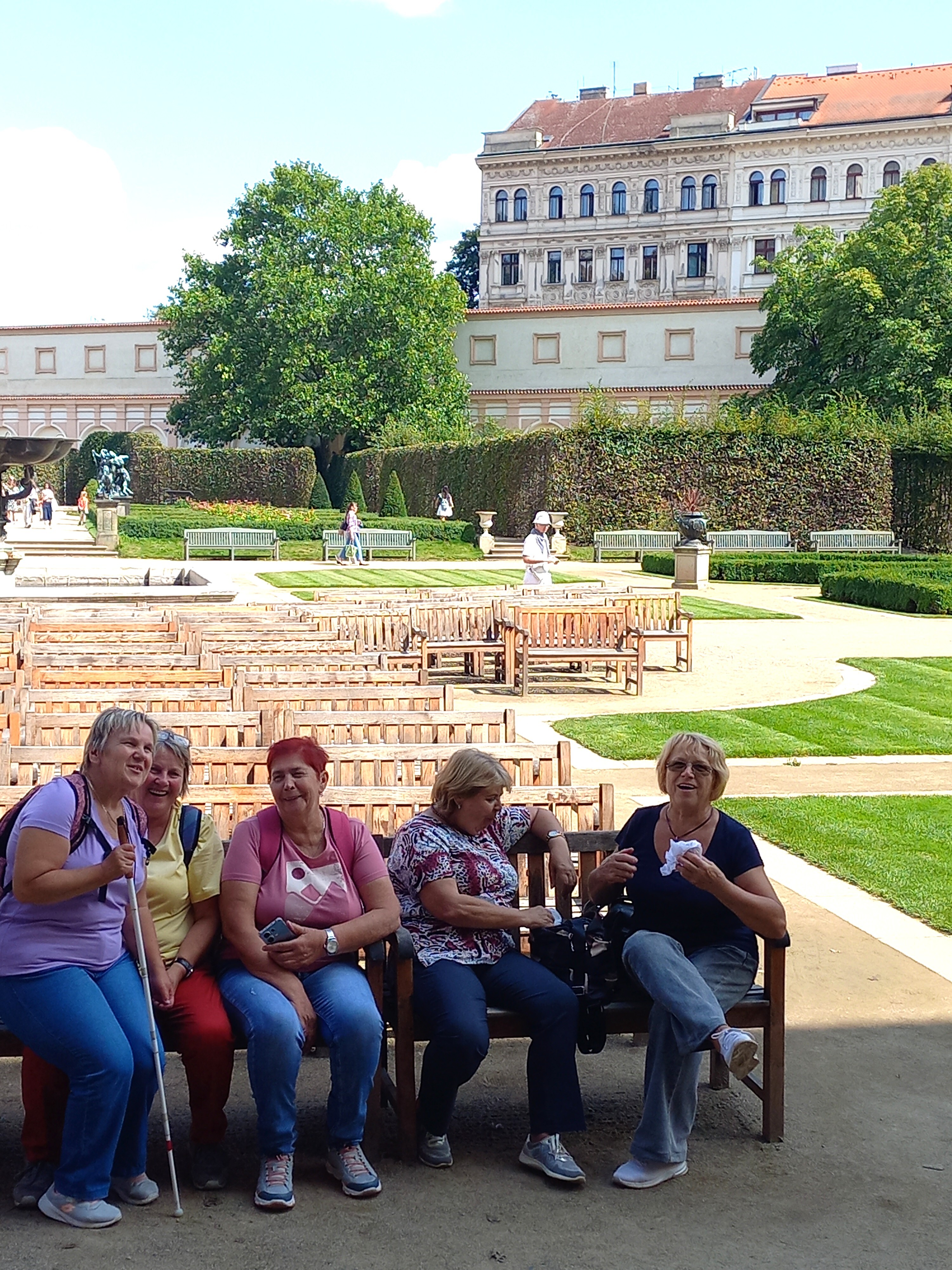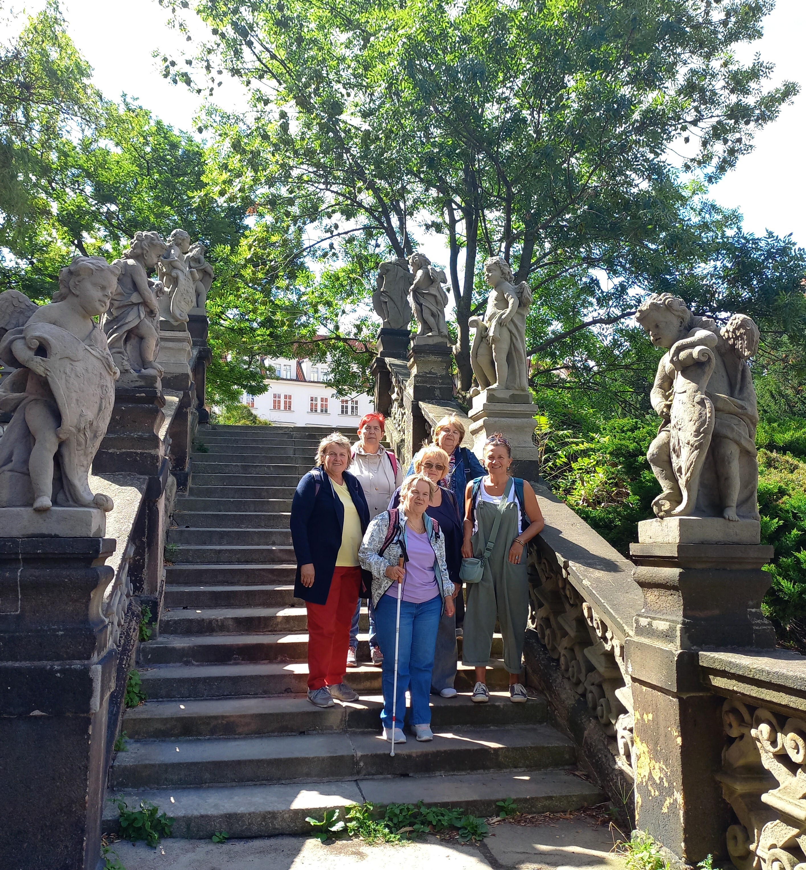 V srpnu jsme se vydaly do našeho hlavního města s plánem projít jeho historickou část. Praha nádherná - architektura, budovy, zahrady… ale … příště už určitě ne o prázdninách, turistů přehršel.. Byl to občas boj udržet naši skupinku pohromadě, ale zase na druhou stranu opravdový tvrdý trénink samostatného pohybu, rychlého nástupu do dopravních prostředků, samostatné jízdy tramvají a výstupu na cílové zastávce – to když půlce skupiny pan řidič zavřel dveře před nosem a část odjela na Pražský hrad a část nás zůstala na zastávce…