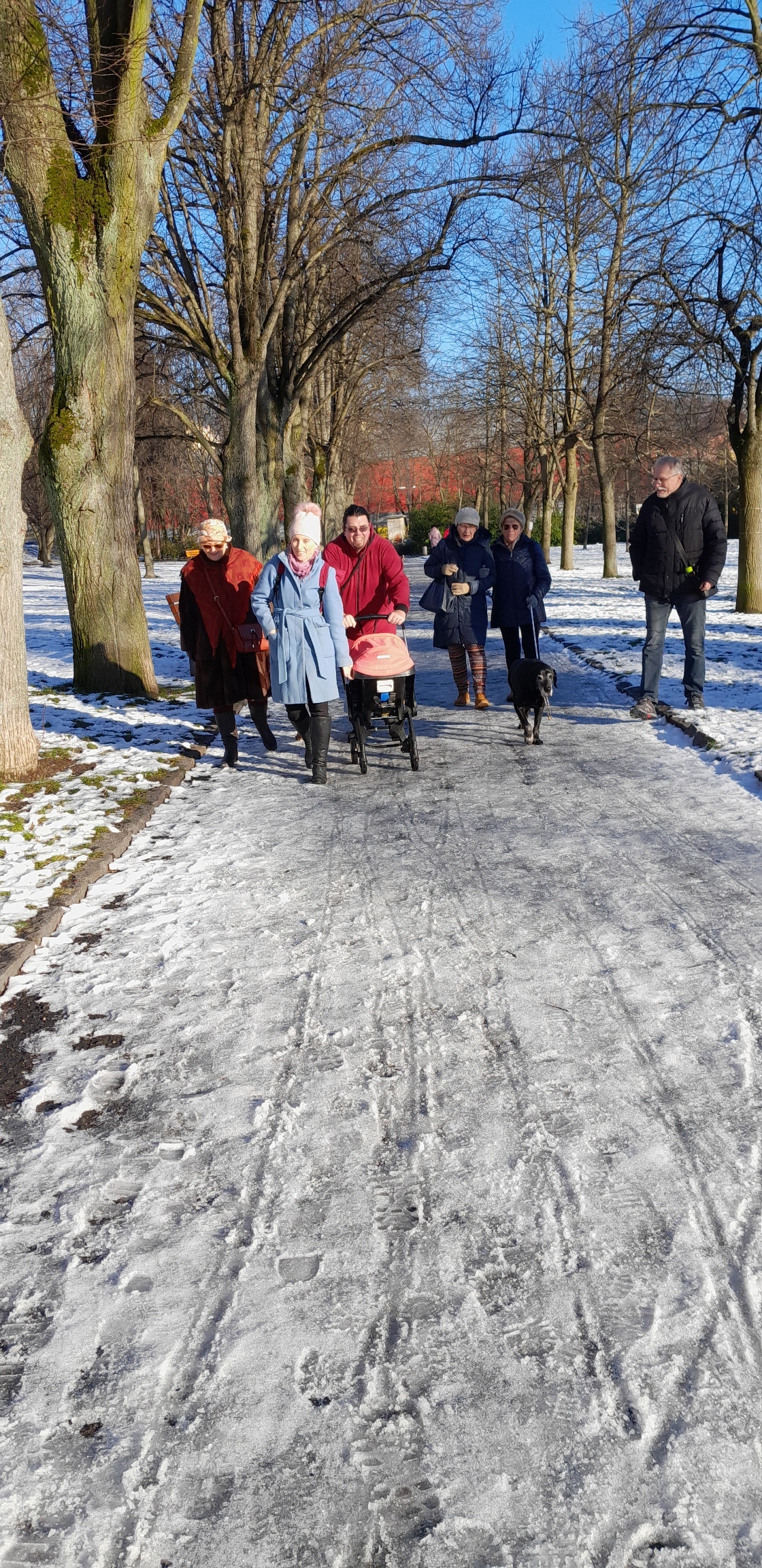 V sobotu 18. ledna jsme se s našimi členy liberecké odbočky SONS vydali na nenáročnou procházku parkem v Budyšínské ulici, jehož součástí je Zahrada vzpomínek. Byl krásný zimní slunečný a mrazivý den - na procházku přímo stvořený. Park není vzpomínkou na hlubokou historii, ale spíše na doby nedávno minulé. Ta je ukrytá v kamenné dlažbě - v ní se objevují různé prvky, například stará dlažba z Nerudova náměstí, kachle ze zemědělského stavení v Krásné Studánce, bílá mramorová dlažba z varny z vratislavického pivovaru, střešní keramické i skleněné tašky z Městských lázní nebo komínové cihly z bývalé Textilany. Dlažba byla pokrytá vrstvou sněhu, takže nebylo nic k objevování, ale zajímavý výklad o vzniku Zahrady vzpomínek byl poutavý. U jednoho z keřů jsme objevili sochu medvěda, která kdysi stávala v liberecké zoologické zahradě. Příjemný společně strávený čas jsme zakončili v kavárně VITA Café Bistro, kde jsme si pochutnali na zákuscích a výborné kávě.