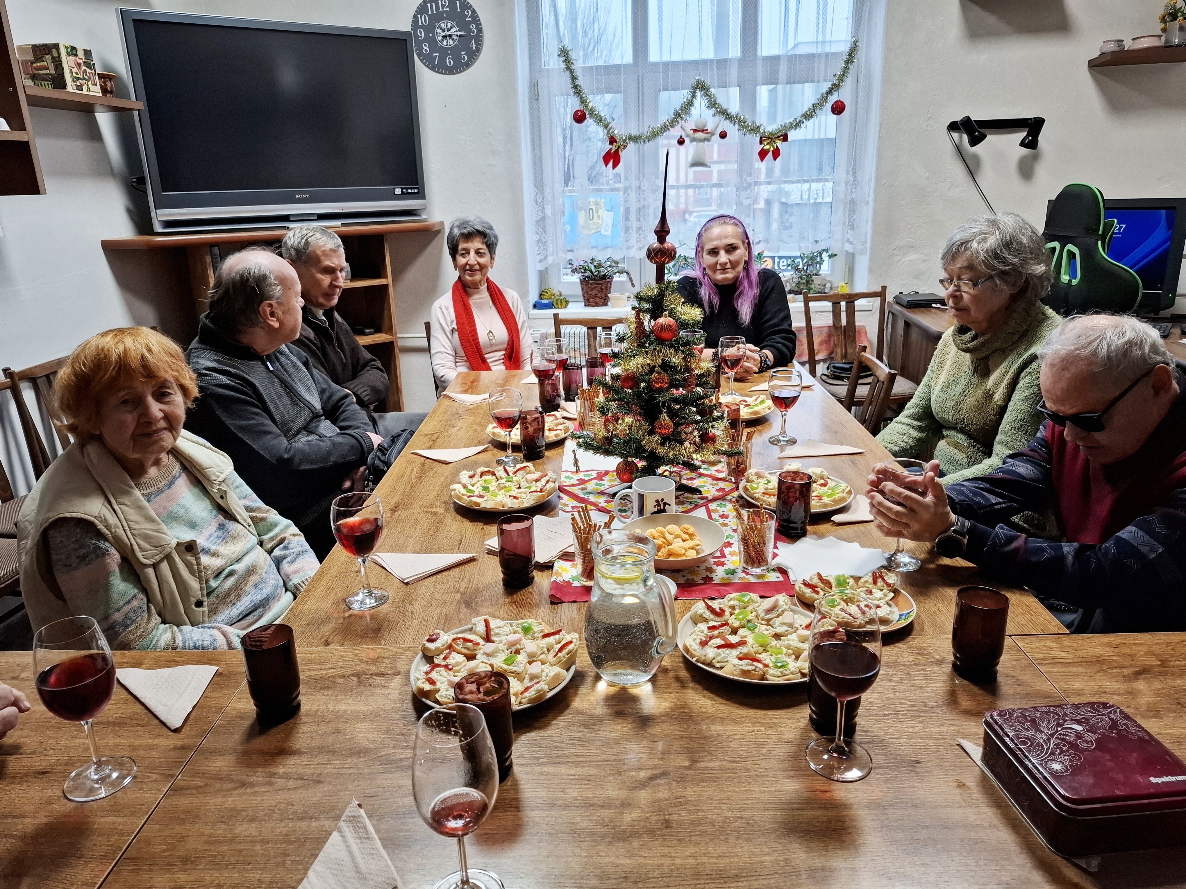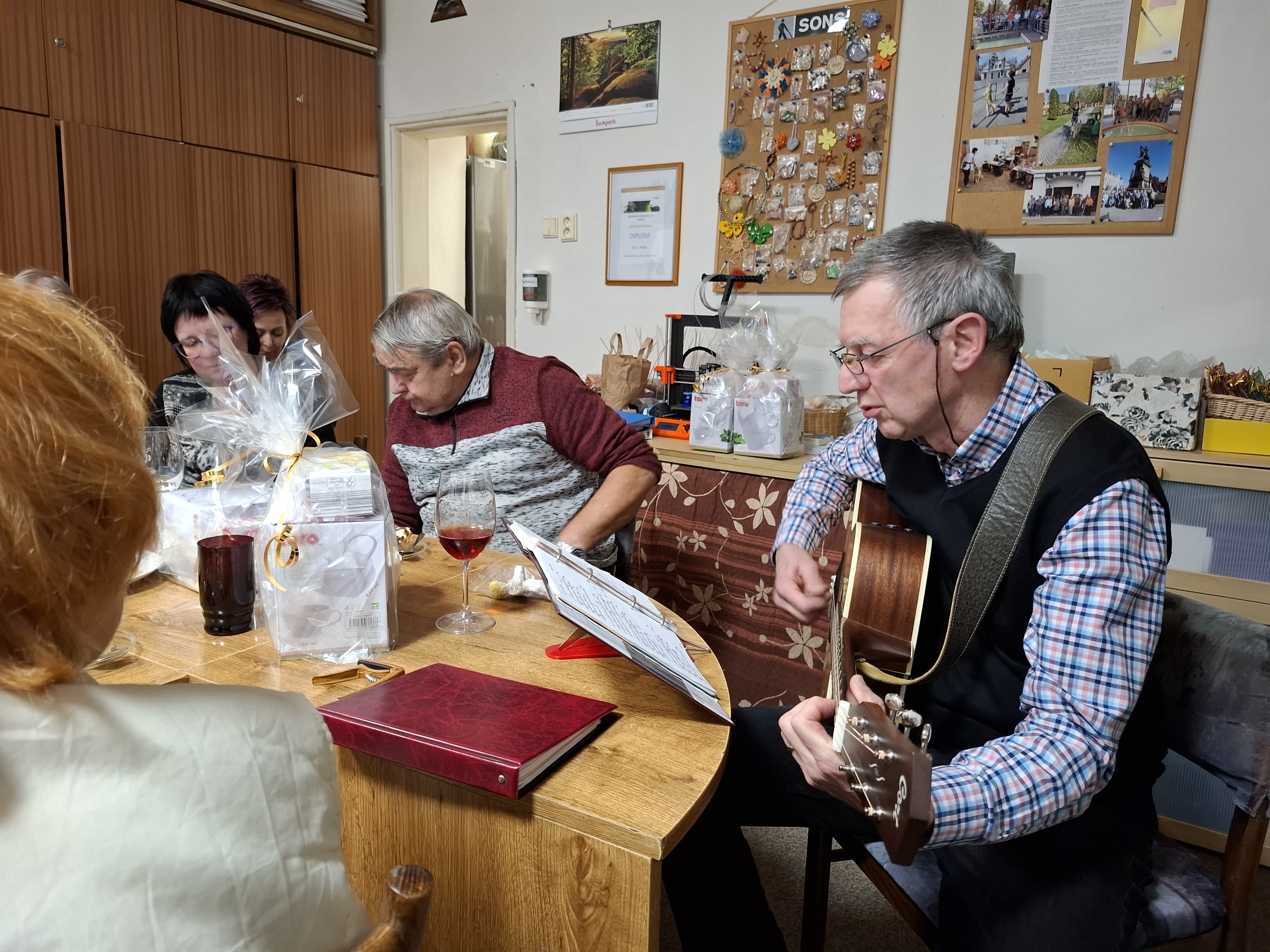 Setkání začalo srdečným uvítáním, přáním všeho nejlepšího a společným přípitkem na zdraví. Atmosféra byla příjemná a uvolněná, což dodalo všem odvahu podělit se o své životní příběhy a významné okamžiky. Nechybělo bohaté občerstvení, předávání drobných dárků a dorazil i host – pan doktor Schlemmer, který zpestřil program hudebním vystoupením. Zvuk kytary a známé písničky rozezpívaly i ty, kteří obvykle nezpívají.