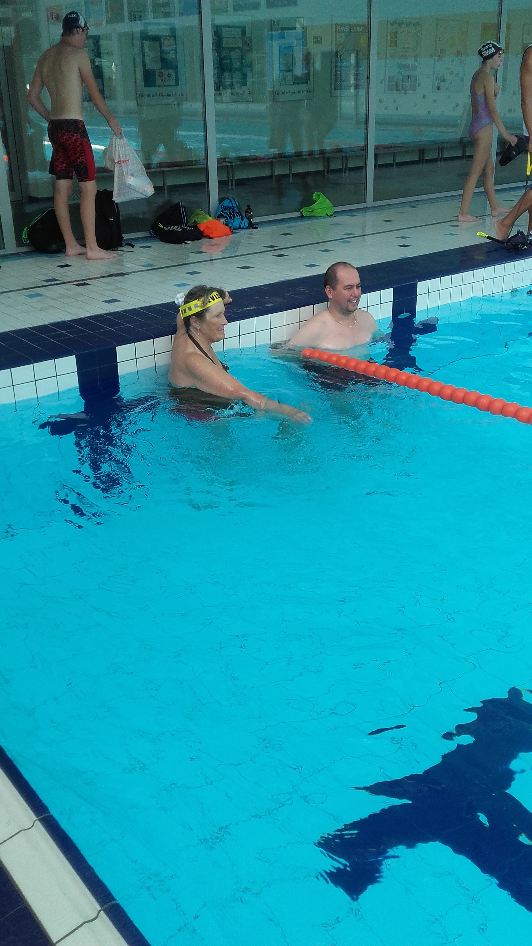 Po mírných zmatcích při převlíkání a sprchování jsme se směle vrhli do bazénu.