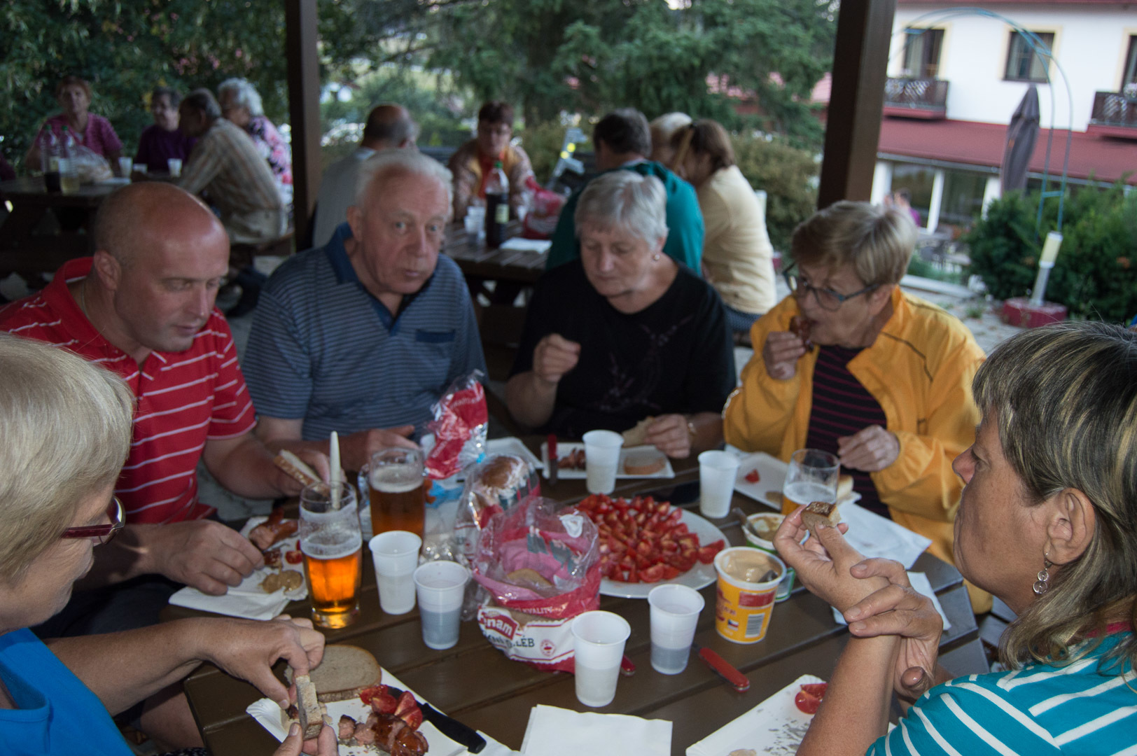 Večer nás čekalo společné posezení v altánku. Grilované špekáčky z místního řeznictví a trocha vína pomohla vytvořit příjemnou atmosféru. Pozdravit nás a chvilku s námi posedět přišli i majitelé hotelu. Neúnavné zpěvačky nás nakonec strhly ke zpěvu všechny. Ke spánku jsme se ukládali v úsměvem a písní na rtech. Reitterová