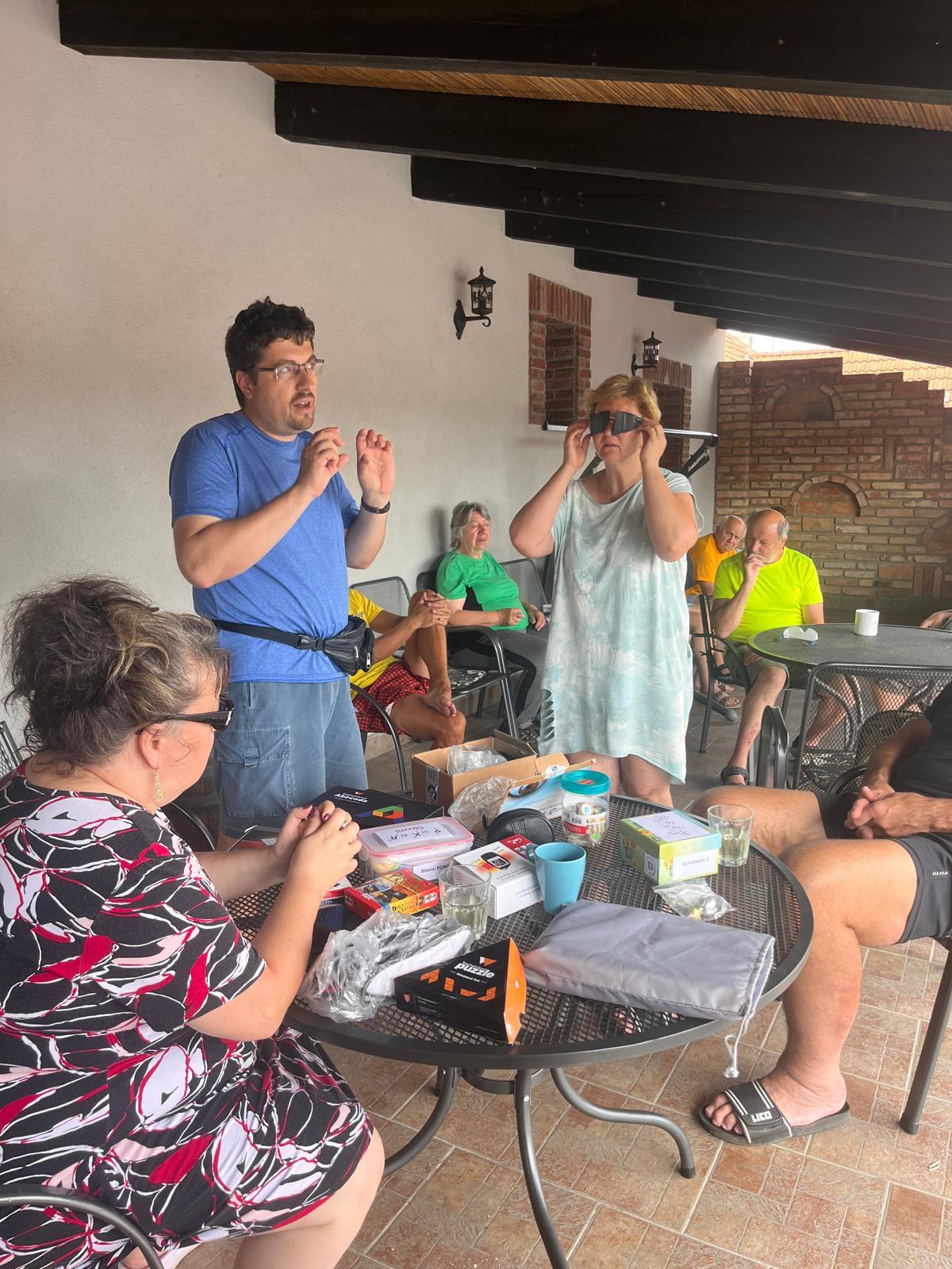 Mimo vyjížděk po okolí jsme se naučili nastavovat tandemy dle svých potřeb, ošetřit drobné poranění, připravovali jsme si snídaně ze surovin, které nám byly dodány, procvičovali jsme si orientaci v neznámém prostředí a povídali si o tom, jak kdo zvládá běžné činnosti ze života, když na to špatně vidí nebo nevidí vůbec. Při plánování aktivit jednotlivých dnů jsme brali ohled na zdraví a kondici účastníků, k čemuž napomáhalo i pravidelné měření tlaku.
