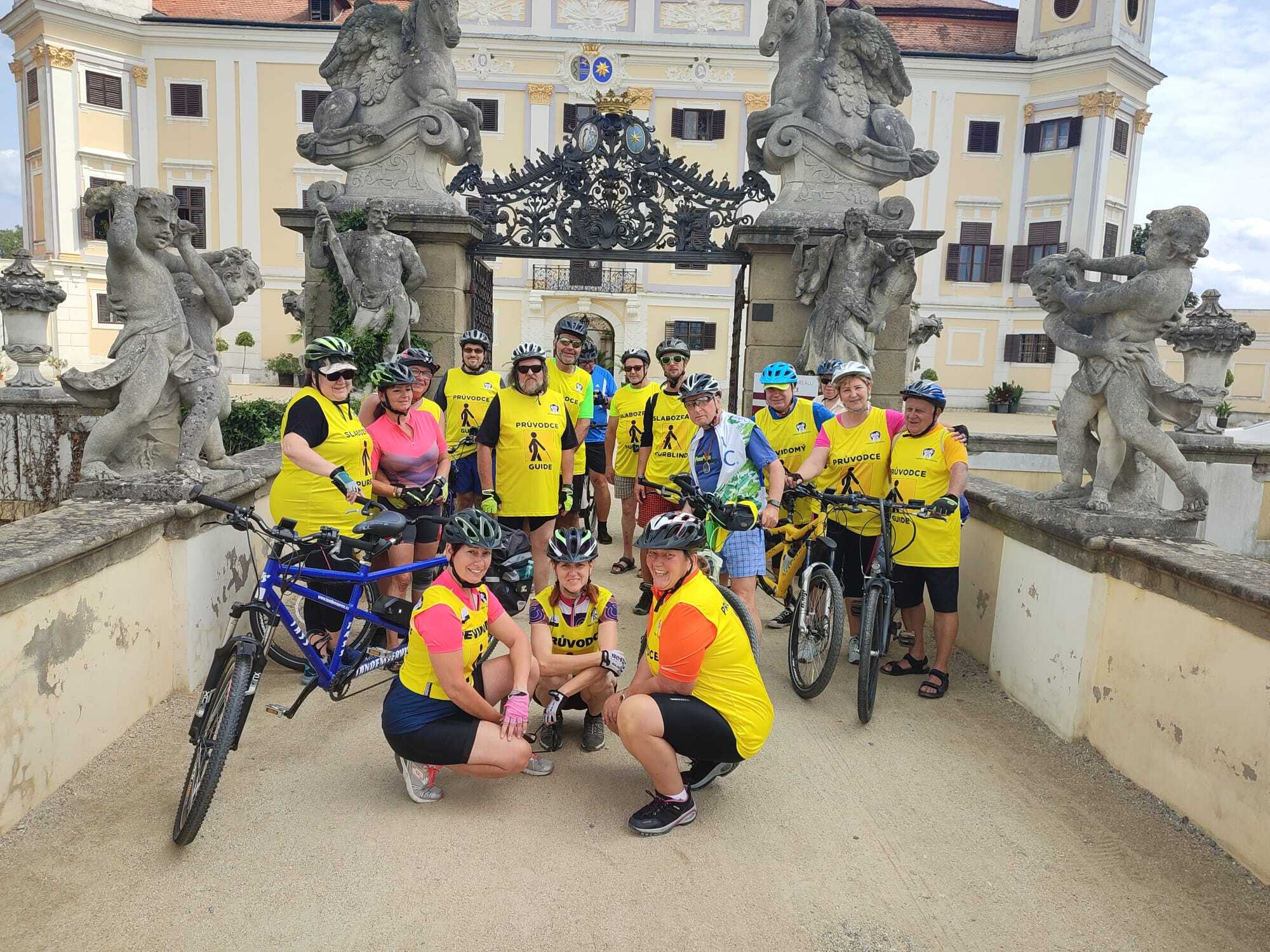 Druhý červencový týden patřil tradičně rekondičnímu cyklopobytu na tandemových kolech, a to o 22 cyklo-objevovatelích. Tentokrát jsme zvolili Kyjovské pahorkatiny a Dolnomoravský úval. Nacházeli jsme se přímo v srdci Slovácké vinařské podoblasti, která je součástí vinařské oblasti Morava. I tentokrát nám technickou podporu zajišťoval pan Petr Knápek se zapůjčenou dodávkou, kterou jsme si mohli dovolit díky finančí podpoře Nemocnice Šumperk, a.s.. Zázemí jsme našli v ubytování U babičky v Mutěnicích. K dispozici jsme měli i venkovní bazén, který jsme využívali k relaxačnímu cvičení po vyjížďkách na kolech. Tento bazén byl společný pro všechny návštěvníky ubytovacího zařízení. Dále zde bylo příjemné venkovní posezení na terase, kterou jsme využívali pro další aktivity na pobytu. Na večeře jsme chodili do restaurace Pod Búdama, která se nacházela necelých 900 m od penzionu, a tak jsme měli zároveň i pravidelnou večerní procházku. Večery jsme trávili s kytarou a zpěvem v podání Mikiho Ďurka nebo jsme se naučili nové společenské hry. Nejzajímavější a nejoblíbenější z nich byl hlavolam trojúhelníkové abecedy, kterou vymysleli na Univerzitě Palackého v Olomouci.