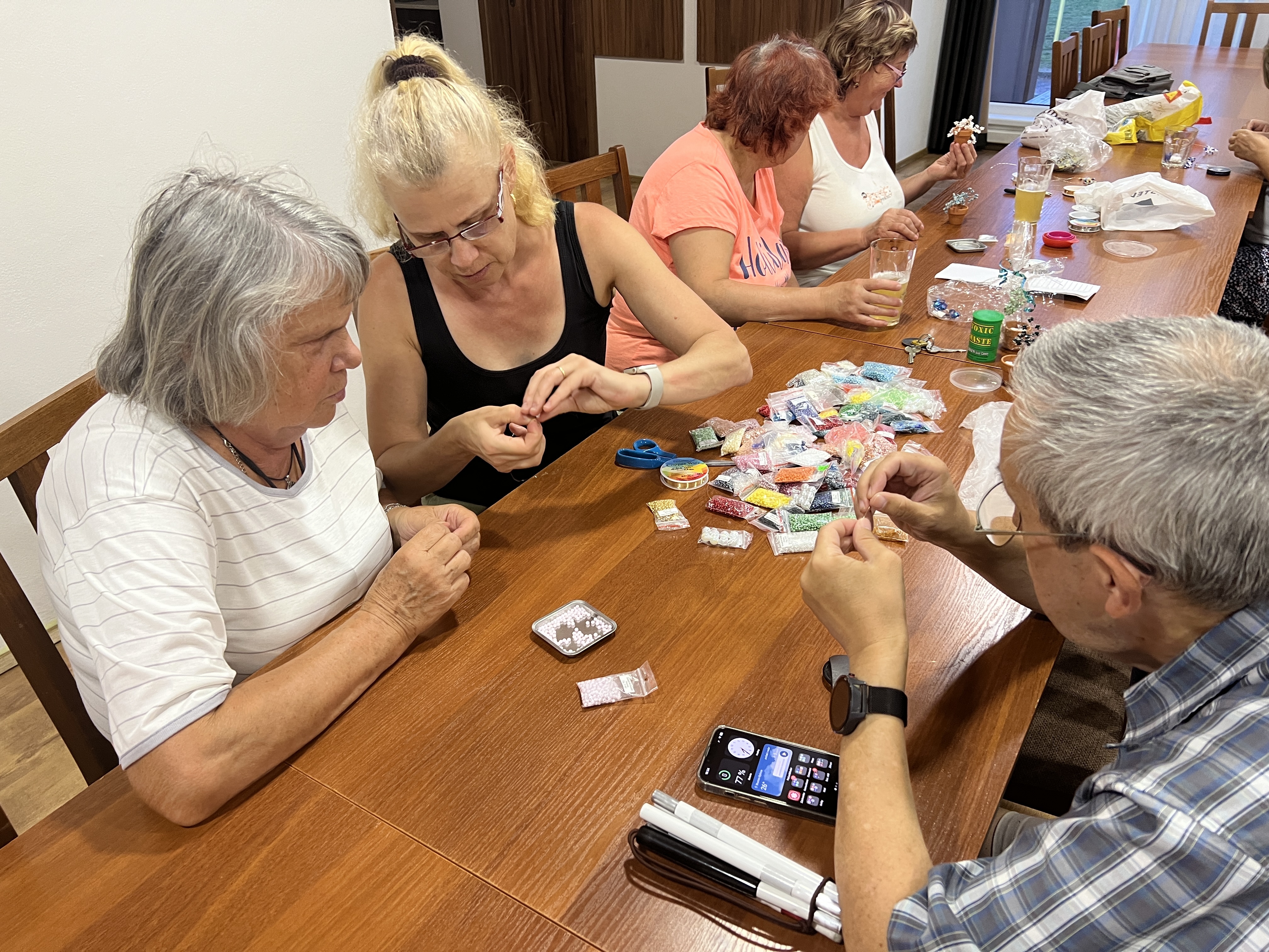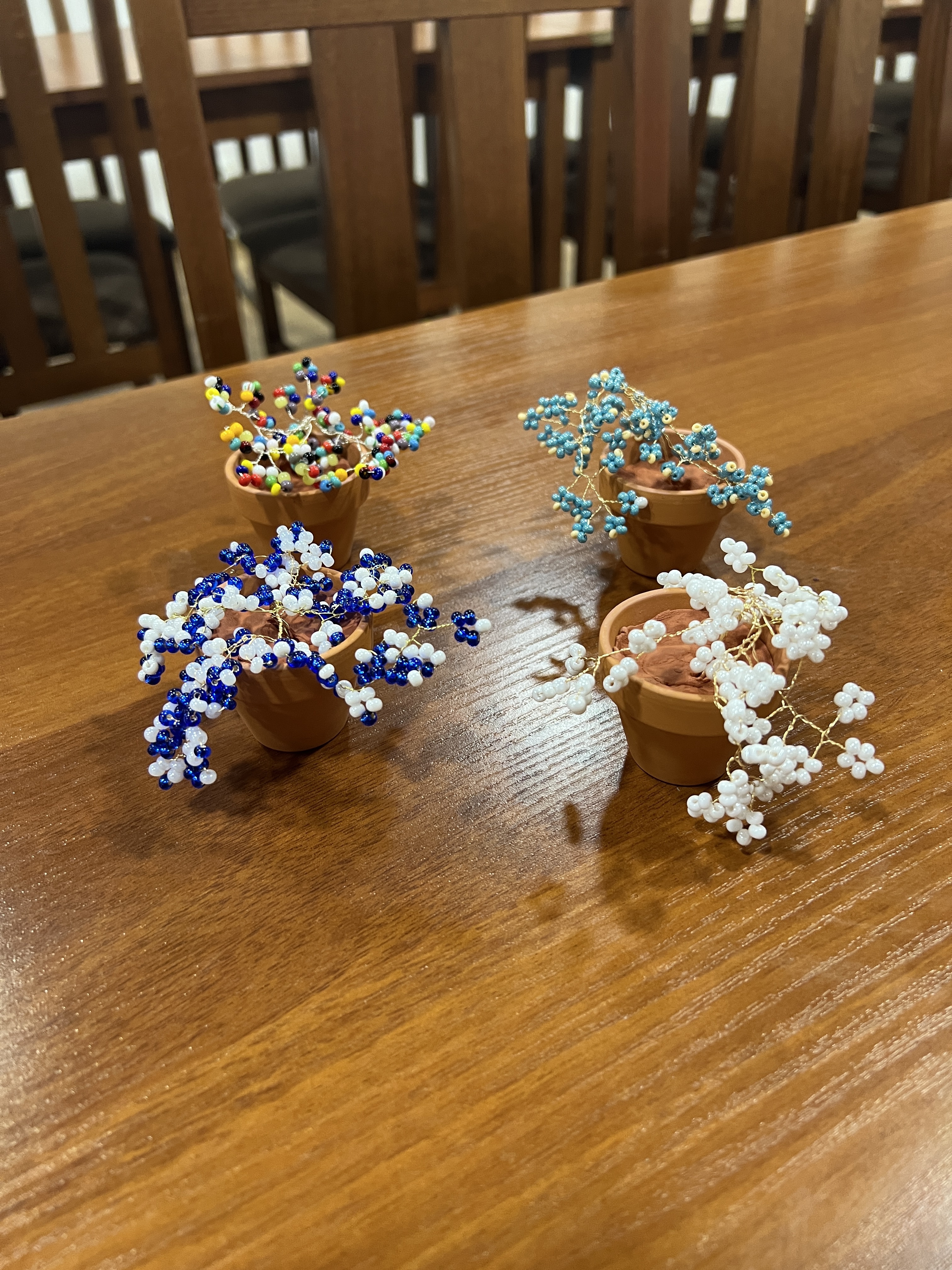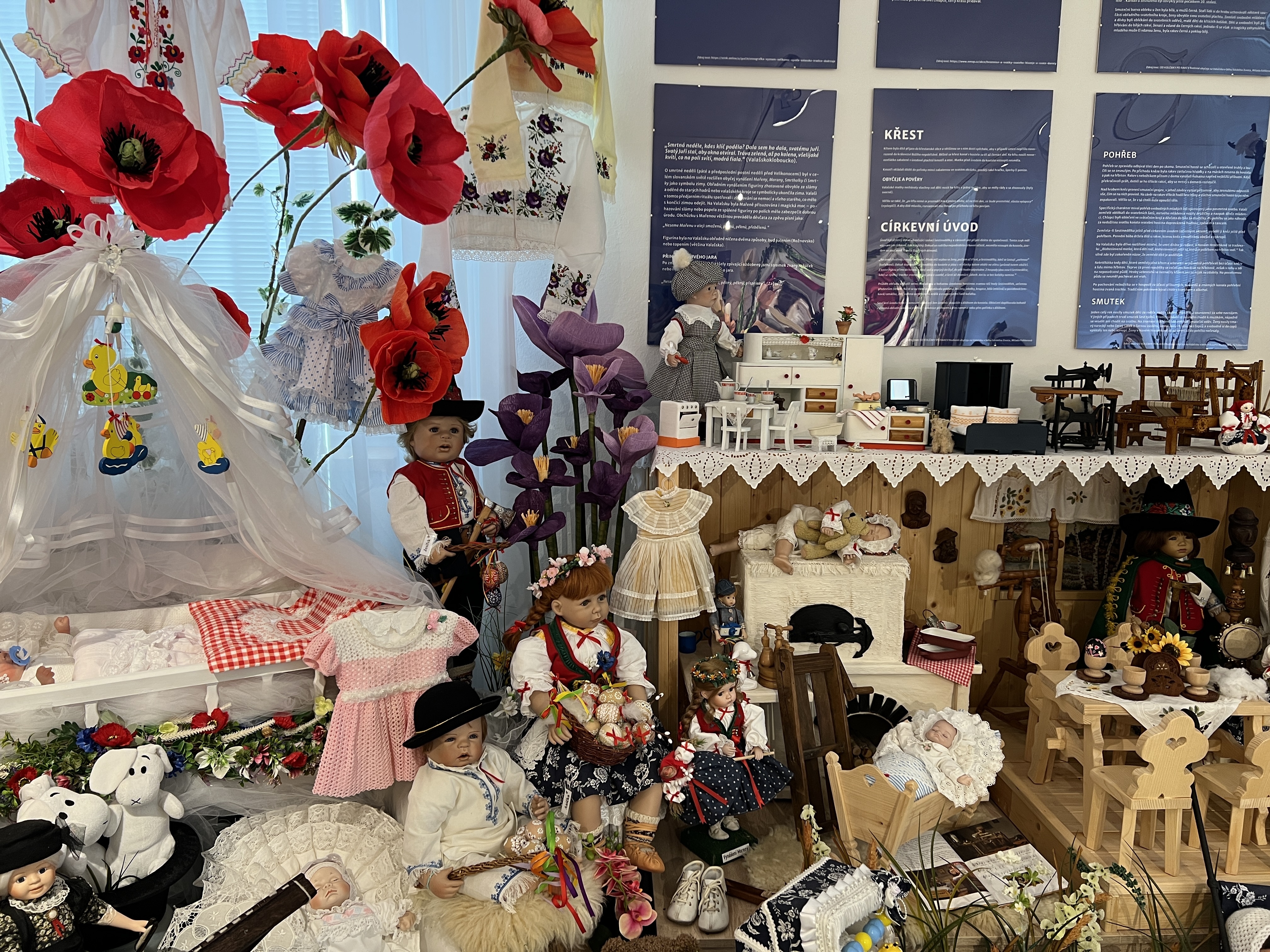 Během našeho tradičního tvoření jsme si společně procvičili jemnou motoriku a představivost při tvorbě stromků štěstí z korálků a někteří z nás také v rámci návštěvy výstavy valašských panenek ve Val. Kloboukách, kde byla možnost si jednoduchou panenku s pomocí kurátorky a majitelky výstavy vytvořit.