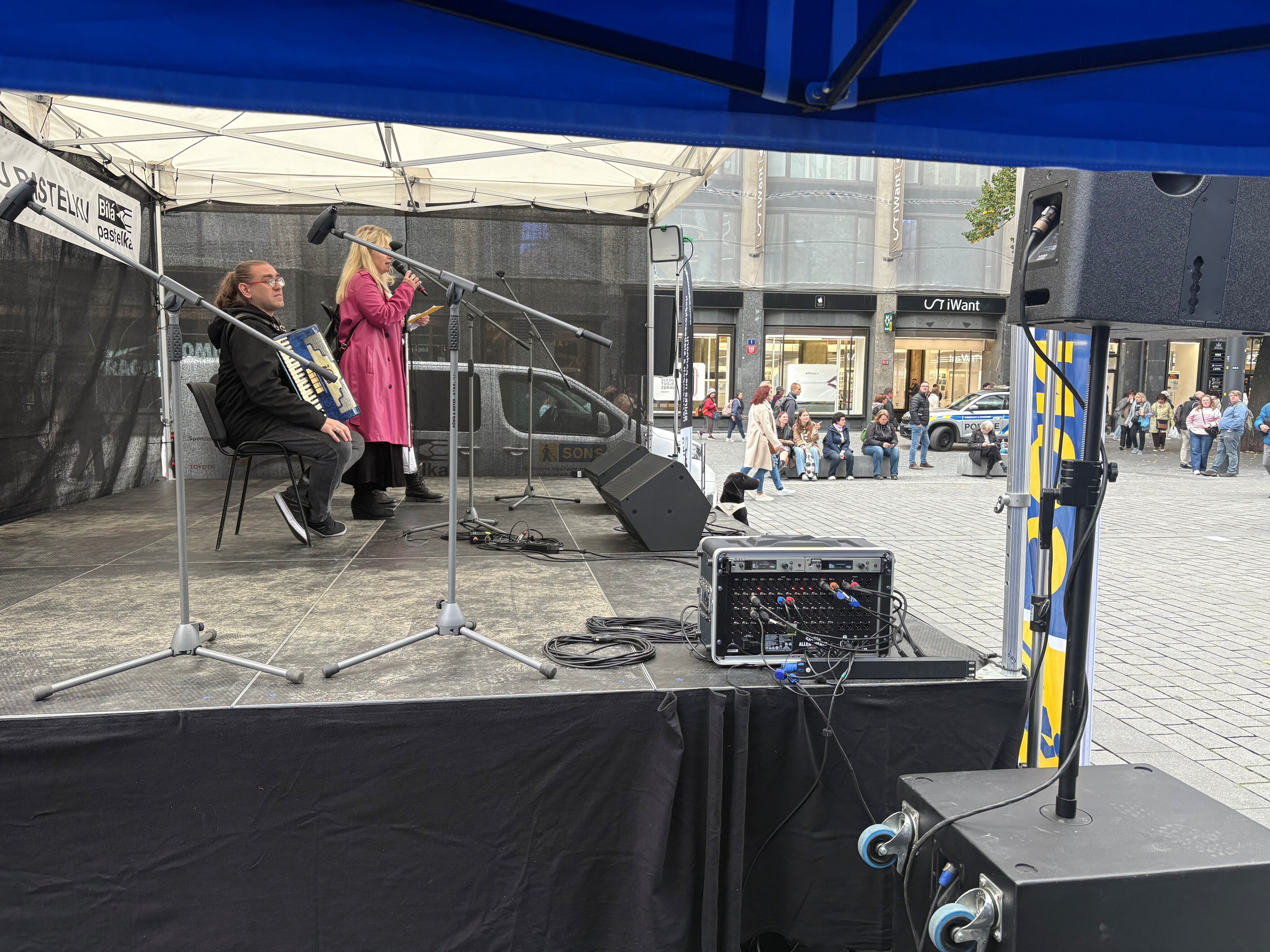Ve dnech 12. až 14. října letos vyvrcholila naše celoroční sbírka na podporu služeb zrakově postiženým Bílá pastelka pouliční sbírkou. V ní se po 247 českých a moravských obcích pohybovalo celkem 3623 dobrovolníků s kasičkami. I já jsem si s kolegyní Lindou Jansovou jako každý rok vyzkoušel několik hodin oslovovat potenciální dárce v ulicích Prahy 13. Zvlášť v sychravém podzimním počasí je to někdy náročné, o to více ale potěší každý dárce, který za pastelku přispěje do sbírkové kasičky na dobrou věc. Třídenní sbírkový maraton pro nás vyvrcholil 14. října v odpoledních hodinách Koncertem pro Bílou pastelku na Václavském náměstí. Na pódiu se vystřídali Ráchel Skleničková, Miroslav Orság, Martin Rous a Xindl X.