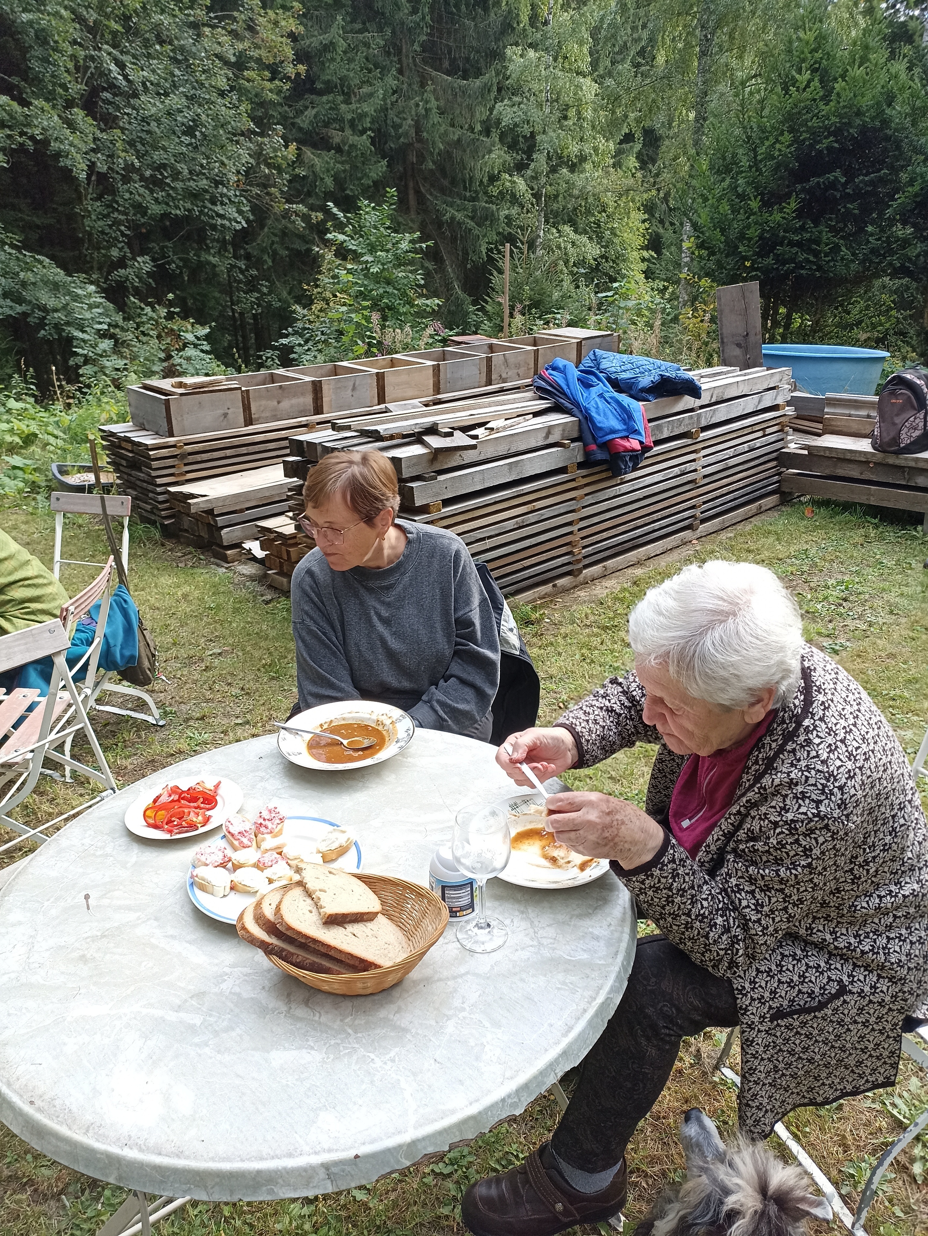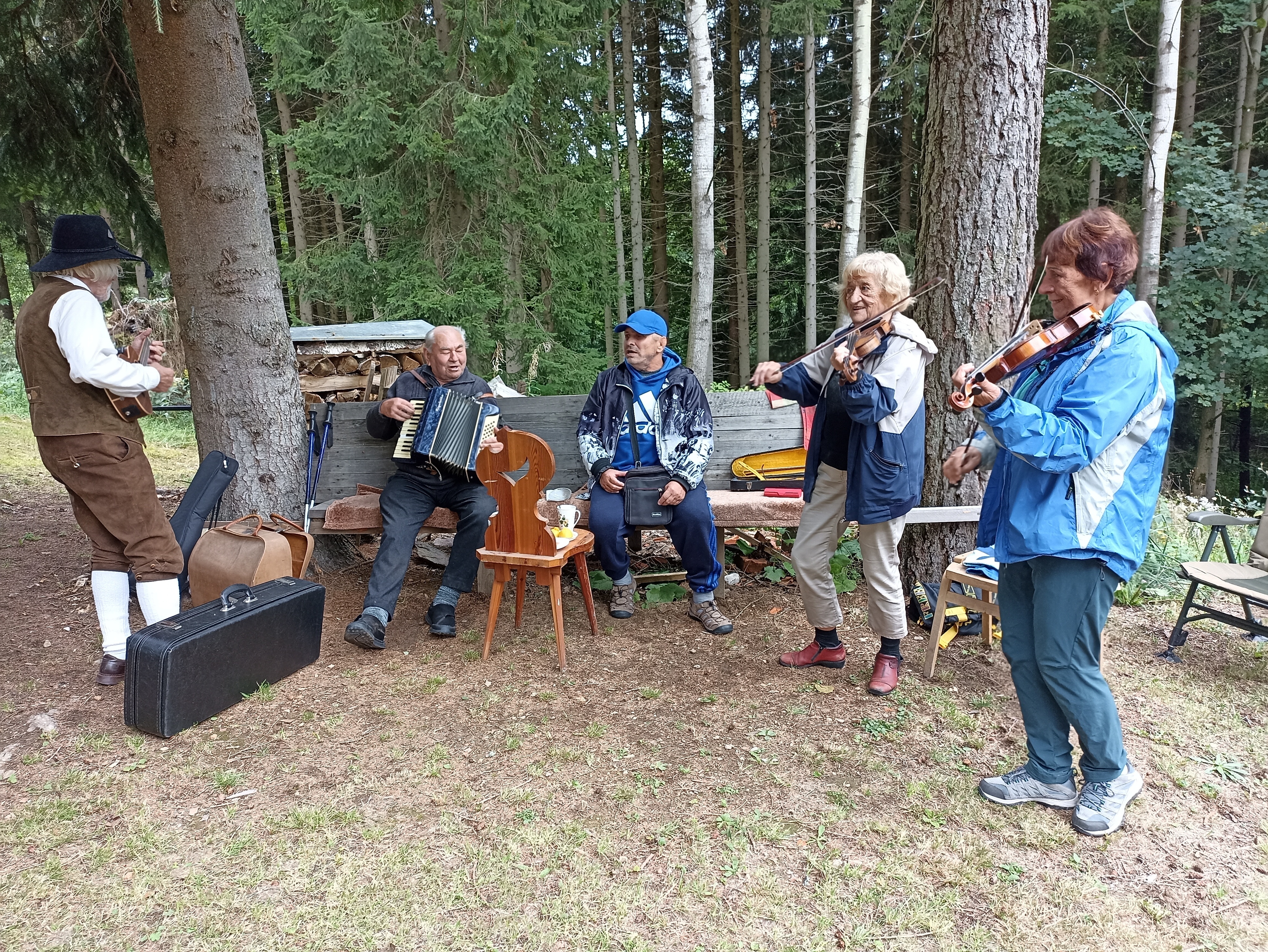 Na stole nechyběl poctivý guláš ani spousta dobrot, které přinesli všichni účastníci. 🎂🍲 O hudební doprovod se postaraly housle, harmonika i dudy – a atmosféra byla doslova kouzelná. 🎶
