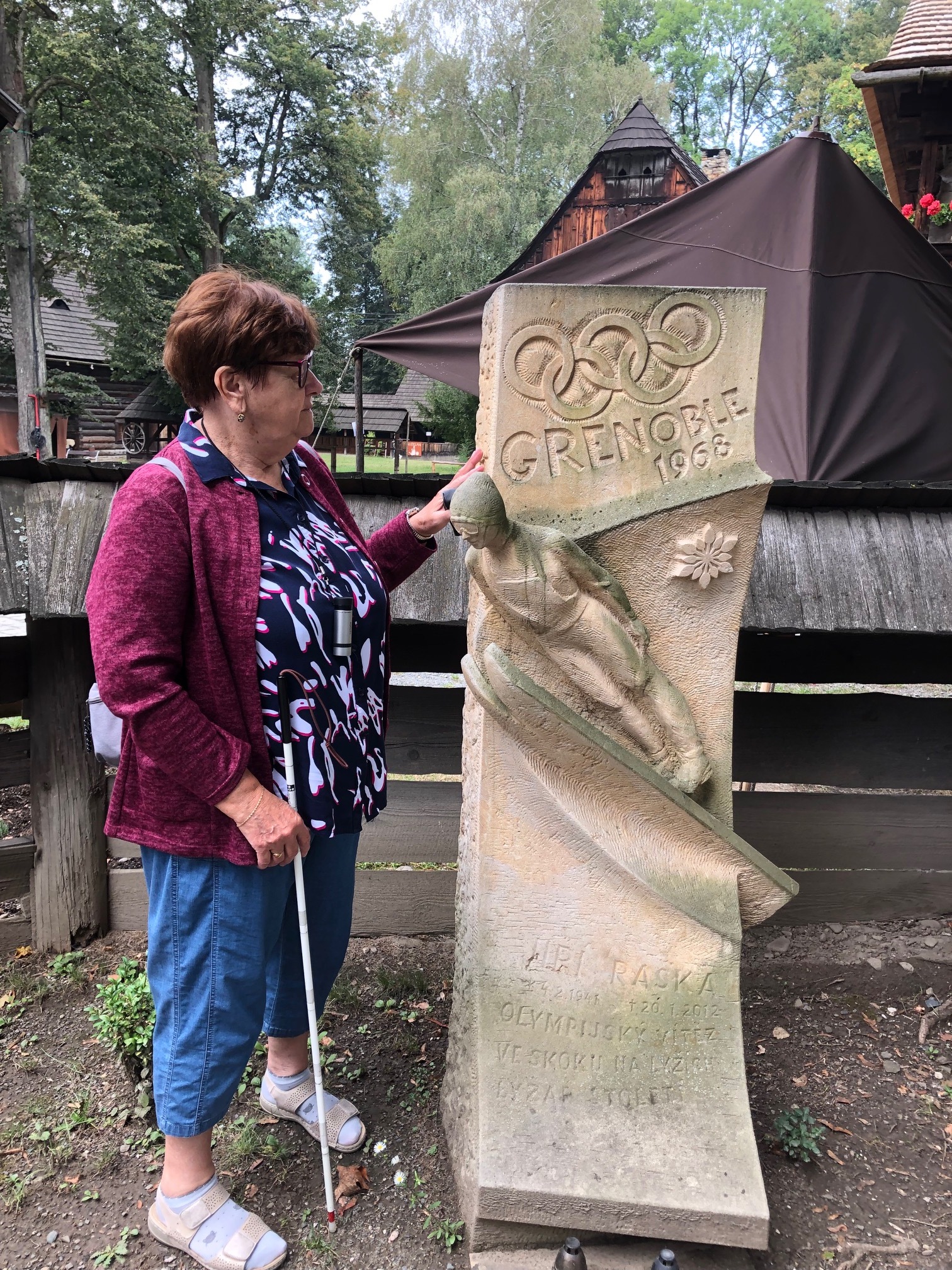 Dne 20.8. jsme se zrakově postiženými uživateli navštívili skanzen v Rožnove pod Radhoštěm, kde jsme si prohlédli "Dřevěné městečko,, které je umístěné v krásném prostředí parku. Prohlédli jsme si chalupy s dobovým vybavením a stará řemesla. Pak jsme pokračovali pěšky po stezce k muzeu a prodejně polodrahokamů, po prohlídce a nákupu jsme se byli před zpáteční cestou posilnit obědem.