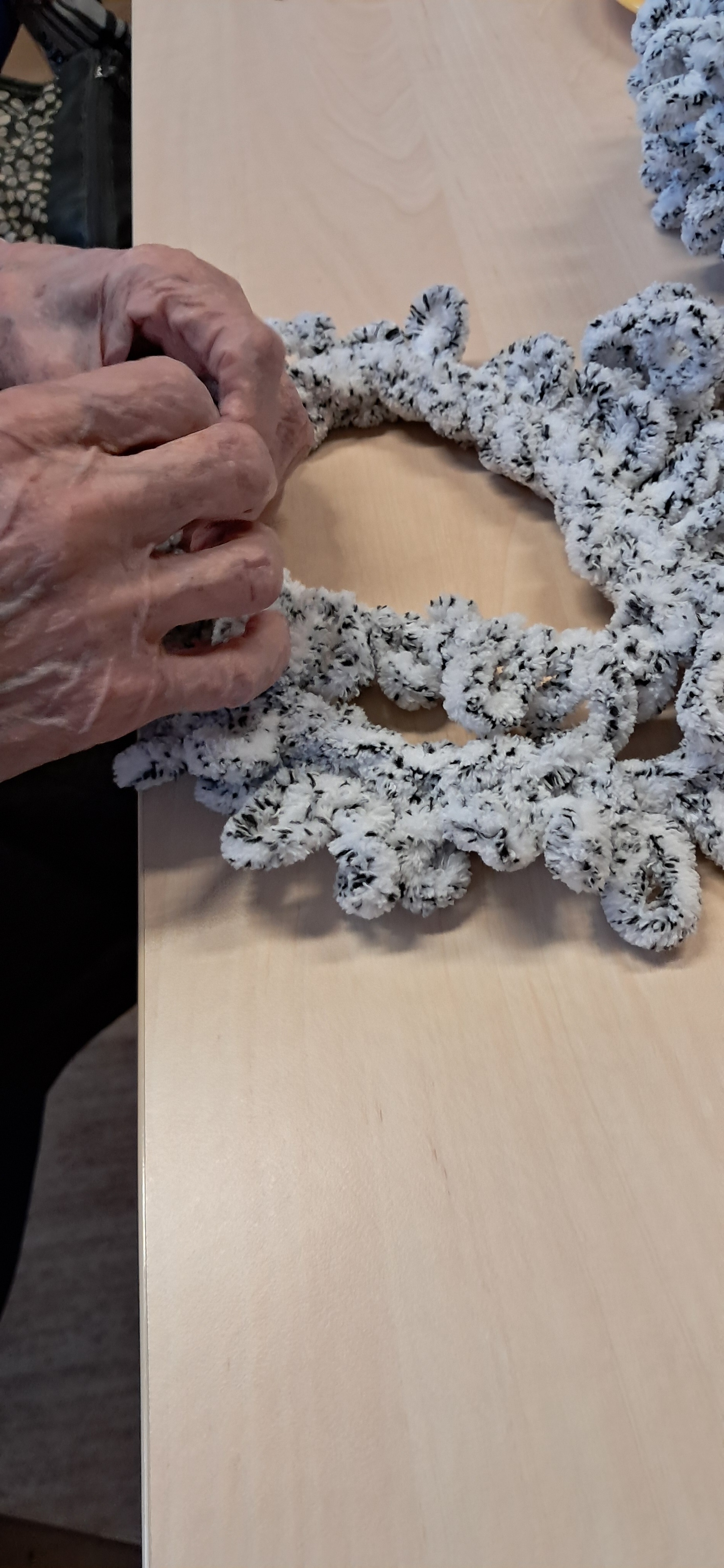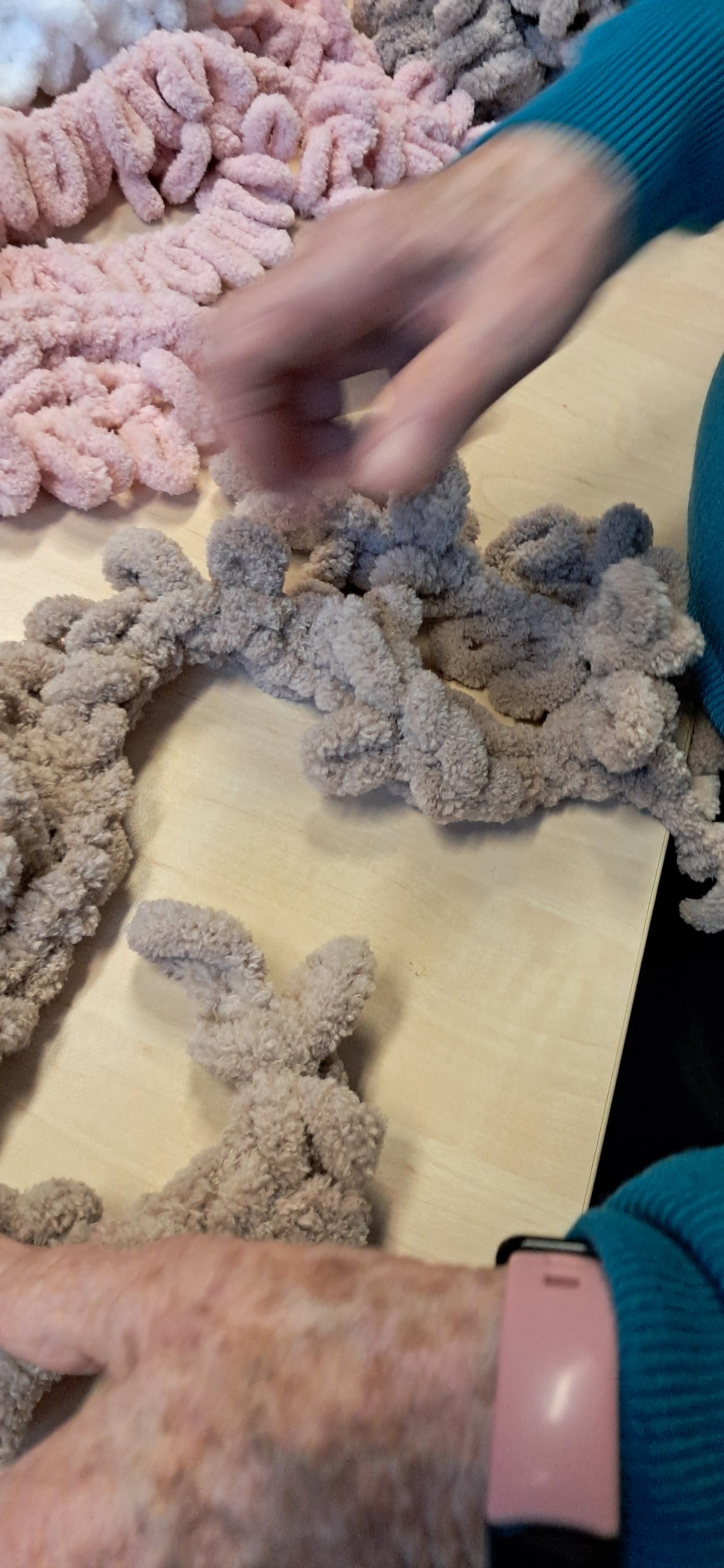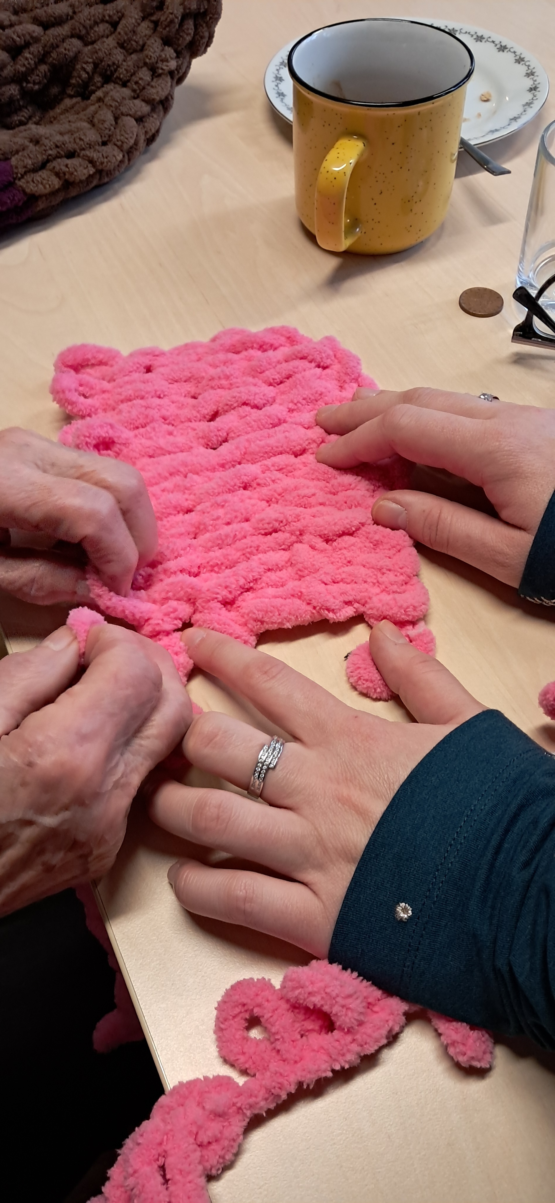Naše členky s radostí přijdou, vyberou barvu a splétají. Jedna chtěla šálu pro vnučku. Jedna něco jako psí obleček, jiná čepici, nebo tašku.