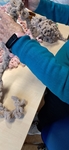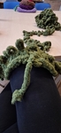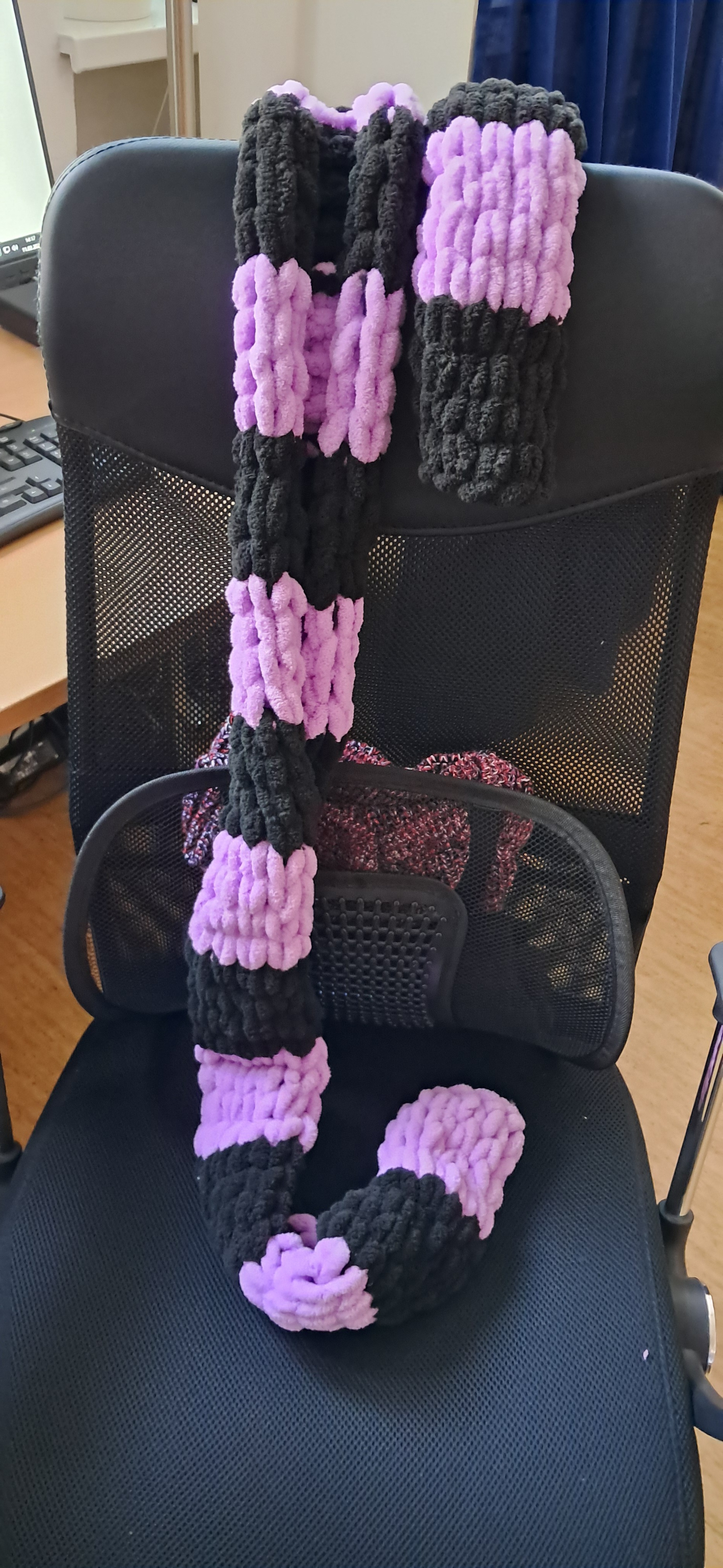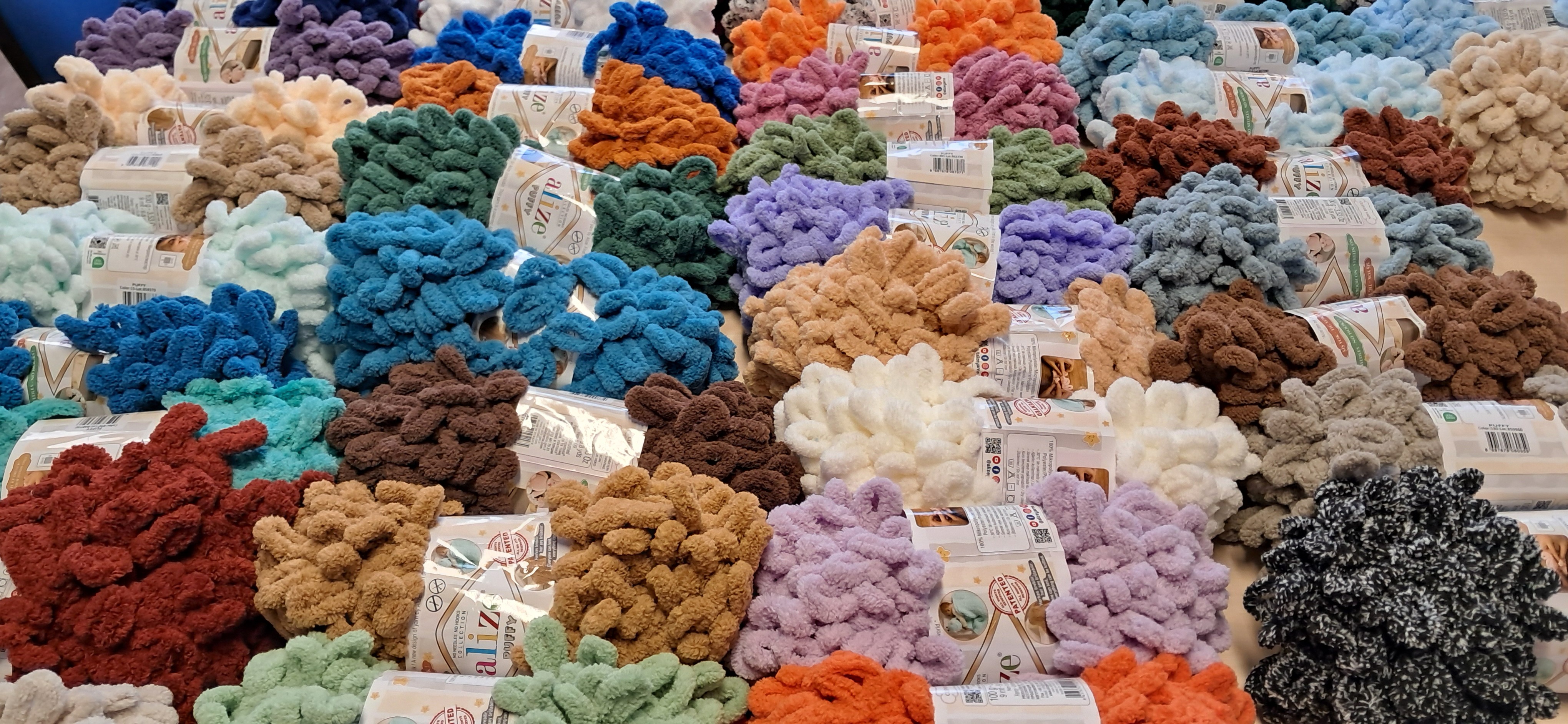 Krátce nato jsme objevili vlnu, tedy umělé vlákno, které už očka obsahuje a práce je s ním lepší. Jen splétáte očka dohromady, ideálně aniž byste některé vynechali. Zaujala nás vlna Alize, která se dá koupit hned v několika variantách (různá velikost oček, nebo dvě barvy v jednom klubku…). Začali jsme s vlnou Alize Puffy, která má velká oka, našli jsme asi osmdesát různých barev a většinu z nich hned vyzkoušeli.