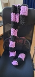 A pak jsme se zbláznili a vyrábíme čepice, čelenky, šály, deky, povlaky na polštářky. Plánujeme ponča a různé přehozy, všechno v několika velikostech. A nejlepší je, že s touto vlnou jde pracovat i poslepu.