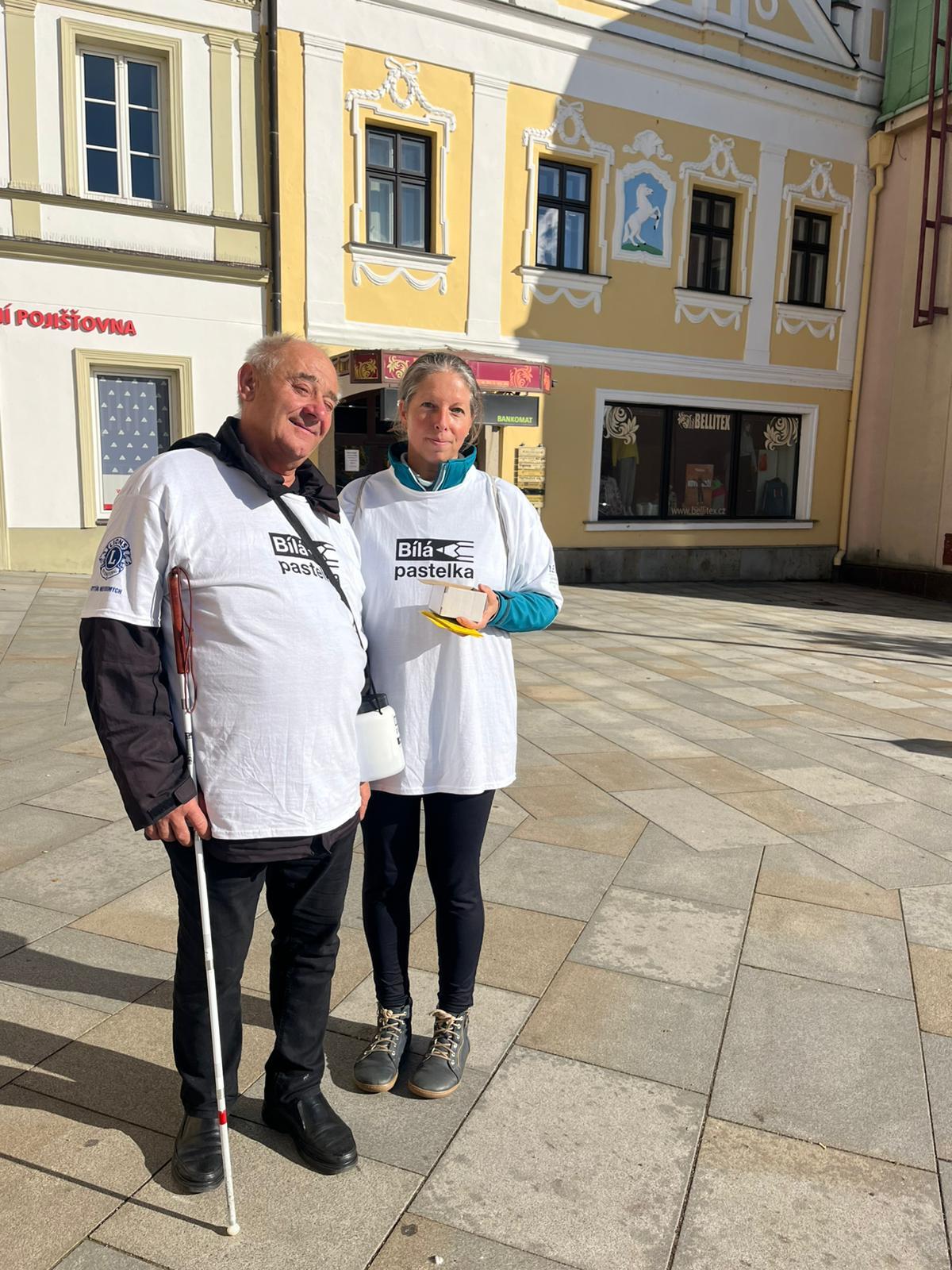 Už několikátým rokem po sobě jsme ráno oblékli bílá trička s logem sbírky Bílá pastelka, vzali krabičku s pastelkami, na papíře natištěná žlutá sluníčka s kontakty a vyšli jsme na náměstí. Počasí nám ze začátku moc nepřálo, tak deštník pro jistotu s sebou! „Dobrý den, přispějete, prosím, na sbírku Bílá pastelka na podporu nevidomých?“ Tuhle větu jsem ten den řekla minimálně pětsetkrát. A víte, co je zajímavé? Vnímat ty odpovědi. Někdo se usměje a beze slova jde dál, další ani pohledem nezavadí. Ale pak potkáte někoho, kdo vám jde naproti a volá, že chce pastelku. Několik lidí nám i řeklo, že slyšeli spot v rádiu a že nás už vyhlíží. Maminky s dětmi, mladí, starší, muži, ženy .. mezi všemi se najdou dobří lidé, kteří přispějí na dobrou věc. Pokladnička pomalu těžkla, nakonec nám v Brodě i vysvitlo slunce a po rozpečetění jsme napočítali přes sedm tisíc korun. Moc děkujeme!