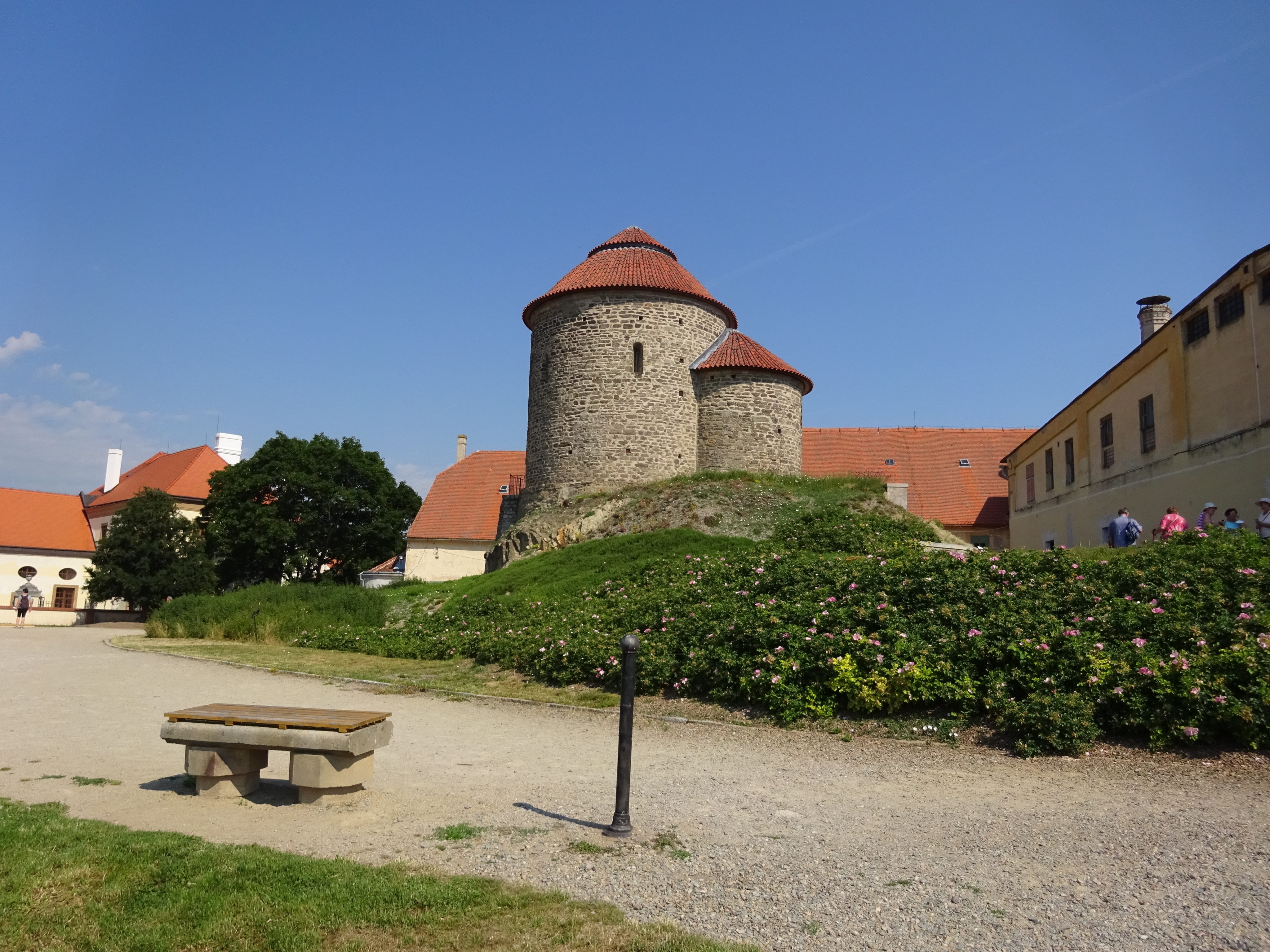 Jako první jsme navštívili rotundu svaté Kateřiny, její hlavní hodnota spočívá v unikátně dochované vnitřní výzdobě. Jde o freskovou výmalbu datovanou k roku 1134 s vyobrazením křesťanských námětů, postav Krista, Panny Marie, apoštolů a cherubínů, unikátní galerie celého rodokmenu přemyslovských vládců a údělných moravských knížat. Tato výjimečná malířská výzdoba přečkala všechny proměny využití kaple (bylo zde skladiště, nálevna s tančírnou, košíkářská dílna a snad i prasečí chlívek) nám byla zprostředkována pouze na zvukovém nosiči, poněvadž se zde musí dodržovat speciální návštěvnický režim v závislosti na aktuálním stavu mikroklimatu v interiéru, tudíž se zde nesmí mluvit a vpuštěno dovnitř může být maximálně 10 osob v průběhu 1 hodiny. Prohlídka nesmí trvá déle jak 15 minut.