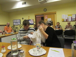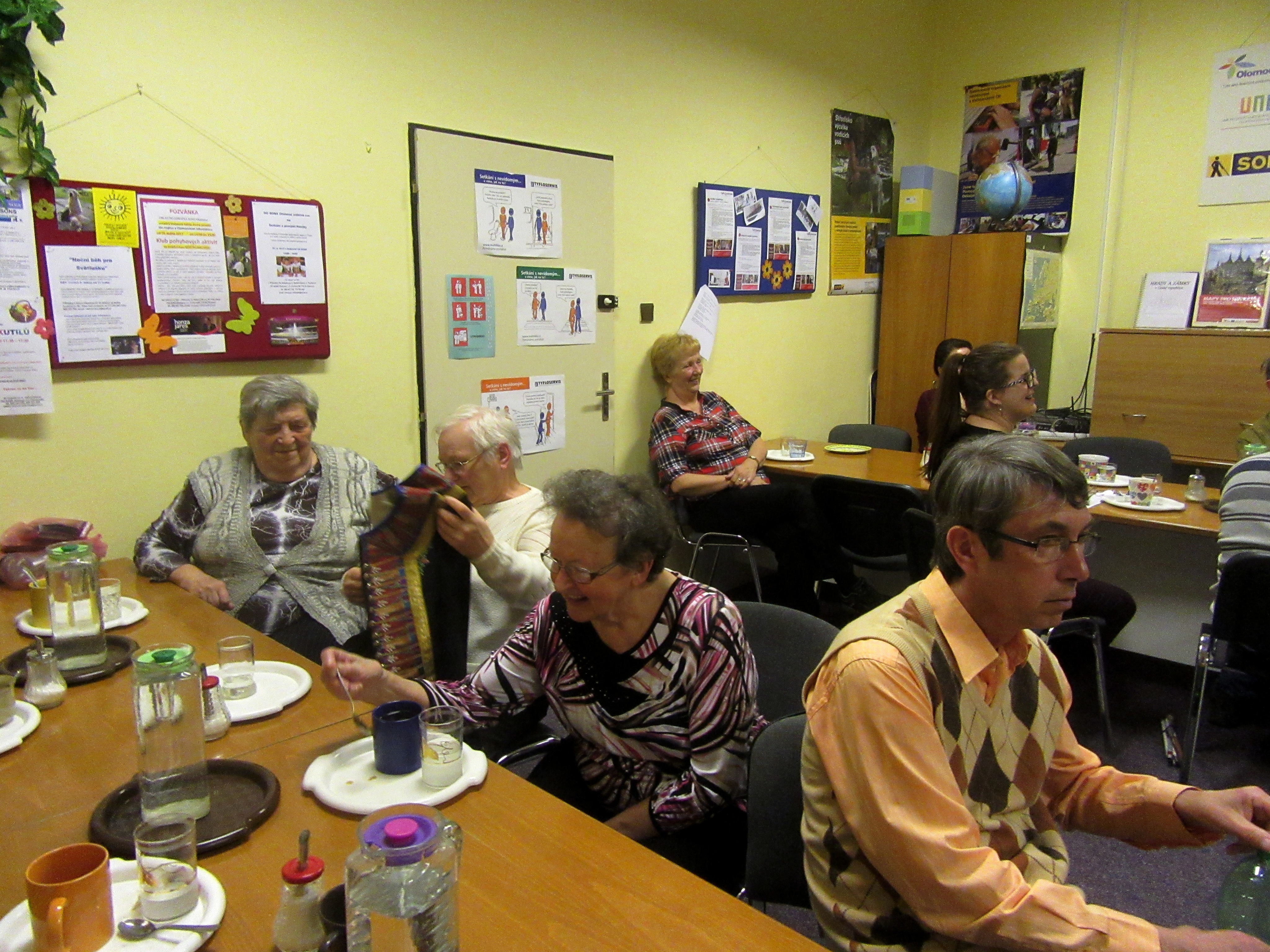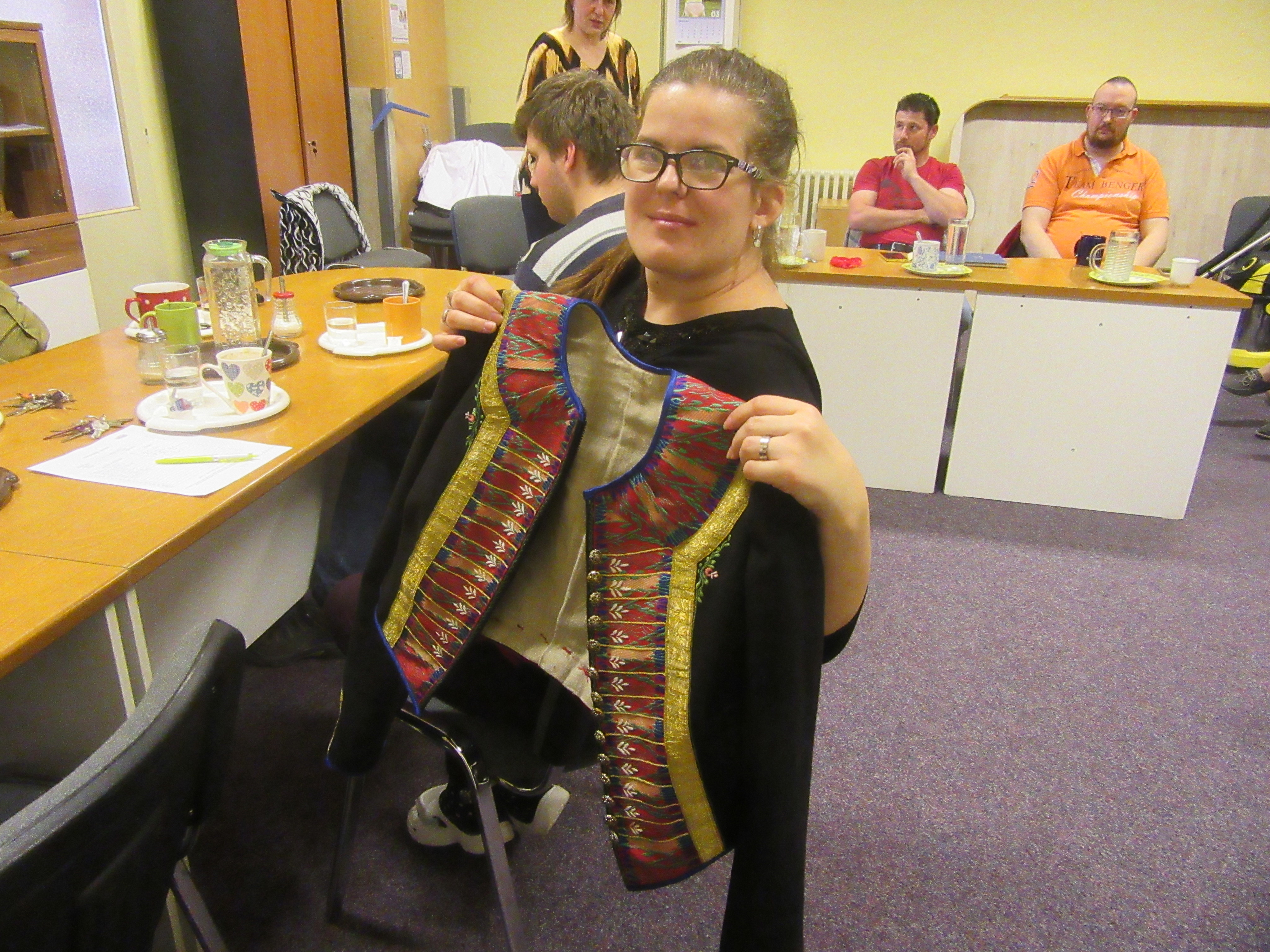 Paní Hana nám ukazovala a popisovala hanácký kroj, který je opravdu krásný a málokdo ho zná. Mluvila o celkové historii a změnách vzhledu hanáckých krojů, o náročnosti výroby, cenové relaci aj. Pánové pak připojili další vyprávění související s oblasti Hané a hanáčtinou jako takovou a dokonce zazněly i tóny hanáckých písniček, které si i naši členové rádi zazpívali. Nechyběla ani ochutnávka pravých hanáckých koláčků.