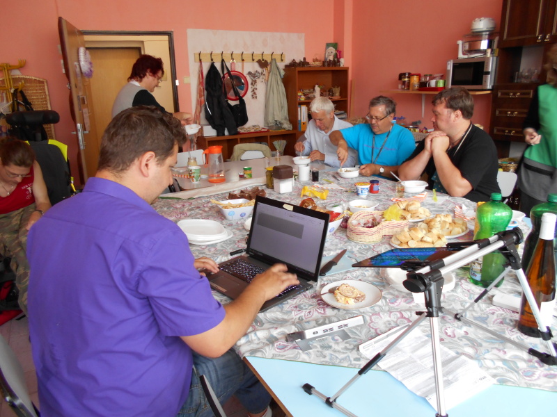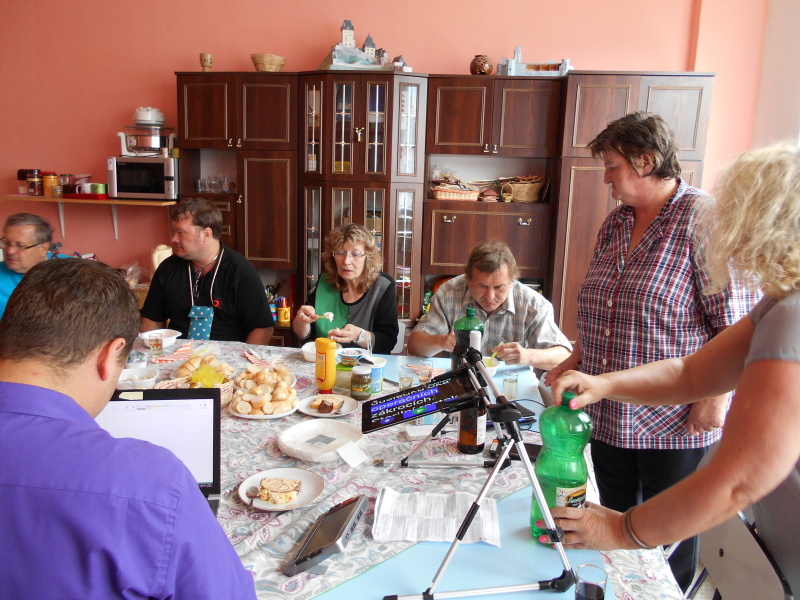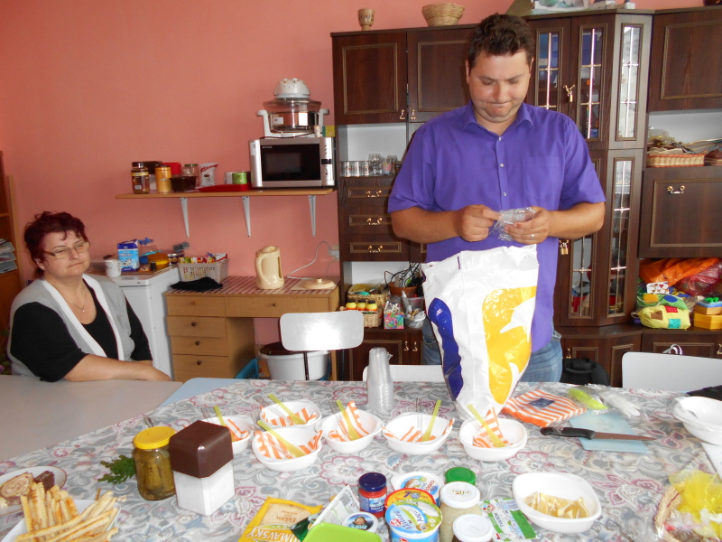 V ÚTERÝ 12. ČERVENCE ZA NÁMI PŘIJEL PAN JAROSLAV KAVAN, KTERÝ NÁS NAVŠTÍVIL ZA FIRMU ADAPTEC H. UDĚLALI JSME SI KRÁSNÉ DOPOLEDNE. NEJDŘÍVE SE PAN KAVAN VĚNOVAL MANŽELŮM MACÍKOVÝM A DALŠÍM ZÁJEMCŮM KVŮLI INFORMACÍM O POMŮCKÁCH PRO NS, POTÉ NÁSLEDOVAL PROGRAM ZAMĚŘENÝ JEDNAK NA POMŮCKY FIRMY ADAPTECH A HNED POTÉ SOUTĚŽ V TVORBĚ POMAZÁNEK, KTERÁ NÁS VŠECHNY ZAUJALA A NÁLEŽITĚ INSPIROVALA. PAN KAVAN NÁM ROZDAL JOGURT, SMETANU, MÁSLO A RŮZNÉ DALŠIÍ POTRAVINY A POTÉ BYLO VYBRÁNO ŠEST SOUTĚŽÍCÍCH. POD RUKAMA NÁM ZAČALY VZNIKAT POMAZÁNKY ROZTODIVNÝCH, ALE VELMI ORIGINÁLNÍCH CHUTÍ. PŘESTOŽE JSME MĚLI NĚKOLIK INGREDIENCÍ, KAŽDÁ POMAZÁNKA BYLA ORIGINÁLNÍ A KAŽDÁ NÁS OSLOVILA. VÍTĚZKA VLAĎKA MRŇKOVÁ VYHRÁLA KE SVÉMU VELKÉMU PŘEKVAPENÍ PRO NAŠE SONSÁČKY LÁHEV VÍNA SOVÍN. MYSLÍM, ŽE MOHU ZA VŠECHNY ŘÍCT, ŽE SE DOPOLEDNE SKUTEČNĚ PODAŘILO A VŠEM ZÚČASTNĚNÝM UDĚLALO VELKOU RADOST.