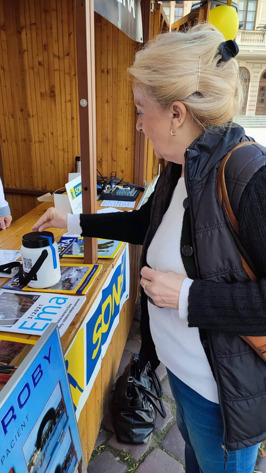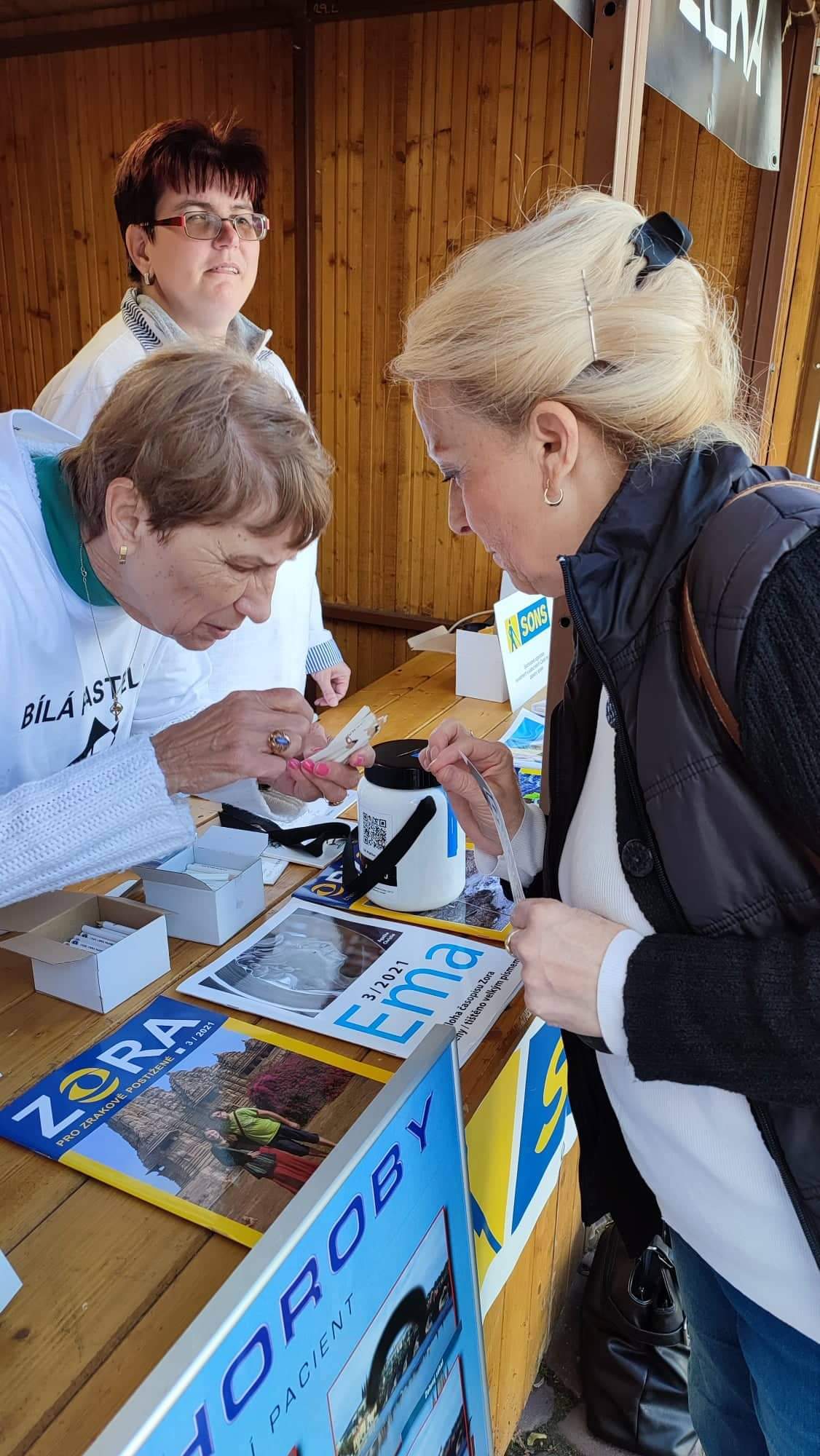 Na fotografiích je stánek umístěný na Horním náměstí v Opavě s našimi dobrovolnicemi a dárci.