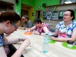 A tak když nastanou horké letní dny, je to přímá výzva k přípravě osvěžující pochoutky s ovocem. Pro naše výtvarníky není žádný problém vyměnit tvárnou hlínu za kuchyňské náčiní a připravit si letní osvěžující dobrotu. Někteří krájí, někteří šlehají, někteří servírují. Všichni pracovali, všichni si smlsli.
