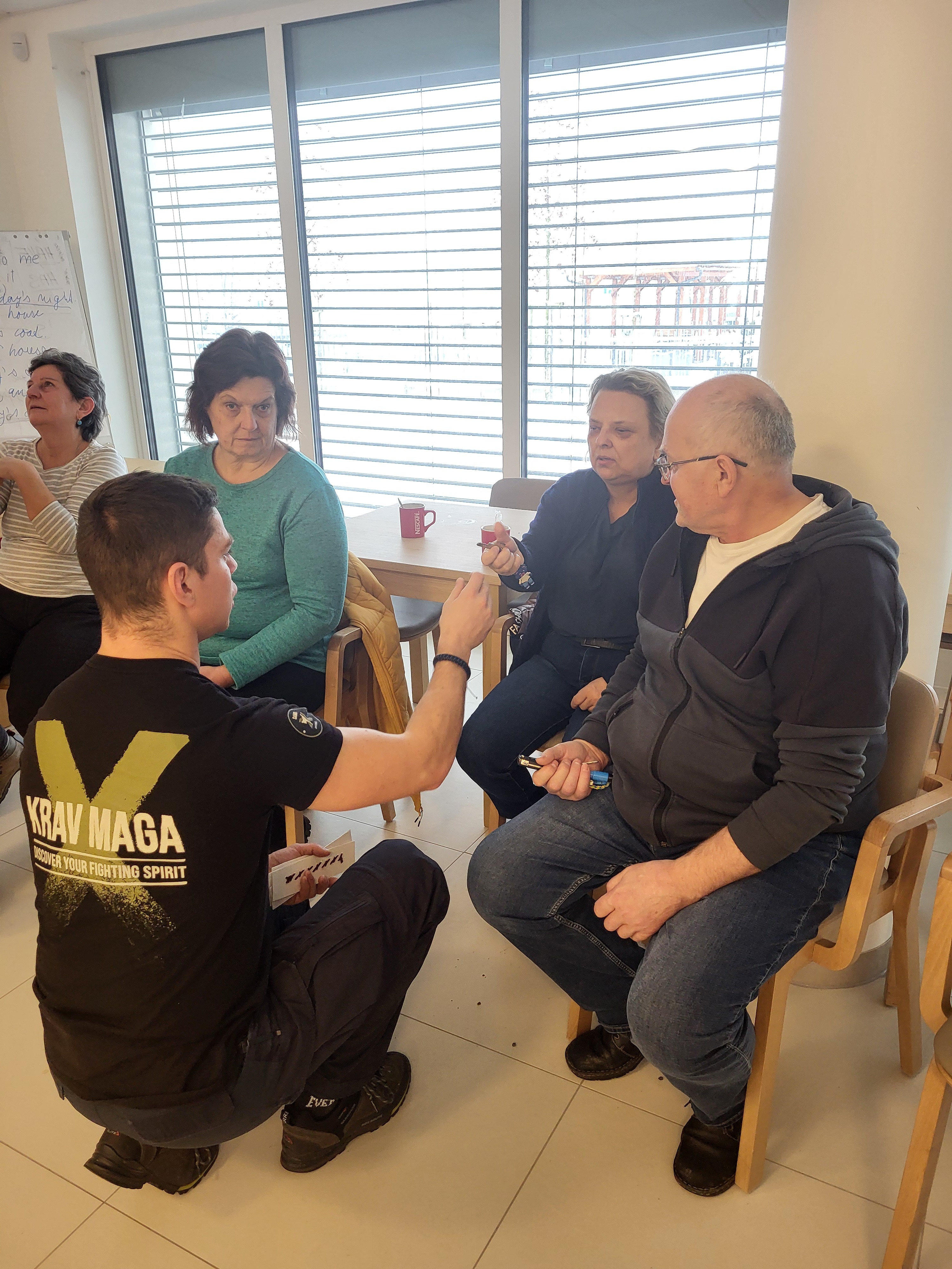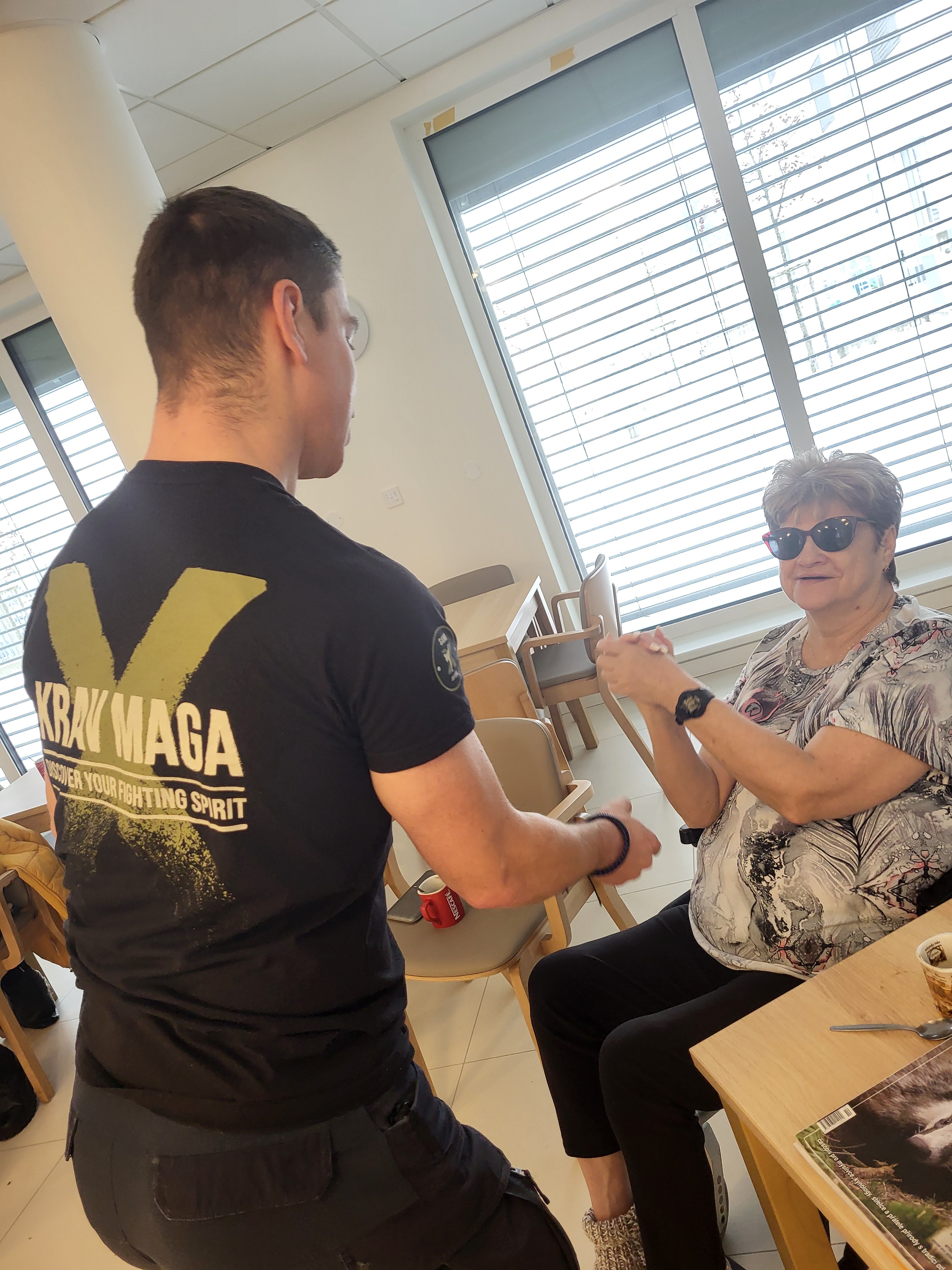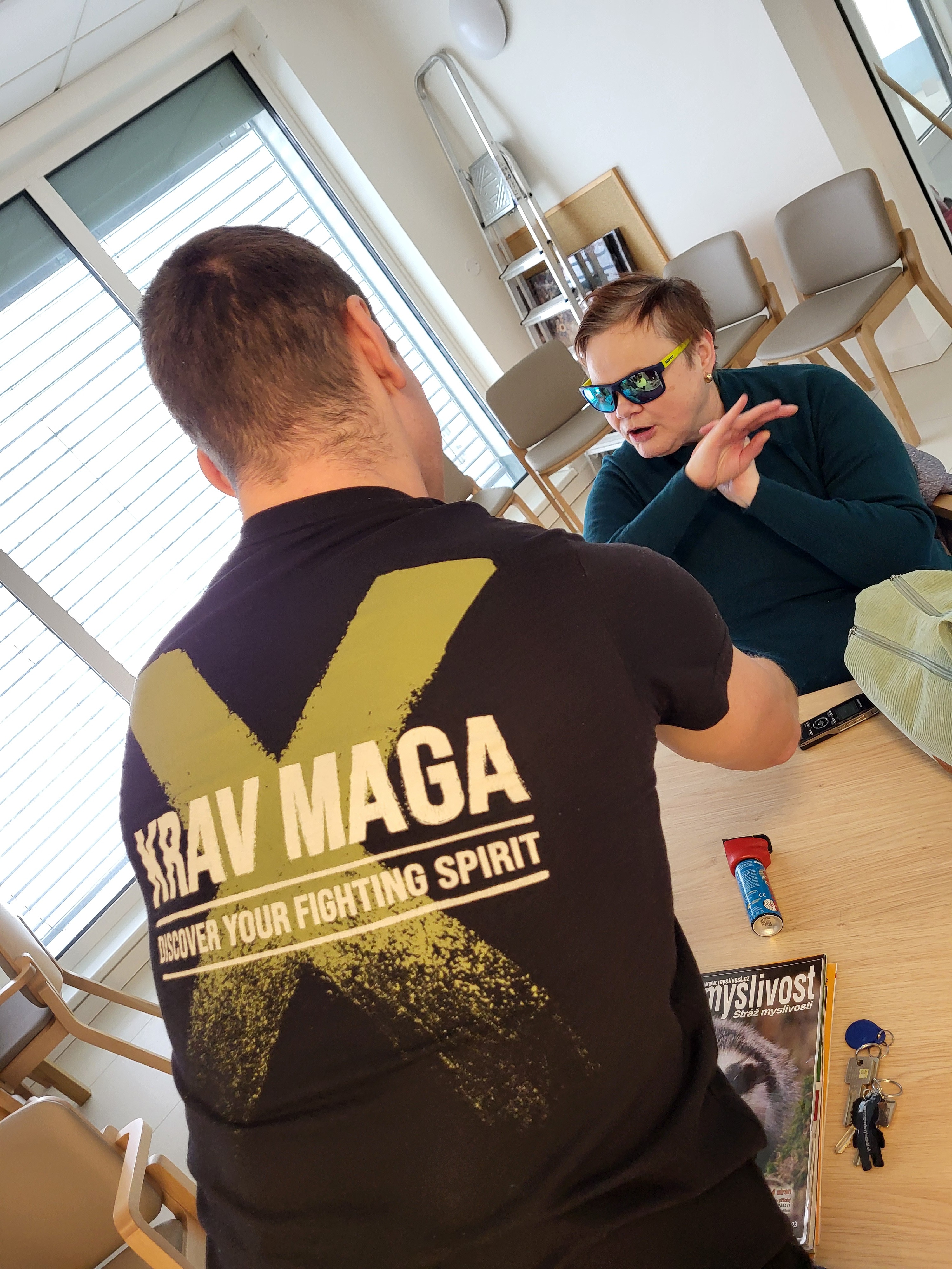 Ve spolupráci s KRAVA MAGA České Budějovice a za finanční podpory města Sezimovo Ústí jsme pro naše uživatele připravili seminář o sebeobraně a osobní bezpečnosti, který byl přizpůsobený právě osobám se zrakovým postižením. Někteří byli ze začátku skeptičtí, že jako nevidomí nemají šanci se bránit či zneškodnit případného útočníka. Během semináře však pochopili a poznali, že to není pravda. Vše začíná u předcházení nebezpečných situací a poslouchání svého vnitřního hlasu. Rozhodně nepůjdu do rizikového prostředí sám nebo sama a to v noční hodinu. A pokud cítím, že něco není v pořádku, nebudu tento pocit potlačovat. Dále nastupuje komunikace. Dozvěděli jsme se, jak pracovat s hlasem a že vykat je rozhodně lepší než tykat - "Pane, puste mne!" je věta, která případným svědkům ukazuje, že se nejedná o žádného známého a nejspíš potřebuji pomoct. Naopak při tykání by si kolemjdoucí často mohli říct, že se jedná o rozepři mezi známými a v tom případě by do toho většina z cizích lidí nezasahovala. Pak jsme si ukázali a vyzkoušeli základní chvaty pro nechtěné držení rukou, které nám pomohou se alespoň na chvilku vymanit a získat čas. Zjistili, jaké jsou mýtusy a co naopak může být naší "zbraní", když už půjde do tuhého. A pak přišel pepřový sprej - cvičný samozřejmě. Vysvětlili jsme si, jak ho použivat a vyzkoušeli si s ním manipulovat. A jak to celé dopadlo? Zjistili jsme, že i zcela nevidomý člověk dokáže zasáhnout nepřítele. Moc děkujeme za tento přínosný seminář a všem přejeme, aby se nikdy nemuseli bránit a pepřový sprej použít.