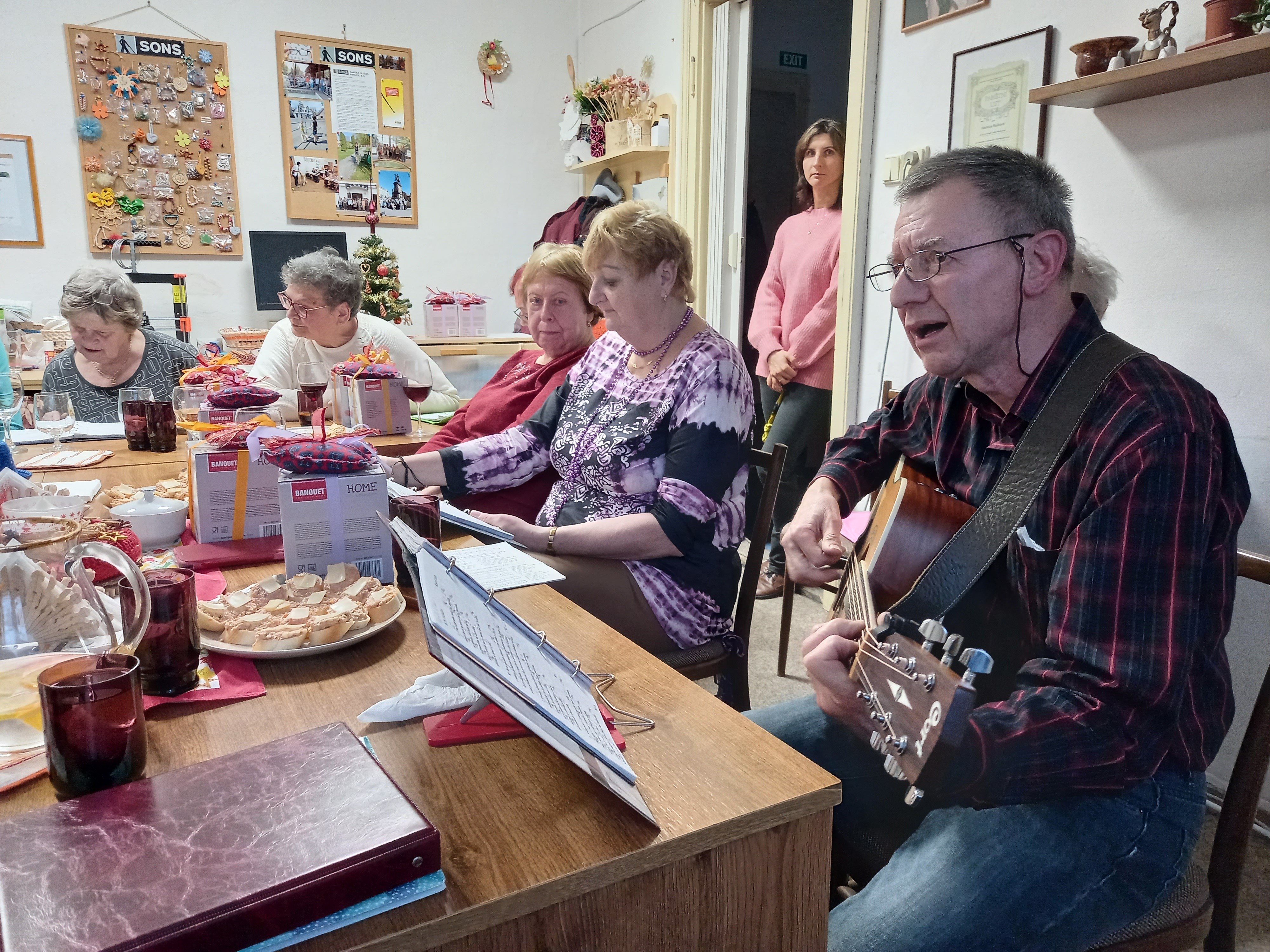 Slavnostní setkání připadlo na pondělí 9. prosince a zúčastnilo se 15 oslavenců společně s pracovníky odbočky zajišťujících program. Ten byl velmi pestrý a věříme, že všechny jubilanty potěšil. Setkání začalo uvítáním oslavenců, přáním všeho dobrého a připíjelo se na zdraví. Atmosféra v místnosti byla velmi příjemná a uvolněná. To všem dodalo odvahu popovídat o svém životě a jeho významných milnících. Nechybělo ani bohaté občerstvení, předávání dárečků a nakonec dorazil i pozvaný host pan doktor Schlemmer, který se postaral o zpestření programu hudbou. Tóny kytary a známé odrhovačky rozezpívaly i zapřísáhlé nezpěváky.