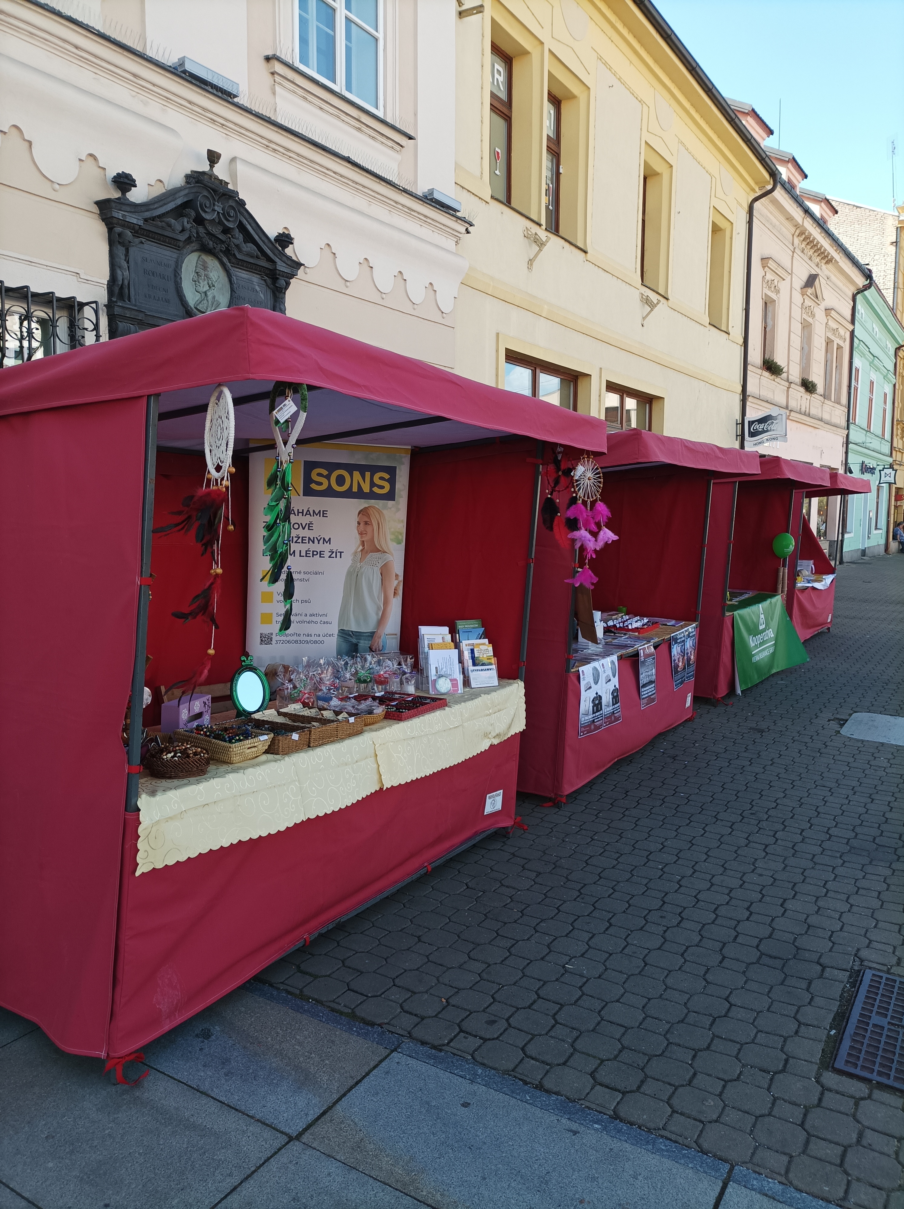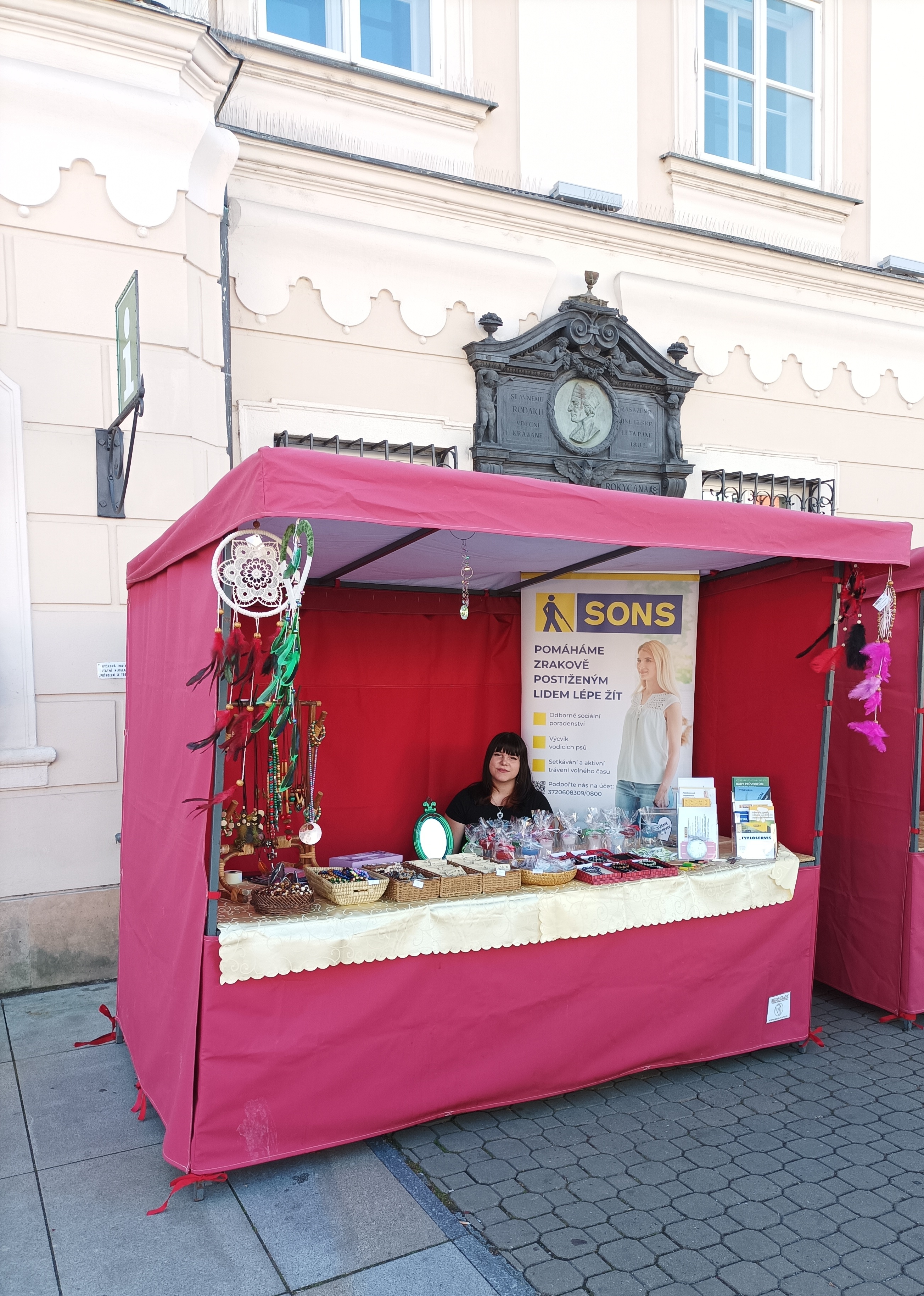 Slunečná sobota v Rokycanech přinesla nejen pestrý jarmareční ruch, ale také příležitost k setkání s přáteli a známými. Pod rokycanskou věží jsme se letos opět představili se stánkem SONS, kde nechyběly rukodělné výrobky, šperky, drobné dárky ani informační materiály o naší činnosti.
