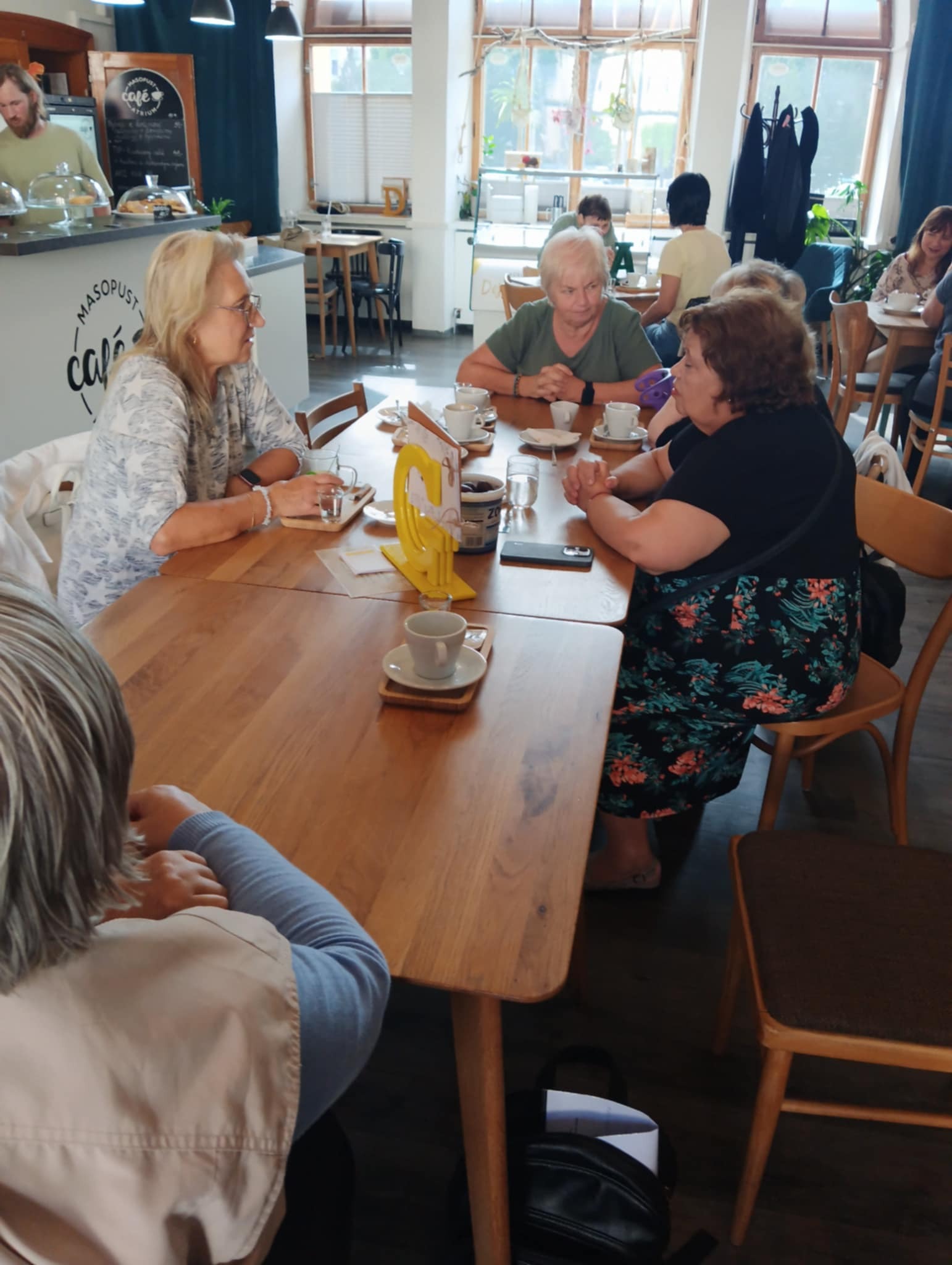 Sešli jsme na společném setkání v kavárně Café Atrium v Chomutově a u dobré kávy jsme si vyprávěli zážitky z léta. Také jsme se prošli po náměstí a podívali se do kostela sv. Ignáce , kam se po letech vrátily dva oltářní obrazy. Něktřeří z členů klubu jsou ještě na dovolené a tak se těšíme, až se opět sejdeme ještě ve větším počtu.