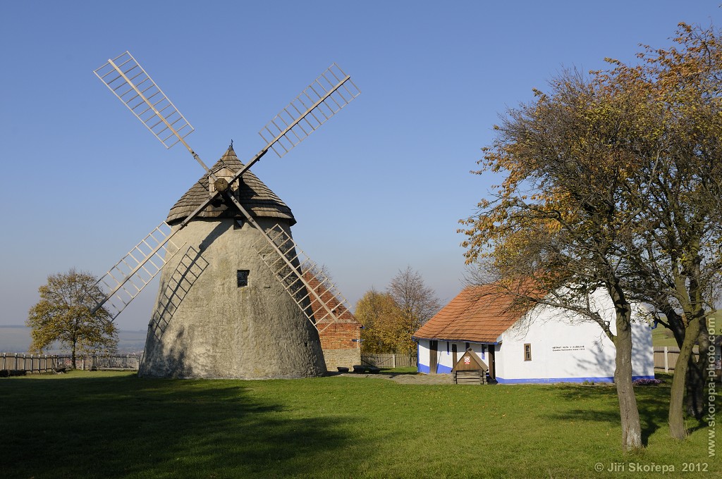 Je jedním z mála dodnes zachovalých větrných mlýnů tzv. holandského typu. Byl pravděpodobně postaven v roce 1842 a více než sto let sloužil zemědělcům z Kuželova, Hrubé Vrbky a dalších vesnic. Celý areál je ponechán v původním prostředí s téměř zachovanou původní architekturou umožňující ukázkový provoz. V přilehlých obytných a hospodářských budovách je vystaven soubor zemědělského nářadí a různých nástrojů používaných k údržbě strojního zařízení mlýna, kterou většinou prováděl sám mlynář.