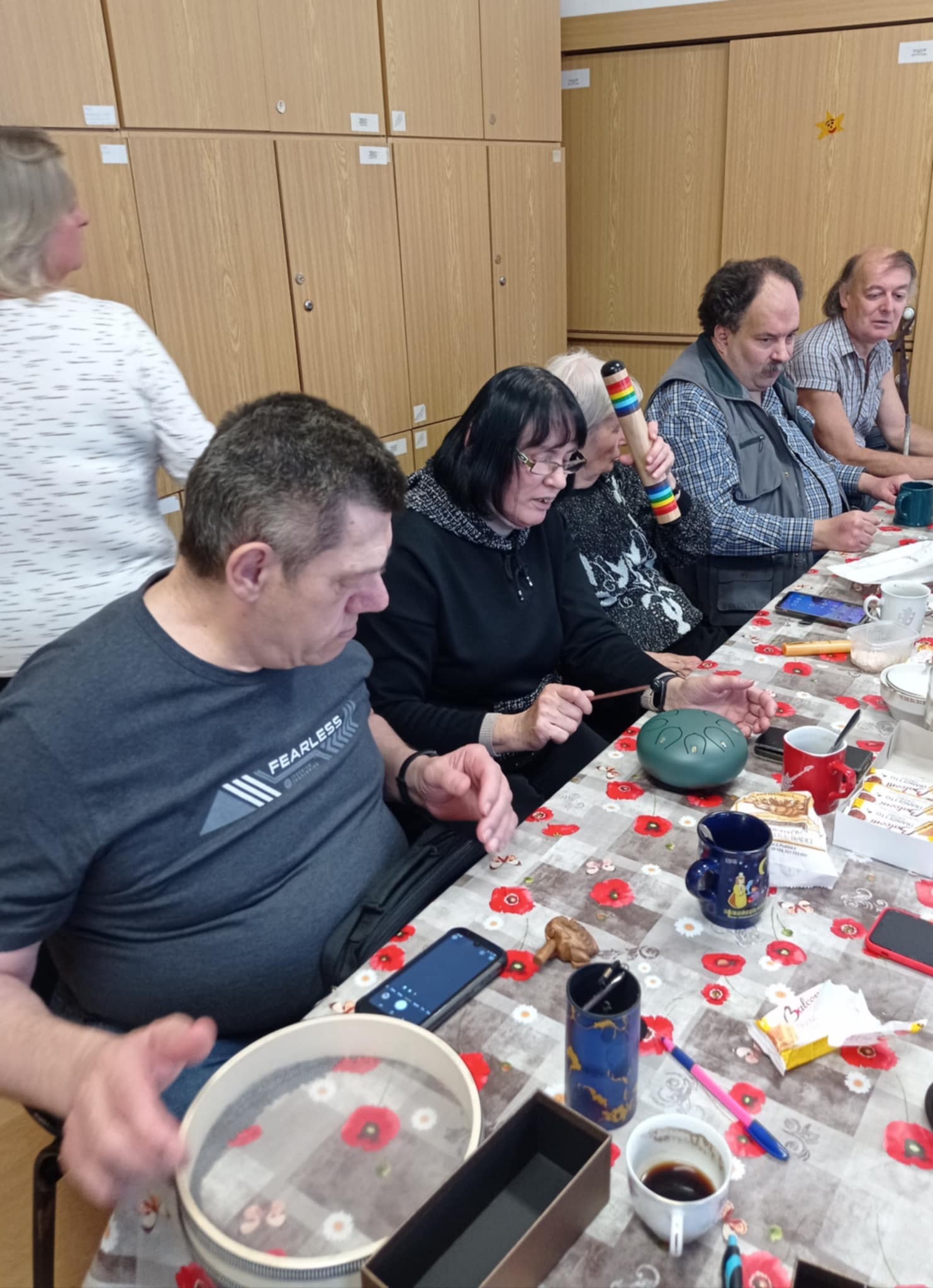 Na pondělní schůzce pobočky Kolín jsme se zaměřili na muzikoterapii. Povídali jsme si o tom, co to je a poslechli si audio ukázky. Také jsme si vyzkoušeli různé nástroje a proběhlo neplánovaně i zpívání do mikrofonu :-)