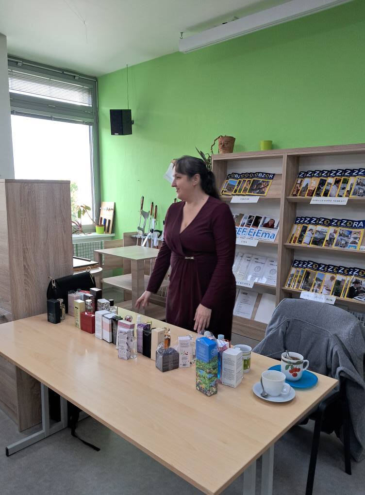 Bylo nám vysvětleno, jaké jsou rozdíly mezi jednotlivými druhy, jaké je jejich složení a co způsobuje, že každý voní trochu jinak. Paní Fridríšková s sebou měla spoustu vzorků, která nám nechala kolovat a které jsme mohli vyzkoušet. Opět jsme mohli prožít jedinečný zážitek.