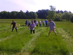 V sobotu 28. 5. 2016 jsme jeli na naše oblíbené místo do Horní Světlé na Myslivny, kde tentokrát probíhala akce „Slavnosti lužickohorských luk“. Jeli jsme se záměrem podívat se na vernisáž fotografií a výtvarných děl na téma „Hmyz v Lužických horách“ a na jarmark spojený s touto akcí, ale při vyhlašování zápisu do soutěžních družstev jsme neodolali a přihlásili se i do soutěžního klání. Kapitánem družstva byla Lída Chalupová a dalšími soutěžícími byli Vlasta Reichertová, Ester Doležalová, Roman Vaněk, Vít Vaněk a Milada Medřická, která spolusoutěžícím vždy dobře poradila. V první soutěži získala Lída s převahou a jako jediná plný počet bodů za kvalitně posečený trávník kosou, ale za rychlost kosení nula bodů a dodala k tomu, že je zvyklá pracovat podle svého tempa, ale zato vždy kvalitně. Kosení trávy si vyzkoušel i nevidomý Roman, kterého ostatní soutěžící srdečně povzbuzovali. Následovaly další úkoly: závod s trakařem – dvojice Lída a Vítek, chytání ryb – Vítek, určování rostlin – Milada a Vlasta, květinová vazba z lučního kvítí – Ester, Vlasta, Milada a třídění semen hrachu, čočky a pohanky – Lída.