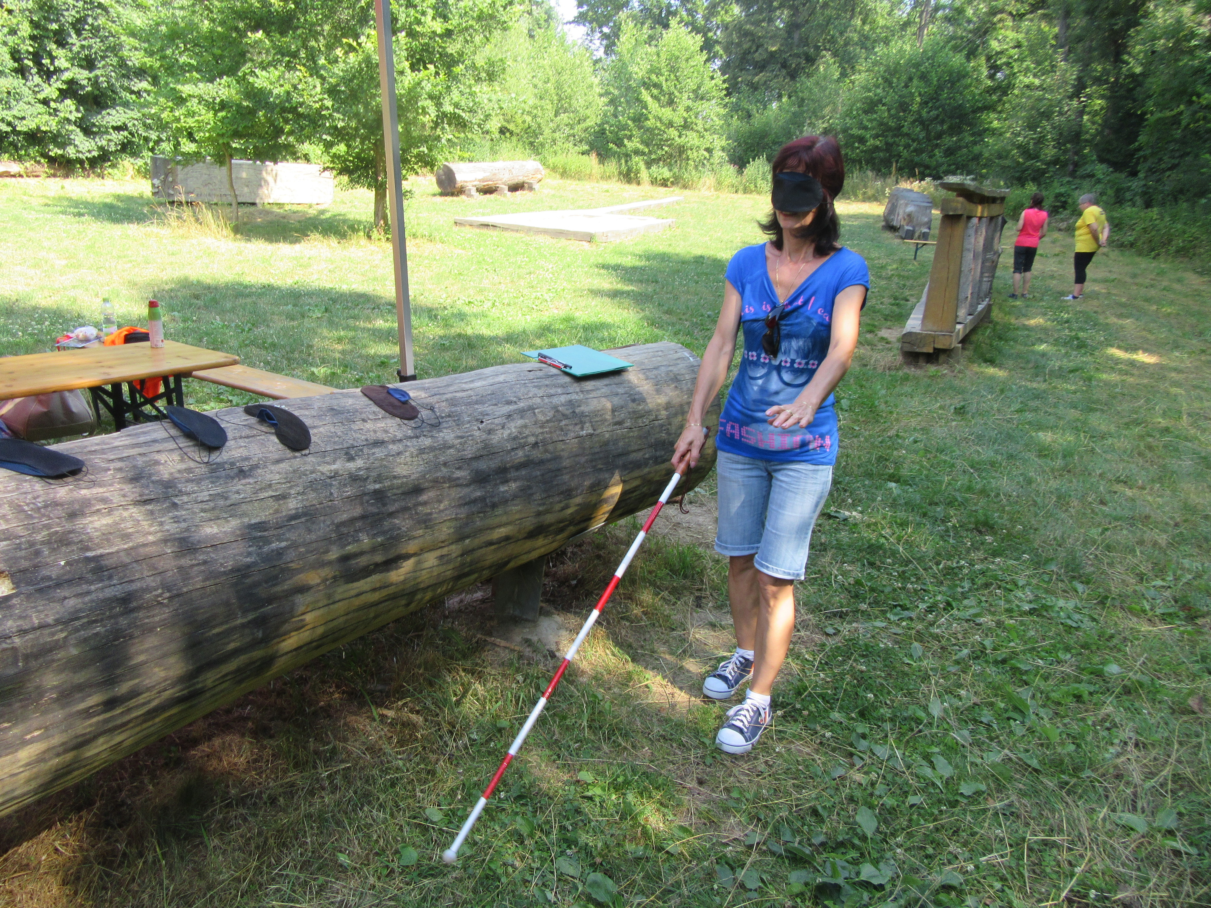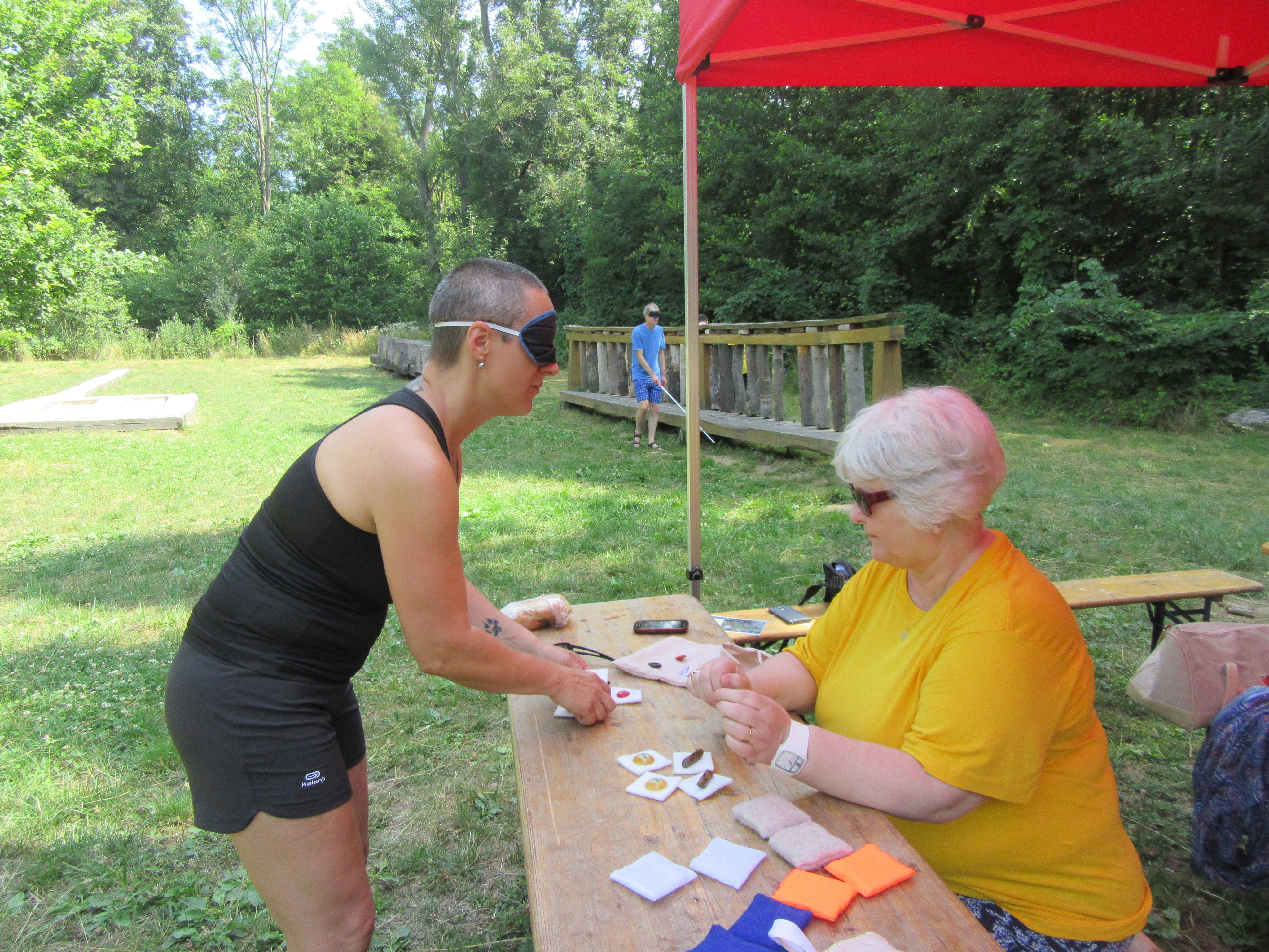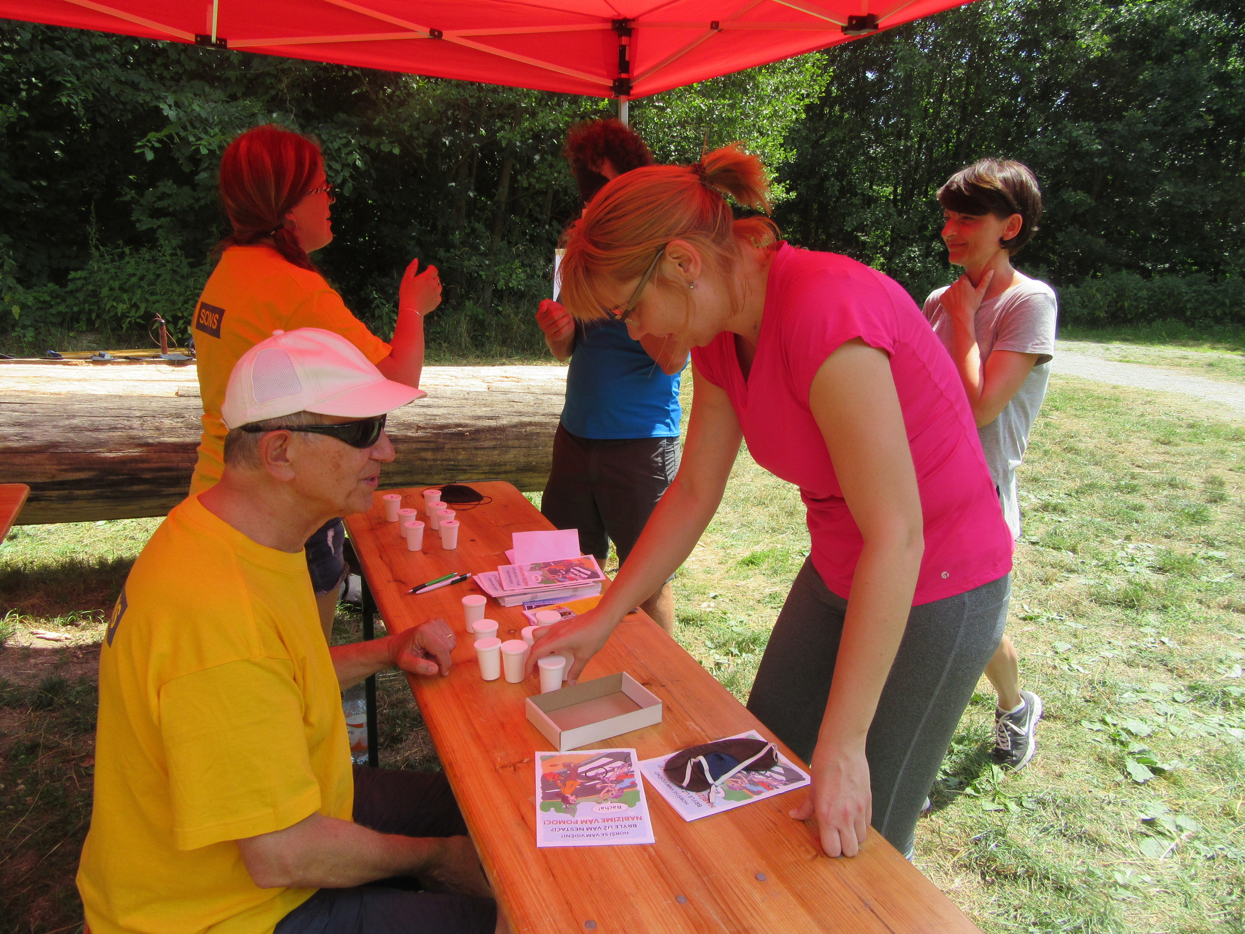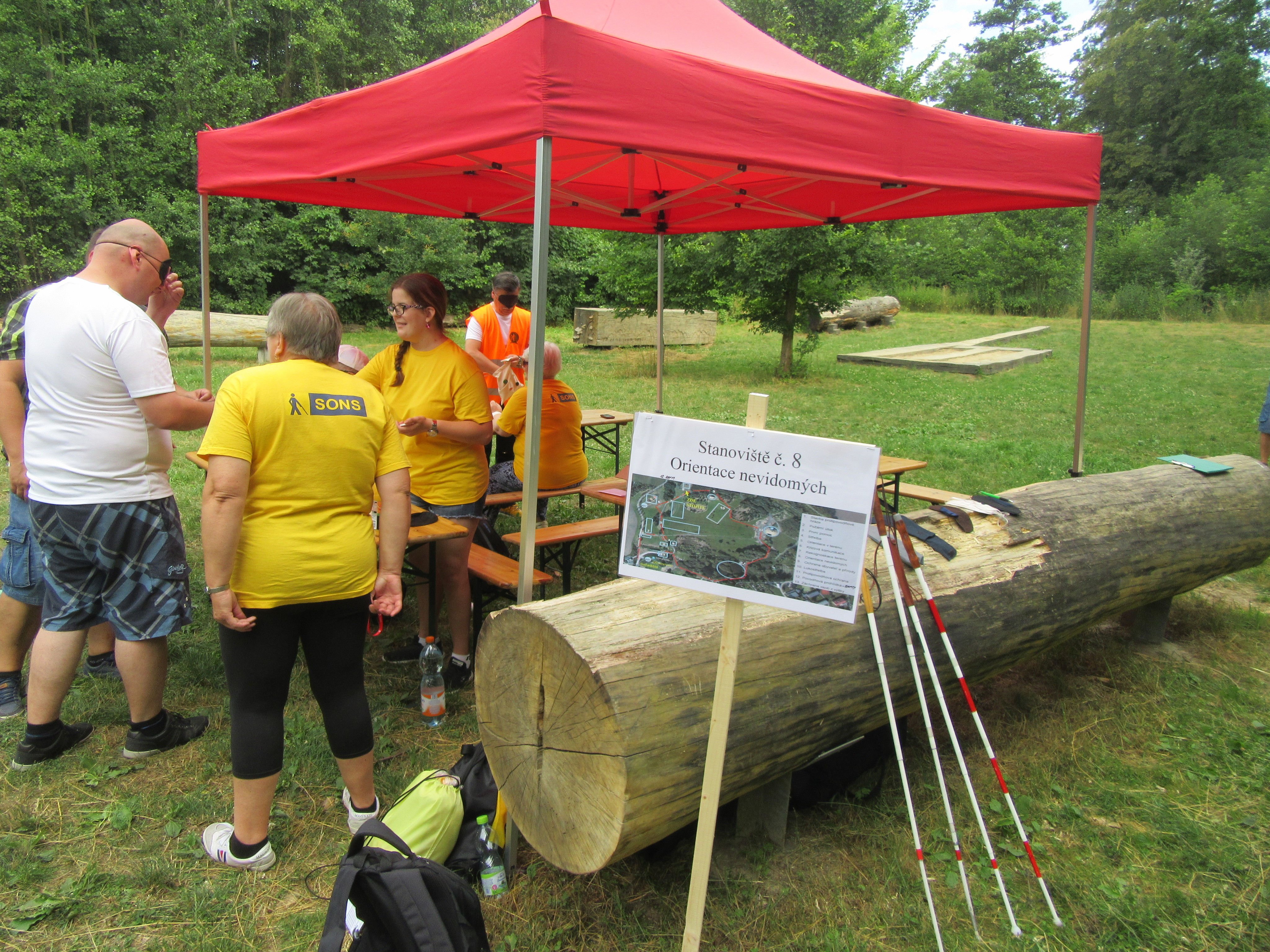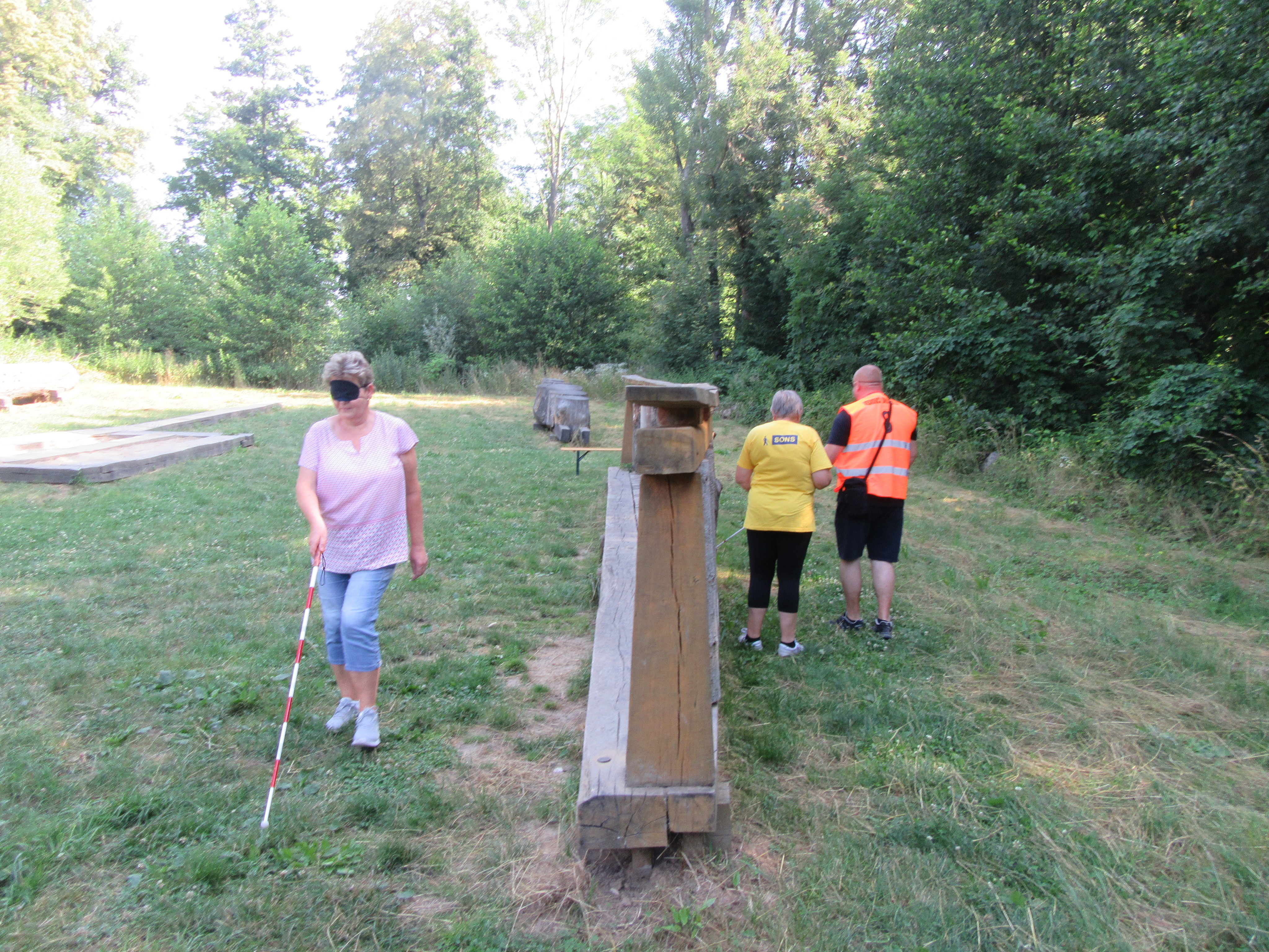 Jak jste si nejspíš všimli, i Oblastní odbočka SONS Olomouc měla na cvičení své stanoviště a to s názvem „Orientace nevidomých“. Soutěžící na něm s klapkami na očích procházeli vytyčenou trasu s bílou holí v ruce, hádali, k čemu si přivoněli v tzv. „čichačkách“, podle zvuku poznávali, co je skryto v malých krabičkách, a podle hmatu hledali dvojice čtverečků se stejným knoflíkem.