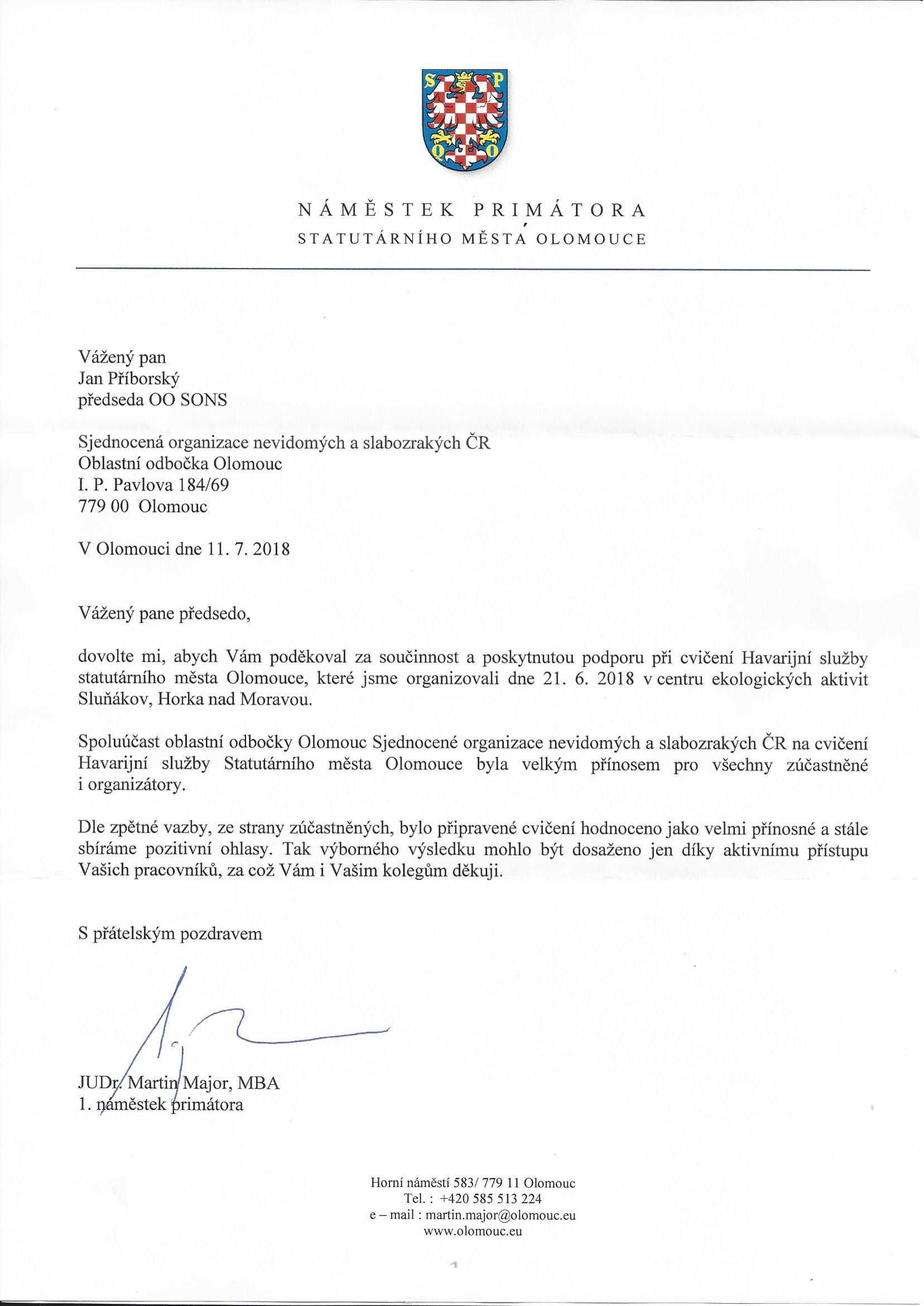 Celá akce se opravdu vydařila a my jsme rádi, že nyní můžeme zveřejnit poděkování prvního náměstka primátora JUDr. Martina Majora, MBA, které nás velmi potěšilo.
