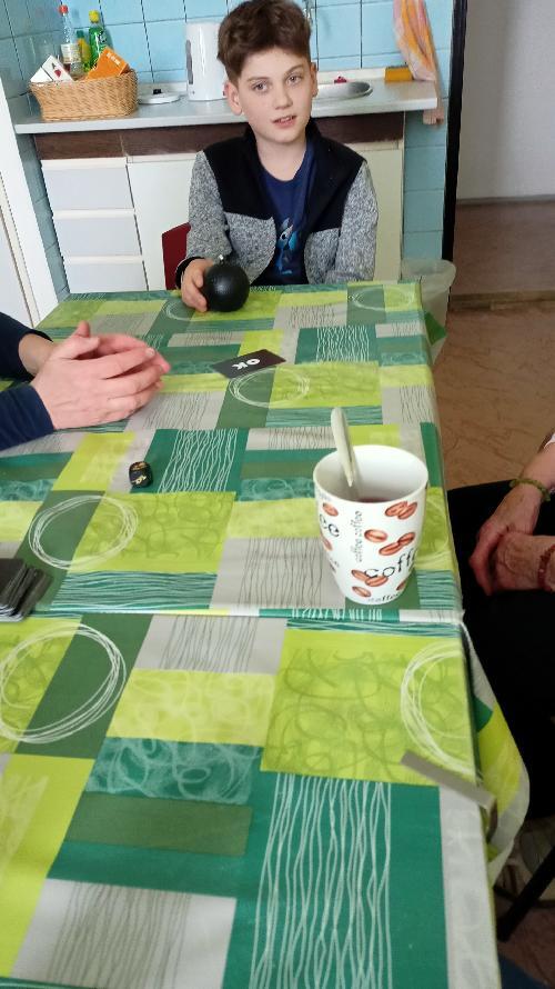 V polovině dubna jsme se sešli v klubovně poslechnout si novinky ze sociálně-právní poradny. Po skončení pravidelného sezení jsme se věnovali novým společenským hrám, které donesla k vyzkoušení naše členka. Jednalo se především o hry pro trénink vyjadřování, slovní zásoby a paměti. Velké oblibě se těšila hra s maketou tikající bomby, která kolovala mezi členy a každý musel co nejrychleji odpovědět na danou otázku a poslat bombu dál. Komu bomba v ruce vybuchla, prohrál. Dále jsme hádali zeměpisná místa, města či památky. Každý člen měl na čele kartičku s nějakým známým místem na světě a pomocí otázek na ostatní členy se musel dobrat odpovědi, o jaké místo se jedná. Vyzkoušeli jsme i hru s kostkami, na kterých byly zobrazeny nejrůznější symboly. Na vržený symbol musel člověk vymyslet větu. Každý další člověk potom musel vymyslet navazující větu k symbolu který hodil. Užili jsme si při tom hodně zábavy.