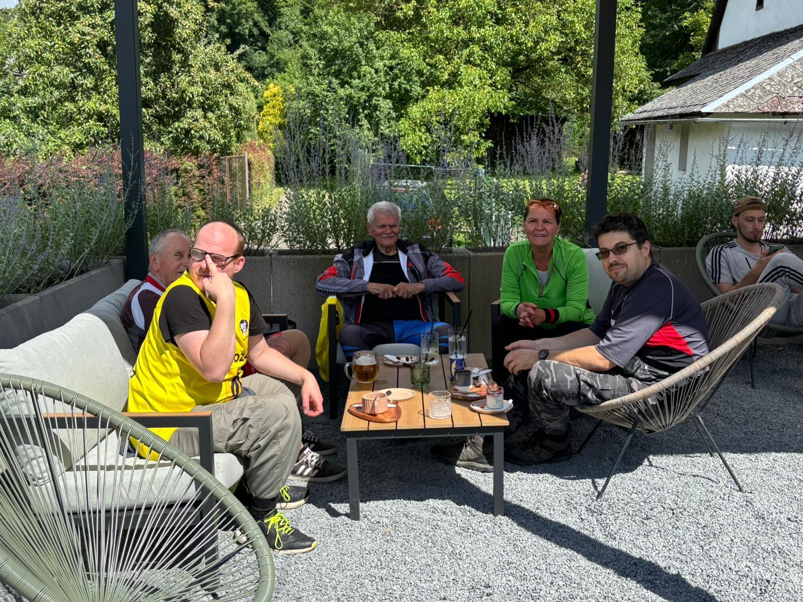 Na druhé cyklovyjížďce jsme zase v maršíkovské palírně vnímali sladkou vůni čerstvě zpracovaného ovoce a někteří z nás si koupili kvalitní pálenku jako suvenýr. Poté byla na horním konci Maršíkova domluvena komentovaná prohlídka dřevěného kostela sv. Michaela Archanděla místním správcem panem Moravcem. Velmi poutavě hovořil o historii i současných poutích v Maršíkově a také o průzkumných vrtech v lázních Velké Losiny v 70. letech. Odměnou pak bylo posezení v kavárně v luxusním Resortu Sobotín. Po doplnění potřebných kalorií jsme ještě měli dostatek sil na překonání sedla Traťovka mezi Rudolticemi a Hraběšicemi. Nakonec jsme si vychutnali příjemný sjezd z Traťovky až k letišti bez šlapání.