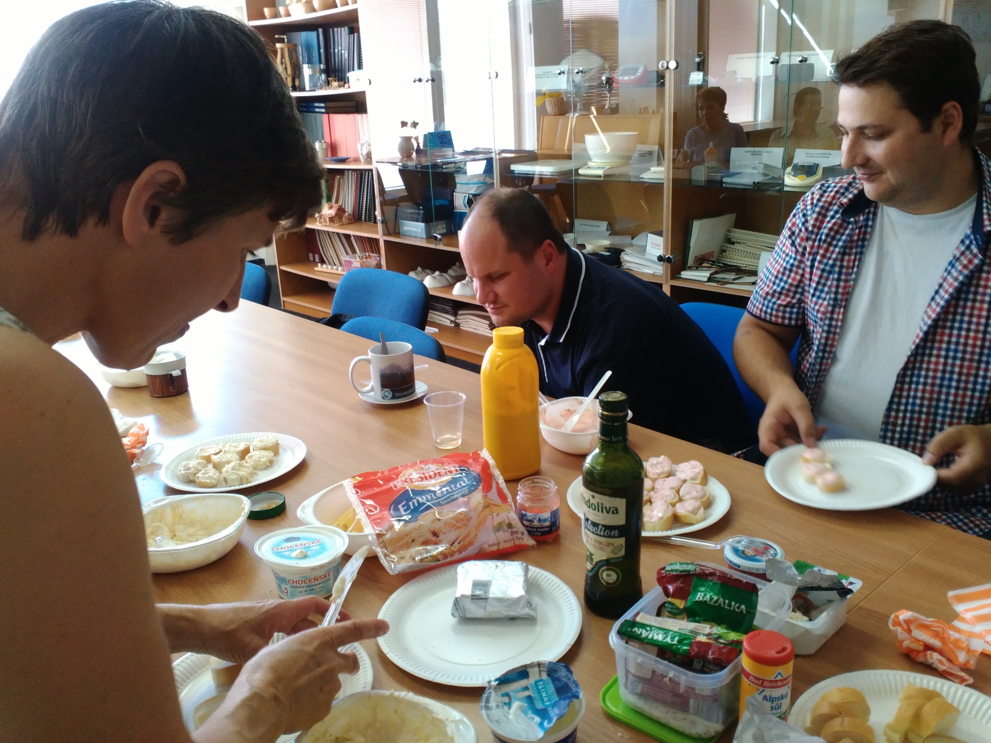 Tuto soutěž zahájil pan Kavan ochutnávkou skvělého vína od zrakově postiženého vinaře Mojmíra filípka z Rakvic. Poté již začala příprava pomazánek z různých ingrediencí, které pan Kavan přivezl a nachystal.