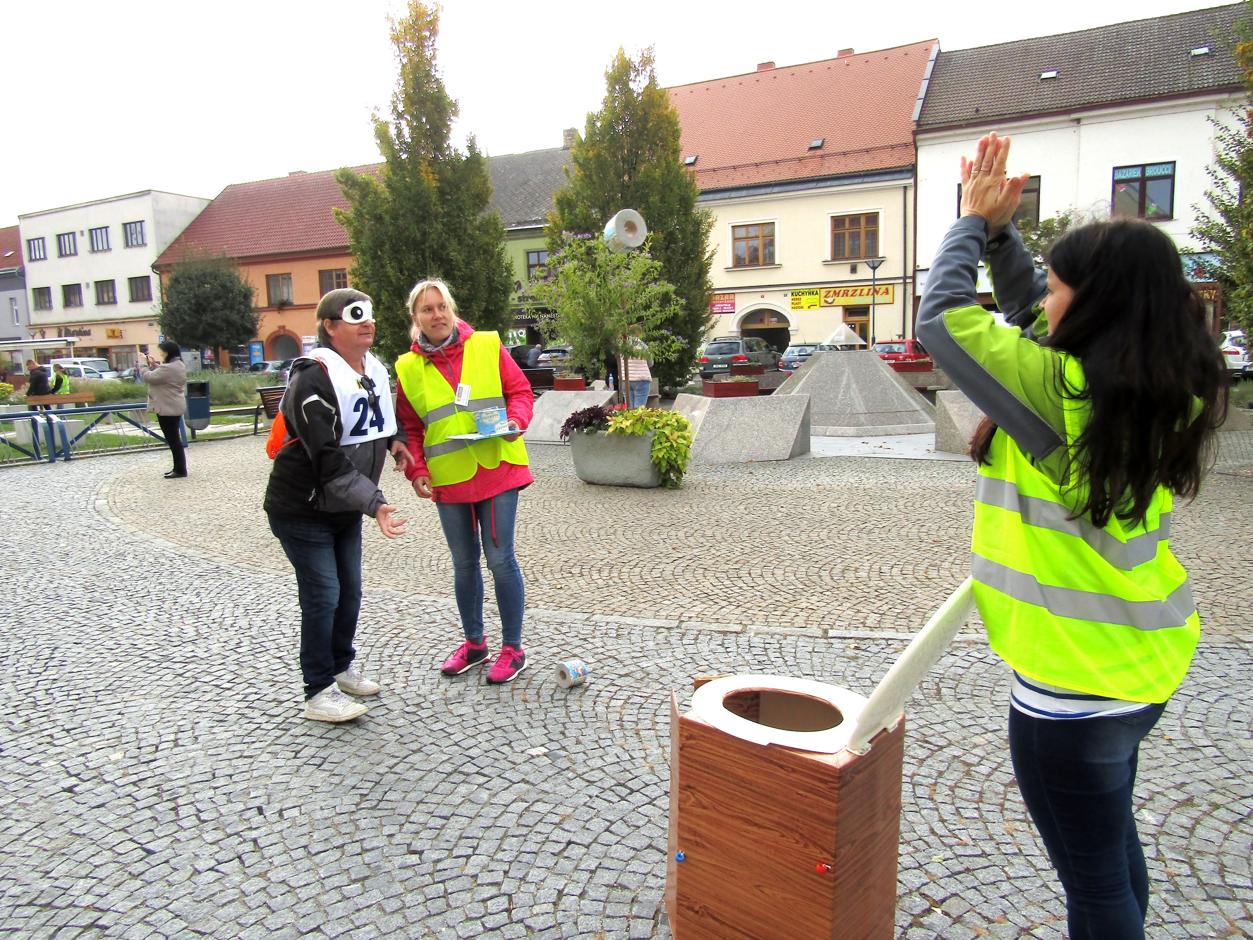 Výchozím bodem byl zasedací sál na radnici, tedy pracoviště Městského úřadu, tudíž nesměla chybět návštěva kanceláře starosty města Kyjova. Je jasné že po tmě. Soutěžící přivítali sekretářky, předali soutěžícím poukaz na odběr občerstvení od pana starosty, ale ještě museli po hlase poznat svého starostu, jelikož sluch - to je jeden z velmi důležitých smyslů pro orientaci nevidomého. Další návštěva veřejné instituce, kde si museli soutěžící vyřídit ověření podpisu byla na Informačním centru. Po trase kterou procházeli jsme se snažili navodit takové situace, se kterými se ve svém běžném životě mohou setkat. Také měli za úkol využít své dovednosti v oblasti smyslové - hmatem rozeznat poživatiny, odhady váhové, sluchem poznat hudební nástroje, podle zvuku hod na cíl, chůze v přímém směru a také pocitové prožitky na Bosonohé stezce.