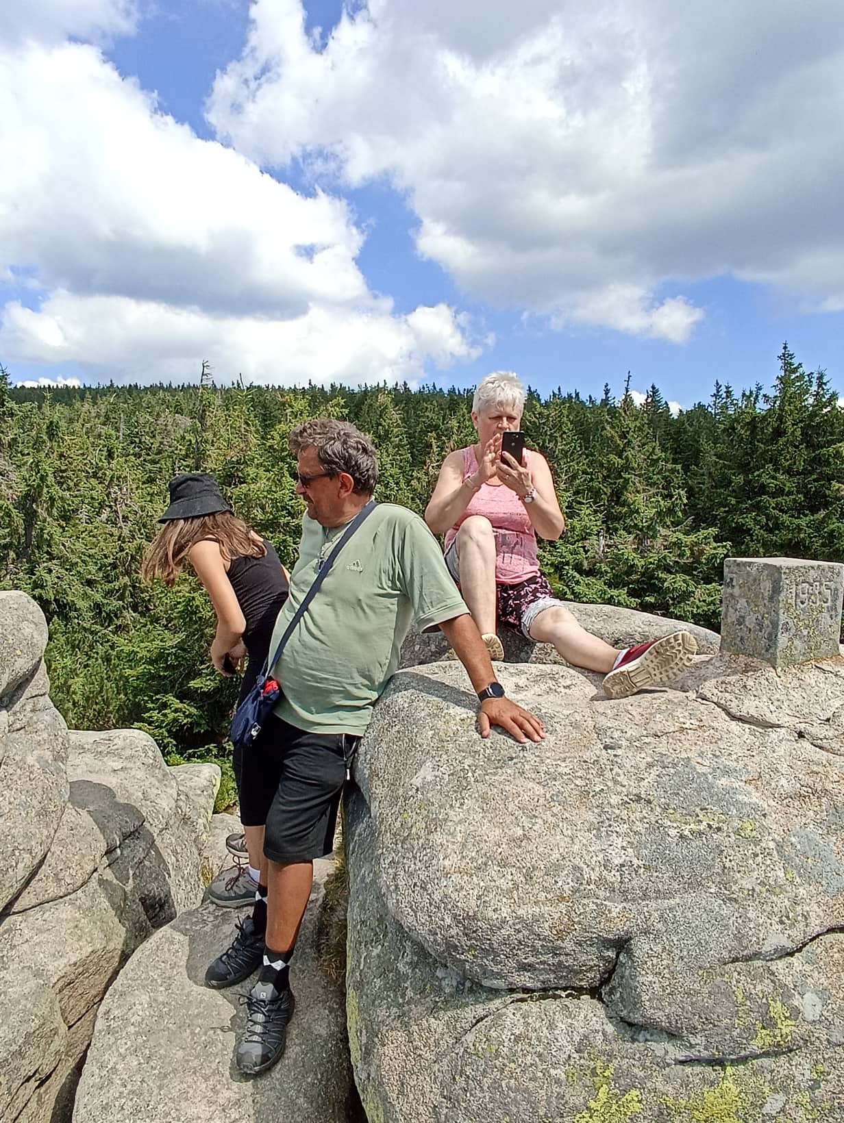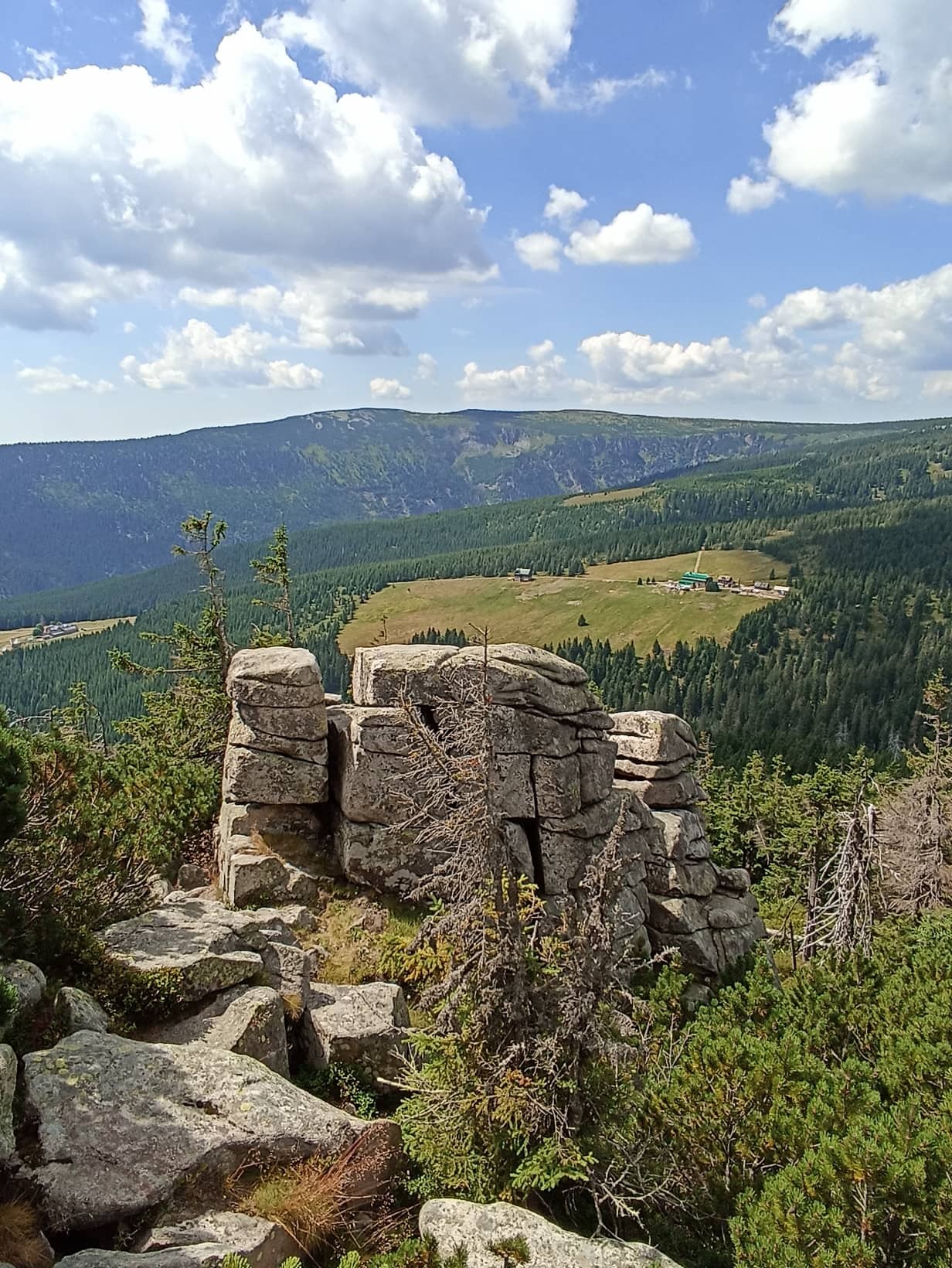 My jsme tentokráte šli ze Špindlerovy boudy na Petrovu boudu. Dále jsme pokračovali k Ptačímu kameni na vyhlídku. Výhled byl úžasný.
